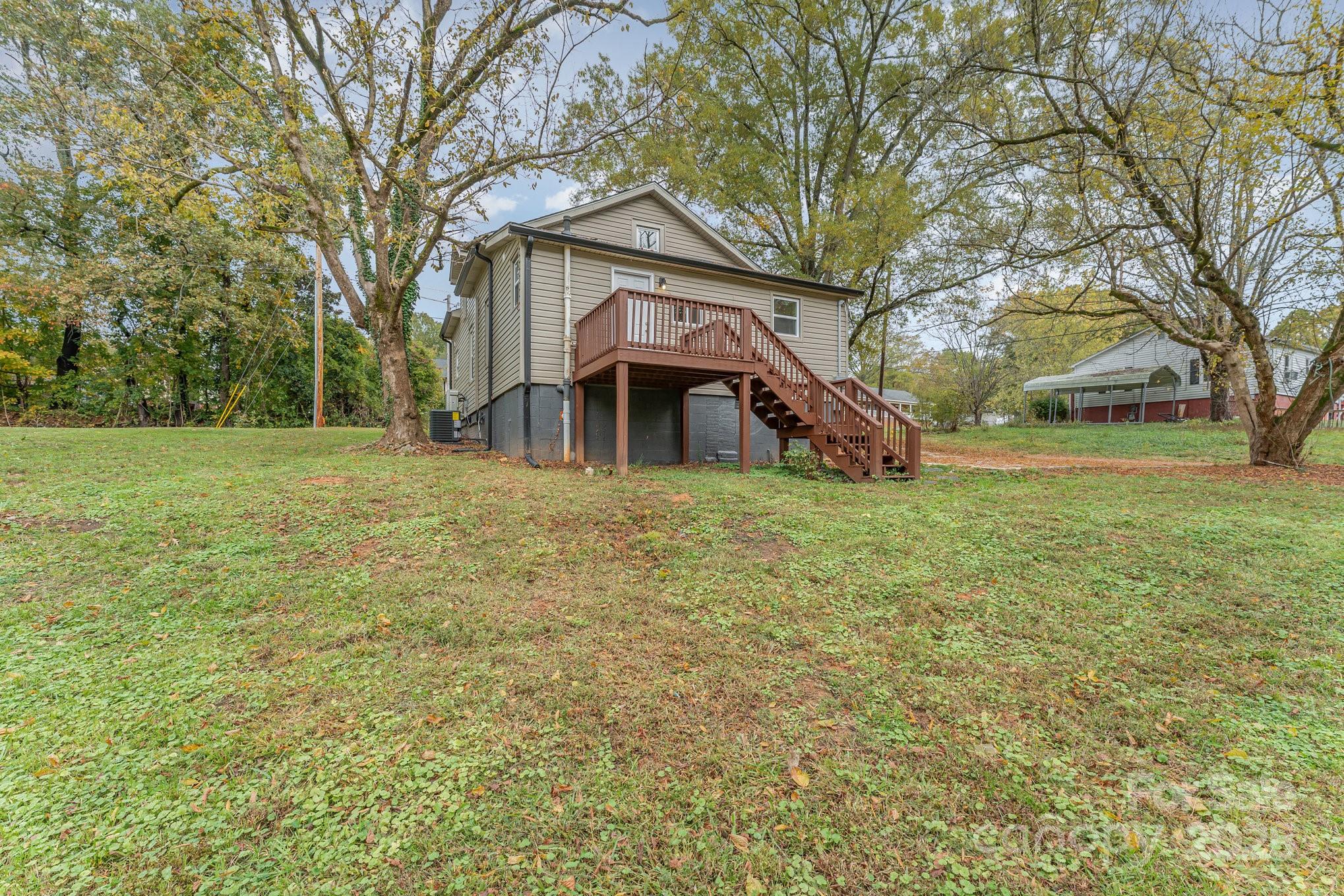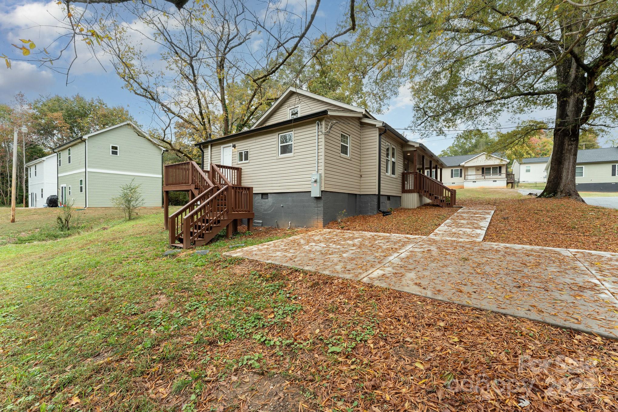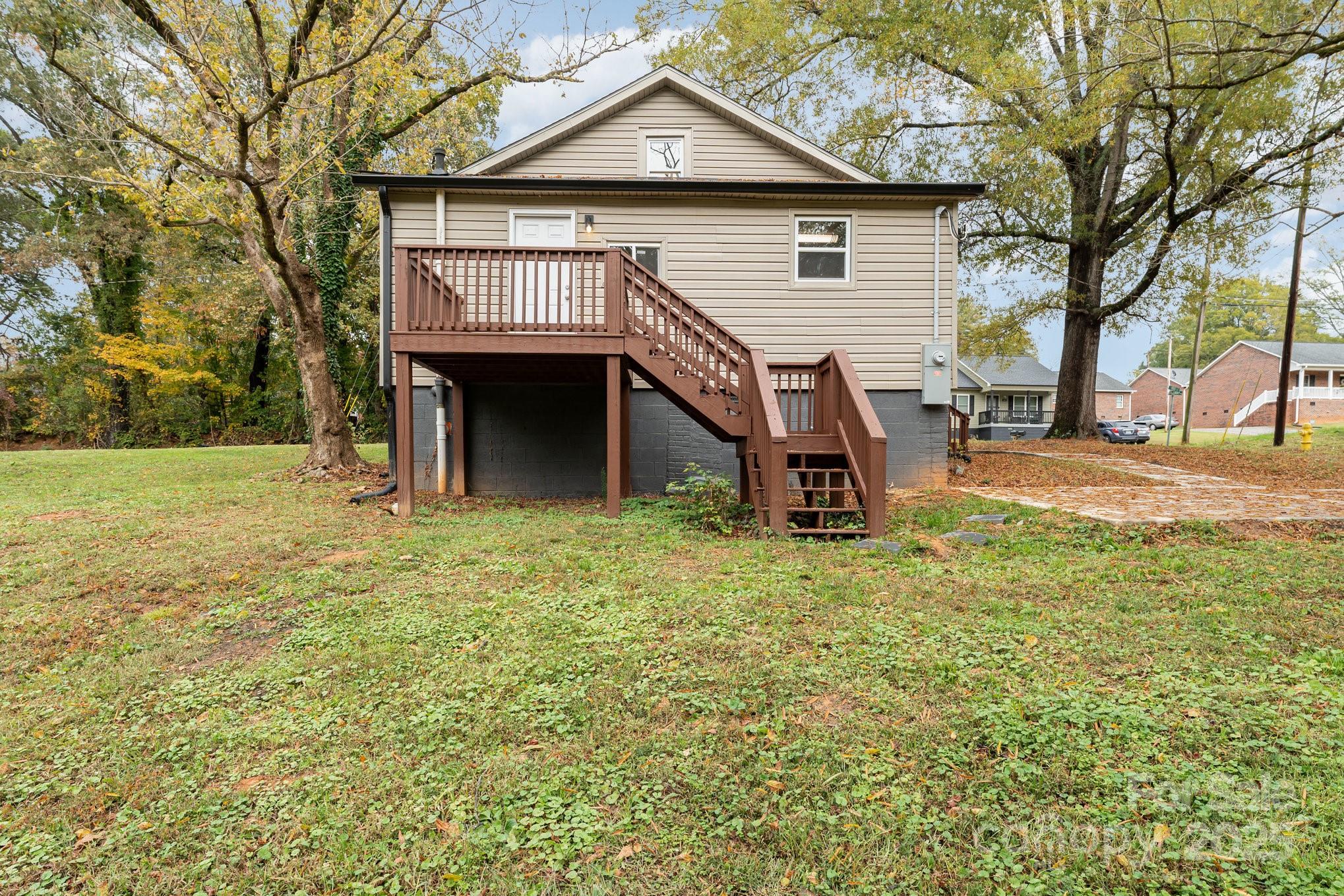 Welcome to fast growing Statesville! Enjoy affordable living all so close to everything that downtown and surrounding Statesville has to offer. On paper, you will appreciate NO HOA and a perfect investment or rental property! Come one, come all- whether this is your first home or last home, we got what you want! From the street, this home has been beautifully renovated to the 21st century, while keeping the old feel charm. Appreciate the 2024 year roof and HVAC system, the corner lot, the beautiful wrap around porch, walk out back deck, the concrete parking pad, the landscaping and mature trees, and the crawlspace with new vapor barrier. This inside features spaciousness along with lots of desirable natural lighting. Enjoy new fixtures, LVP and carpeted floors throughout. The kitchen features granite countertops, white cabinetry, and stainless steel appliances. Lastly, two bedrooms and two bathrooms along with the laundry downstairs, and an additional two bedrooms upstairs - make for the perfect layout for the perfect new buyer! Please note, upstairs sq ft is not included in the home sq ft due to ceiling height just below required limits. Upstairs is heated and cooled via split mini pack.