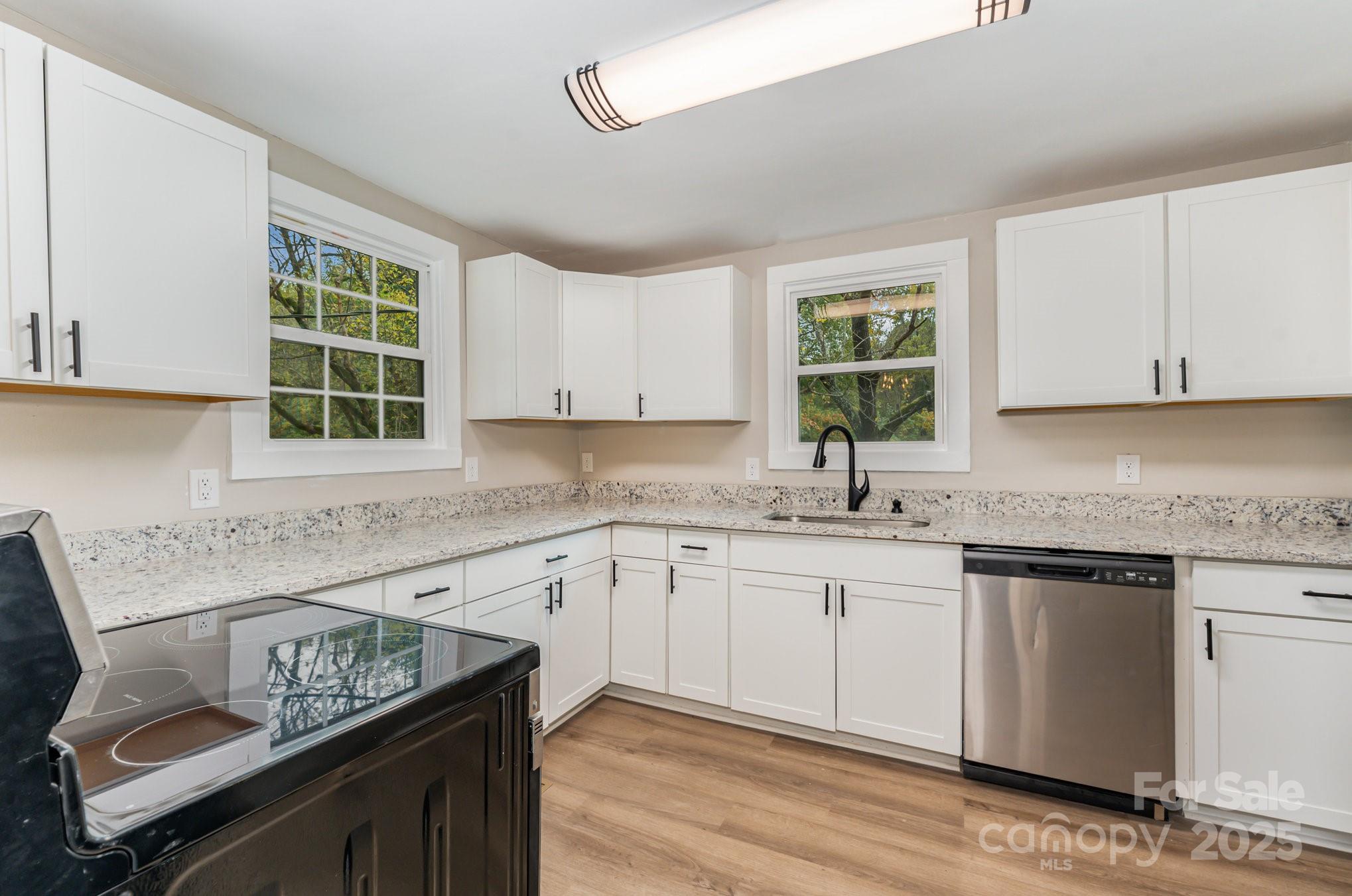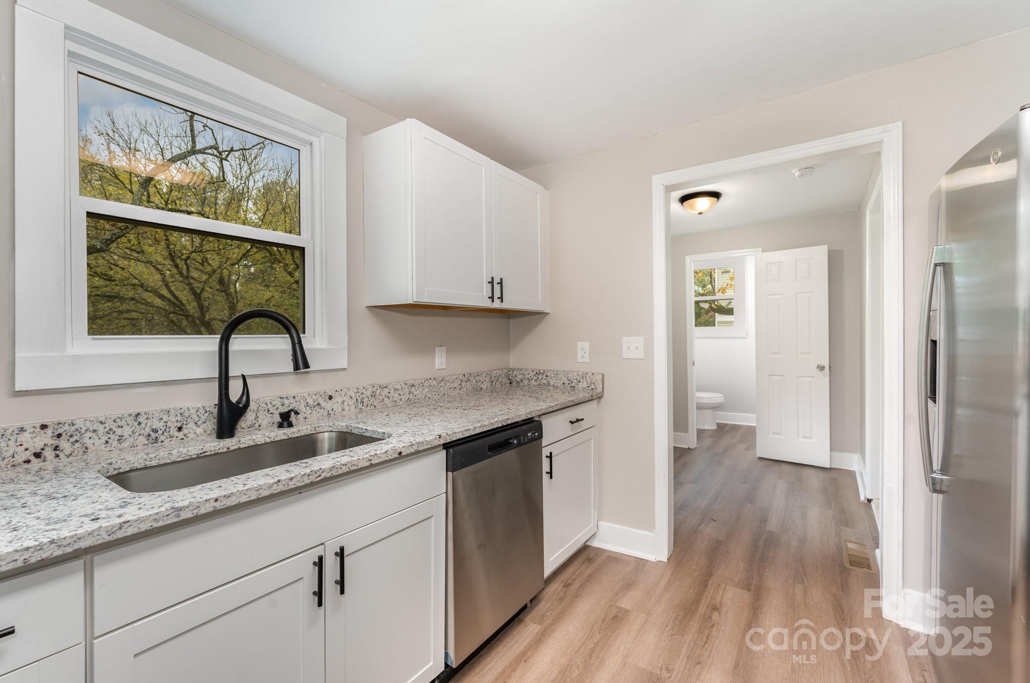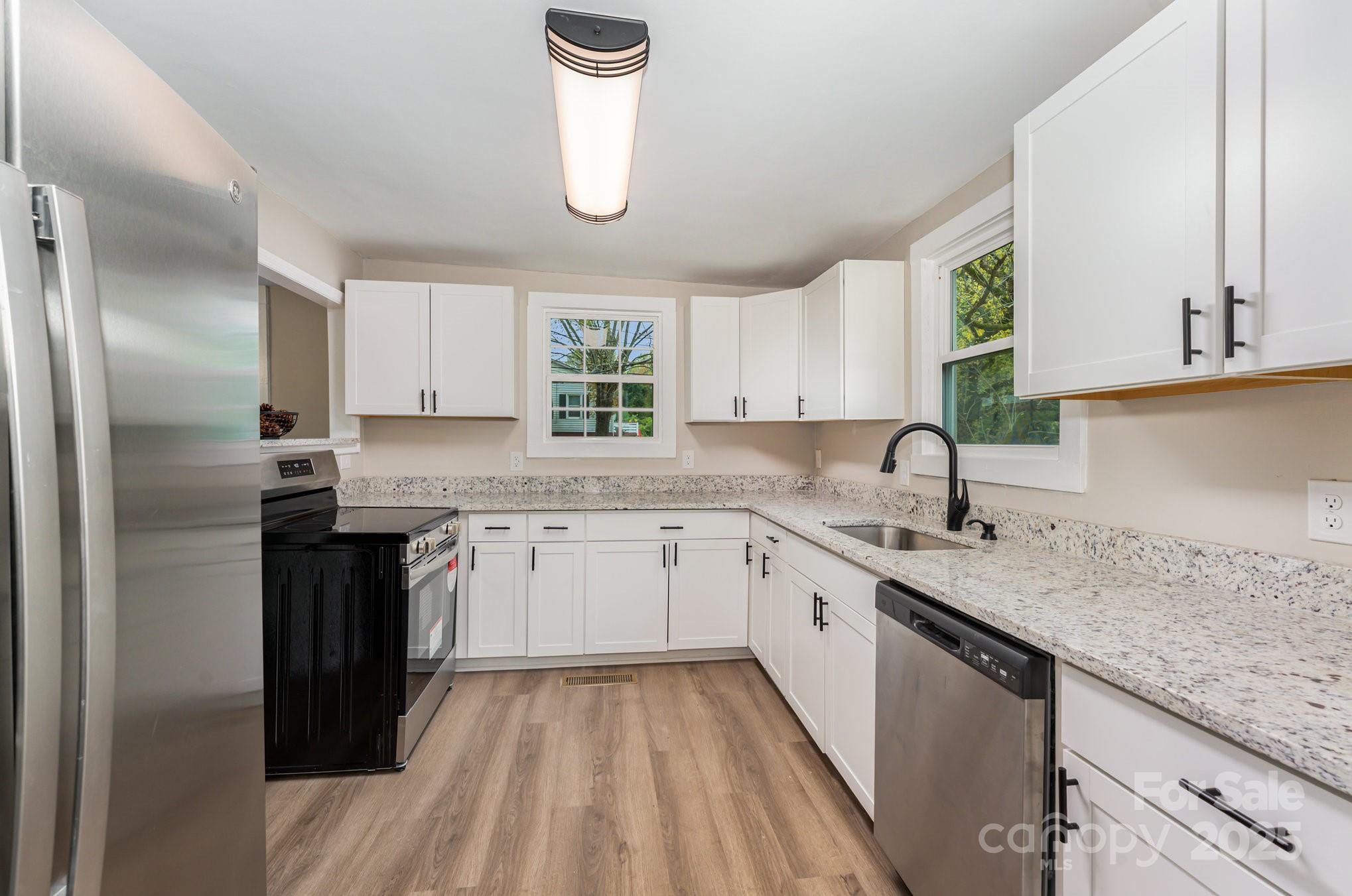 Welcome to fast growing Statesville! Enjoy affordable living all so close to everything that downtown and surrounding Statesville has to offer. On paper, you will appreciate NO HOA and a perfect investment or rental property! Come one, come all- whether this is your first home or last home, we got what you want! From the street, this home has been beautifully renovated to the 21st century, while keeping the old feel charm. Appreciate the 2024 year roof and HVAC system, the corner lot, the beautiful wrap around porch, walk out back deck, the concrete parking pad, the landscaping and mature trees, and the crawlspace with new vapor barrier. This inside features spaciousness along with lots of desirable natural lighting. Enjoy new fixtures, LVP and carpeted floors throughout. The kitchen features granite countertops, white cabinetry, and stainless steel appliances. Lastly, two bedrooms and two bathrooms along with the laundry downstairs, and an additional two bedrooms upstairs - make for the perfect layout for the perfect new buyer! Please note, upstairs sq ft is not included in the home sq ft due to ceiling height just below required limits. Upstairs is heated and cooled via split mini pack.