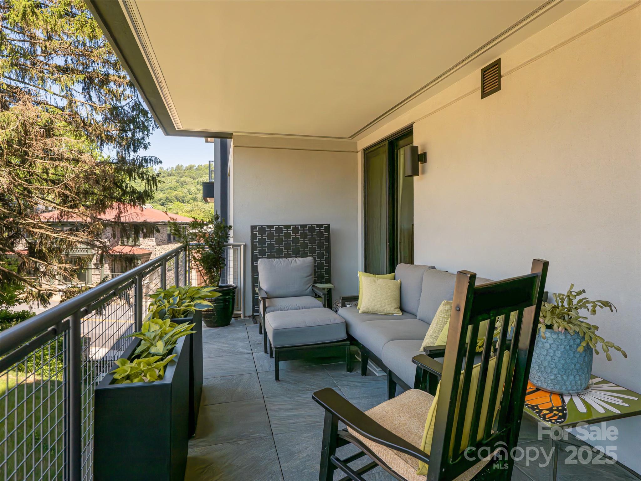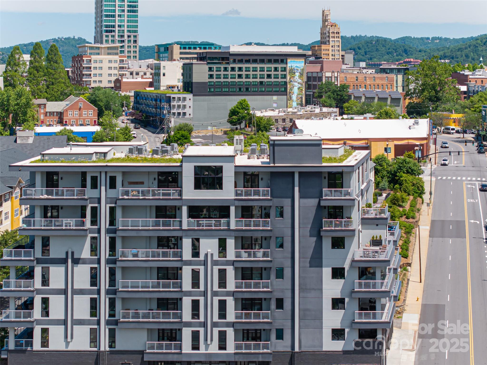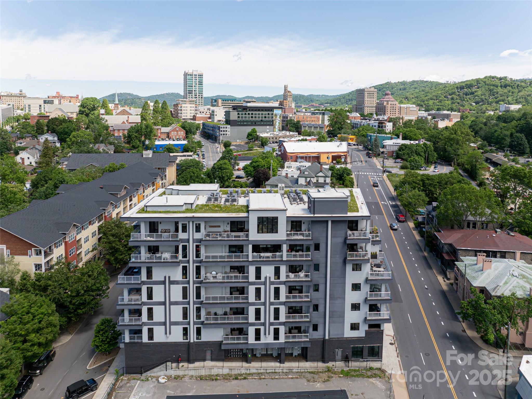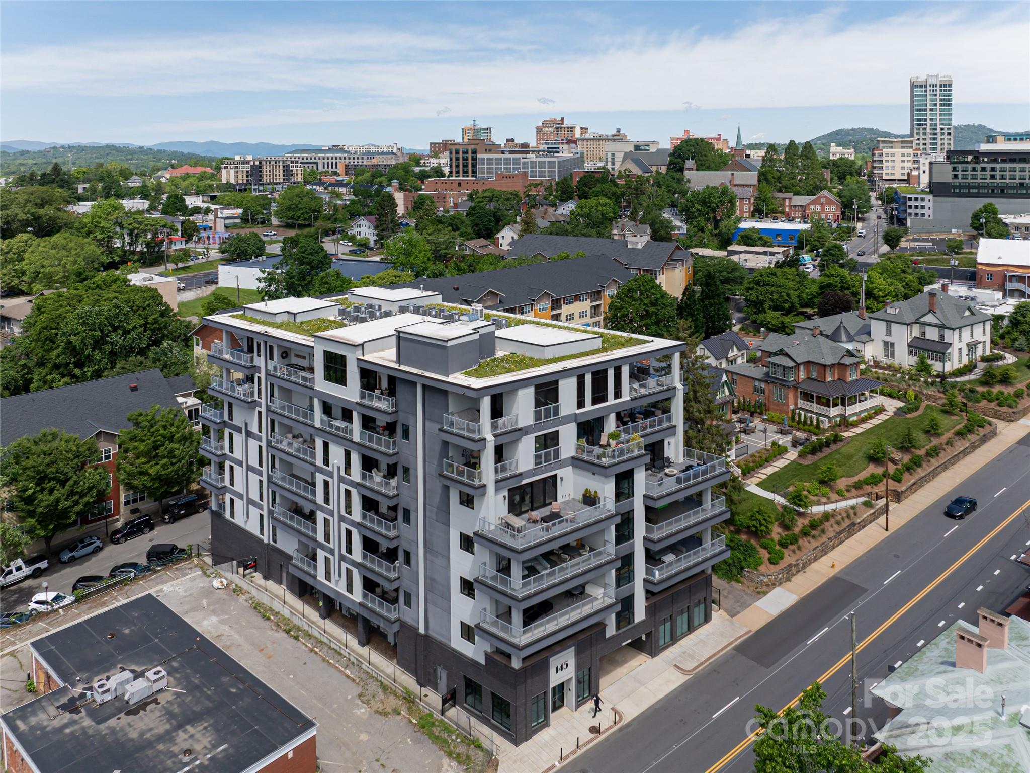 Sought-after South Slope Living, welcome to 145 Biltmore—a premier, modern Art Deco residence in one of Asheville’s most vibrant neighborhoods. Surrounded by acclaimed galleries, music venues, eclectic shops, award-winning dining, and a lively nightlife scene, this distinguished residence blends world-class design with the soul of the city. Unit 303 offers a serene retreat with one expansive bedroom, a spa-inspired full bathroom, and sophisticated finishes throughout. A striking glass door seamlessly connects the open interior to a generous 305 SQFT private terrace—perfect for alfresco dining, entertaining, or simply soaking in the downtown energy. This unit is being sold fully furnished with just a few exceptions, making it move-in ready or ideal for a turn-key investment. While not currently city-permitted, there are no rental restrictions on this unit, offering flexible ownership & income potential. Residents enjoy secure, deeded parking, peace of mind & the best of modern living.