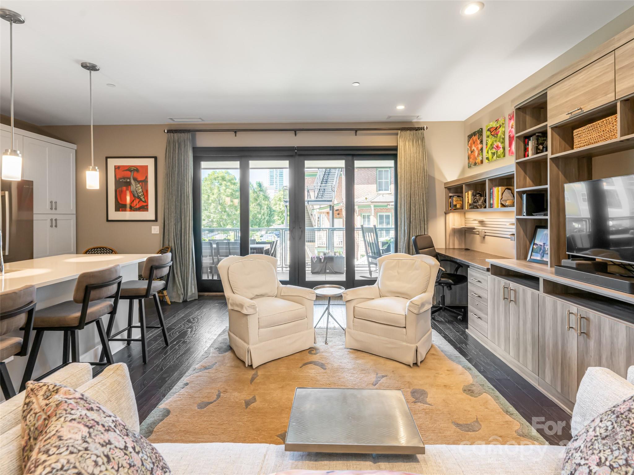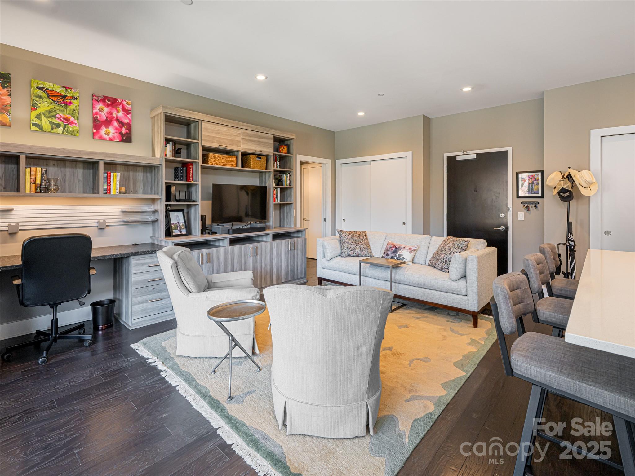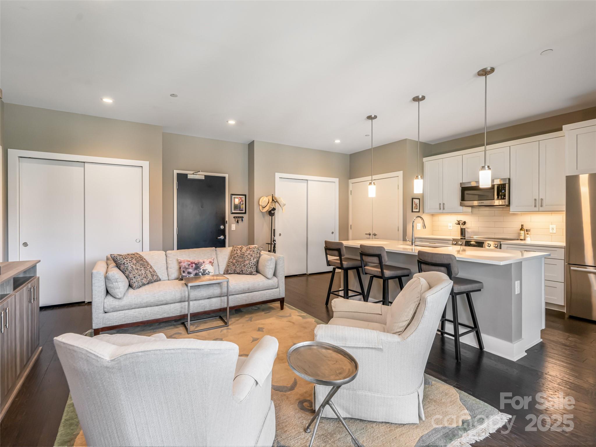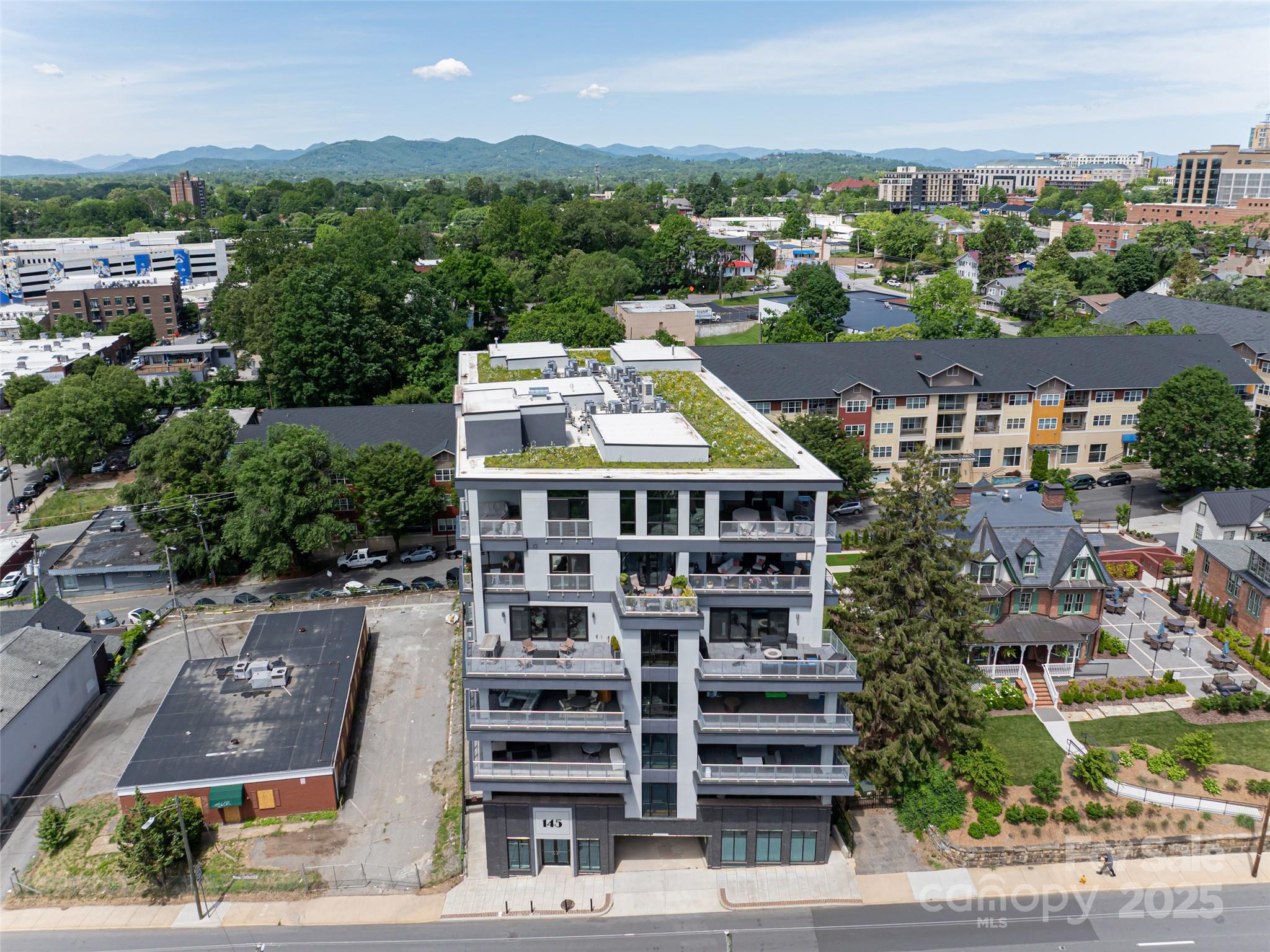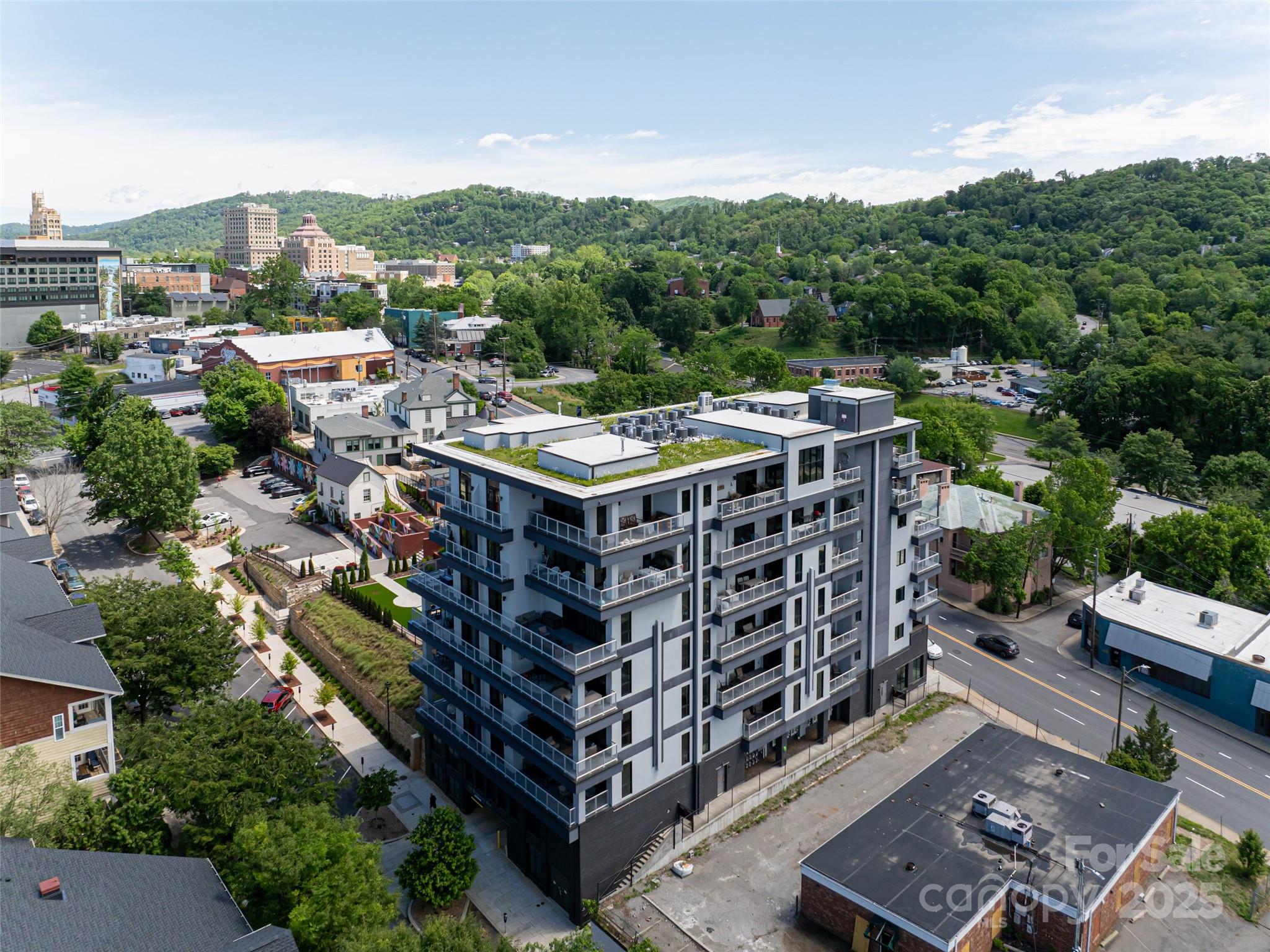 Sought-after South Slope Living, welcome to 145 Biltmore—a premier, modern Art Deco residence in one of Asheville’s most vibrant neighborhoods. Surrounded by acclaimed galleries, music venues, eclectic shops, award-winning dining, and a lively nightlife scene, this distinguished residence blends world-class design with the soul of the city. Unit 303 offers a serene retreat with one expansive bedroom, a spa-inspired full bathroom, and sophisticated finishes throughout. A striking glass door seamlessly connects the open interior to a generous 305 SQFT private terrace—perfect for alfresco dining, entertaining, or simply soaking in the downtown energy. This unit is being sold fully furnished with just a few exceptions, making it move-in ready or ideal for a turn-key investment. While not currently city-permitted, there are no rental restrictions on this unit, offering flexible ownership & income potential. Residents enjoy secure, deeded parking, peace of mind & the best of modern living.