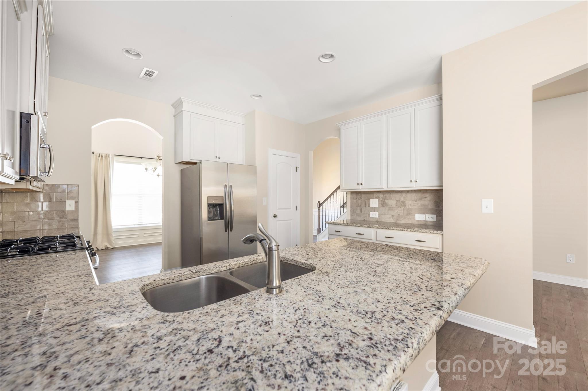 A floor plan for any buyer! The primary bedroom on the main level allows a new owner to live solely on the main level. The upstairs has two bedrooms, a full bath and a loft perfect for spill over space or separate spaces for teenagers, a home gym, etc. Lovely hardwoods on the main level and staircase. You will want to spend most of your time in the sunroom overlooking a professionally landscaped backyard. The backyard is private and fully fenced. The inside has nice archways leading to all livning areas. The kitchen has a new refrigerator and stainless appliances. 42" cabinets and granite countertops. Fresh neutral paint (August 2025) on the main level. The large primary bedroom has a tray ceiling and an ensuite bathroom with oversized tub and glass shower. The upstairs loft has endless possibilities.