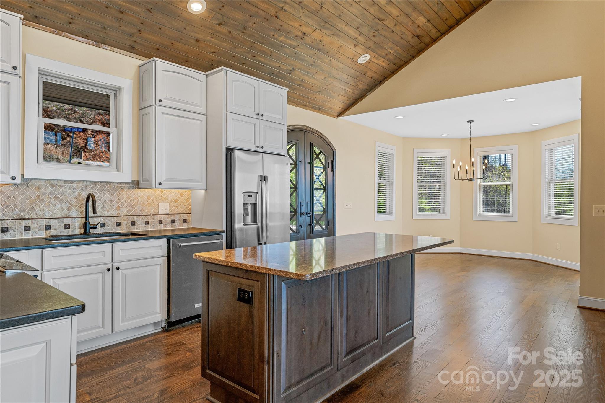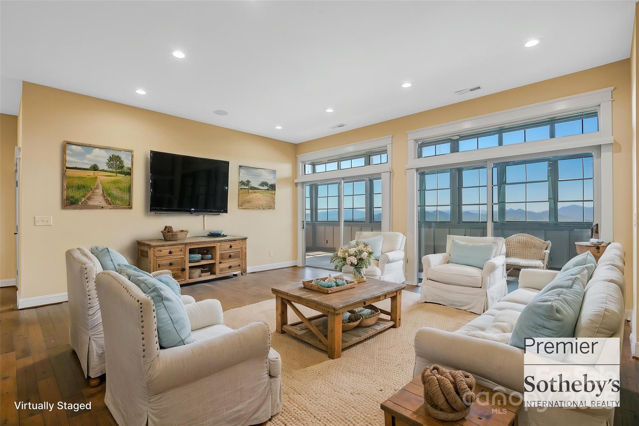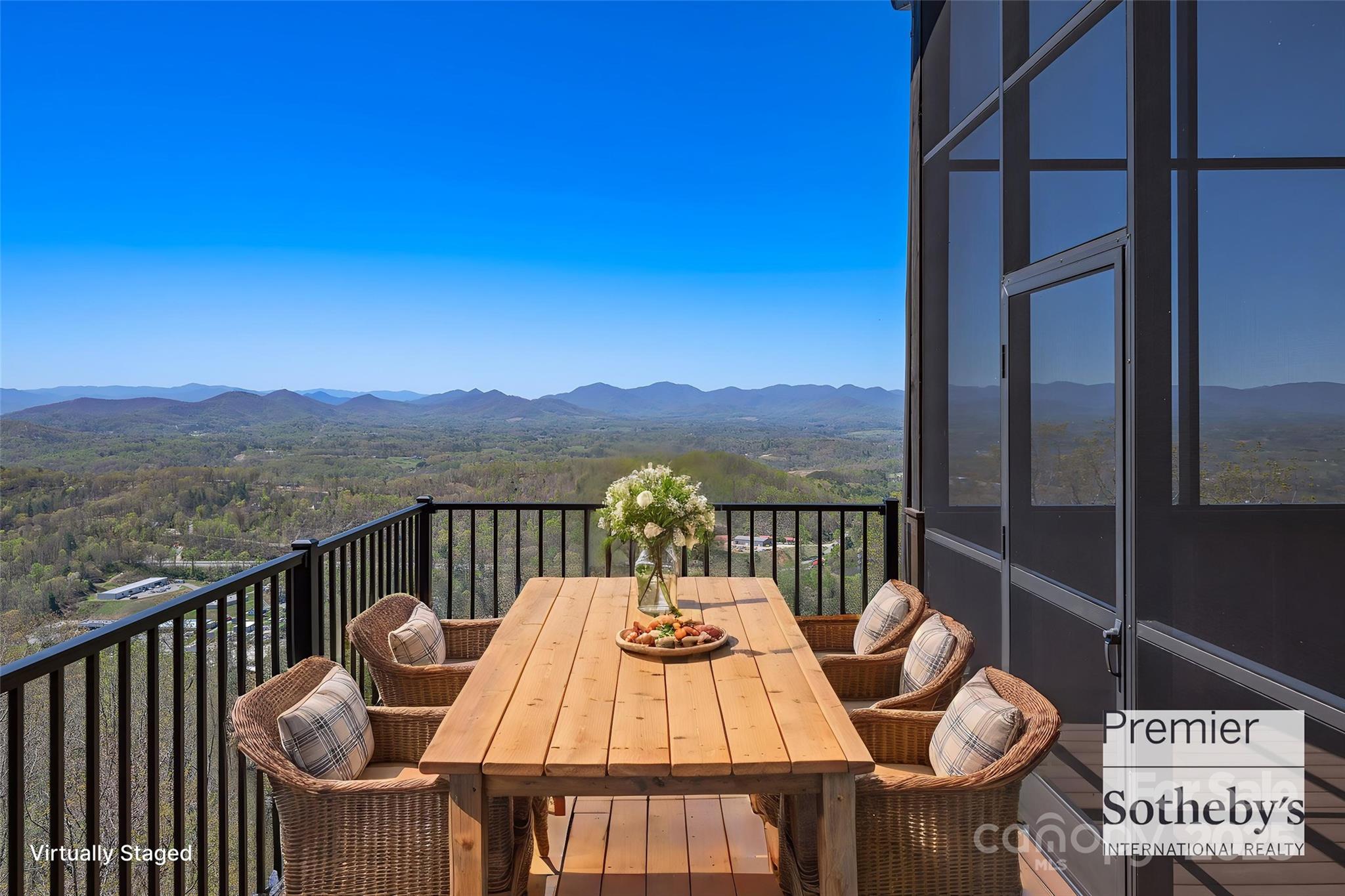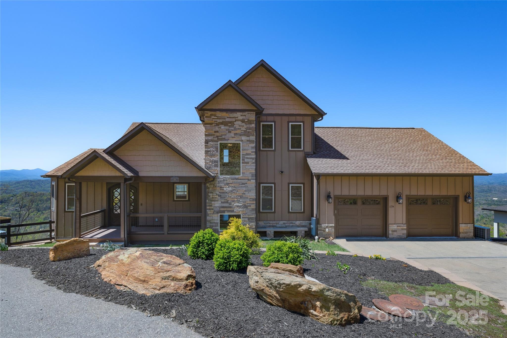 This three-story Mountain Craftsman home offers panoramic mountain views from nearly every room. The open-concept main level features a living area with gas fireplace, dining space and kitchen with natural materials, soaring ceilings and iron stair railings. The primary bedroom on the main level frames morning vistas through triple windows. A screened porch and adjacent grilling deck enhance outdoor living. The lower level includes a spacious second living area, wet bar with island, guest suite, half bath and flex room. The three-season porch boasts Eze Breeze windows for year-round enjoyment. Upstairs, a loft, bedroom and Jack and Jill bath offer flexible guest accommodations and access to attic storage. Western exposure provides stunning sunset views from every level.