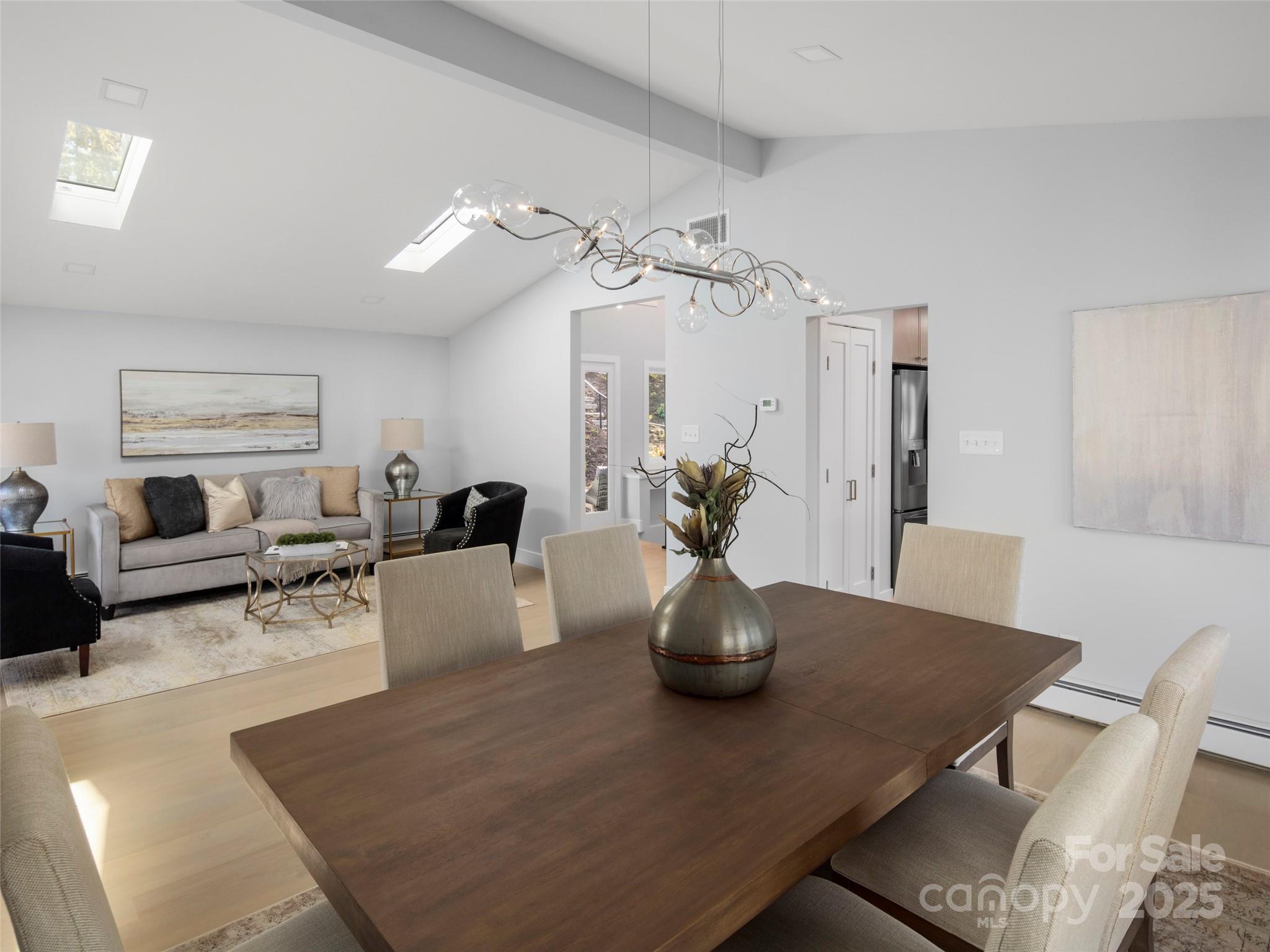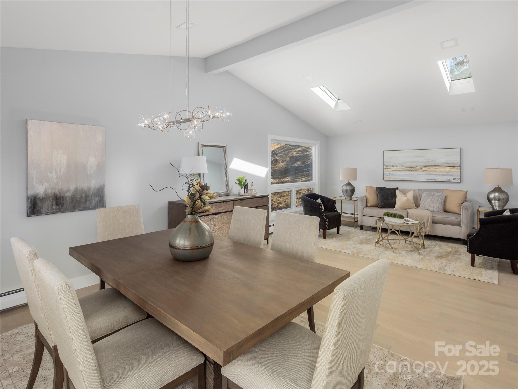 Modern luxury awaits in this meticulously renovated home nestled in peaceful Kimberly Woods. Originally built in the 1960s, this North Asheville gem has been completely reimagined to offer the sophistication and comfort of today’s finest homes—at a value you won’t find anywhere else in the area. Behind a sleek five-panel mid-century door, a sun-washed foyer with soaring ceilings and skylights hint at the contemporary style awaiting further inside. To your right, a formal sitting and dining room offers an elegant setting for gatherings. The sleek kitchen is a showstopper, featuring brand-new cabinetry, Corian countertops, stainless steel appliances, and a charming breakfast nook that’s perfect for morning coffee or casual meals. Rounding out the main level, a comfortable living room centers around an original brick, wood-burning fireplace, creating the perfect place to unwind with a good book. Retreat to the terrace level and discover a true sense of privacy and calm. Here, the primary suite impresses with a sophisticated ensuite, joined by two inviting guest rooms and a versatile den ideal for movie nights or creative pursuits. Enjoy the outdoors with a versatile outdoor living space, featuring dual-level decks with mountain views, a stone patio perfect for a fire pit, and a gently contoured yard enveloped by mature trees. Just minutes from downtown Asheville, this home skillfully balances quiet neighborhood charm with easy access to renowned restaurants and shopping.