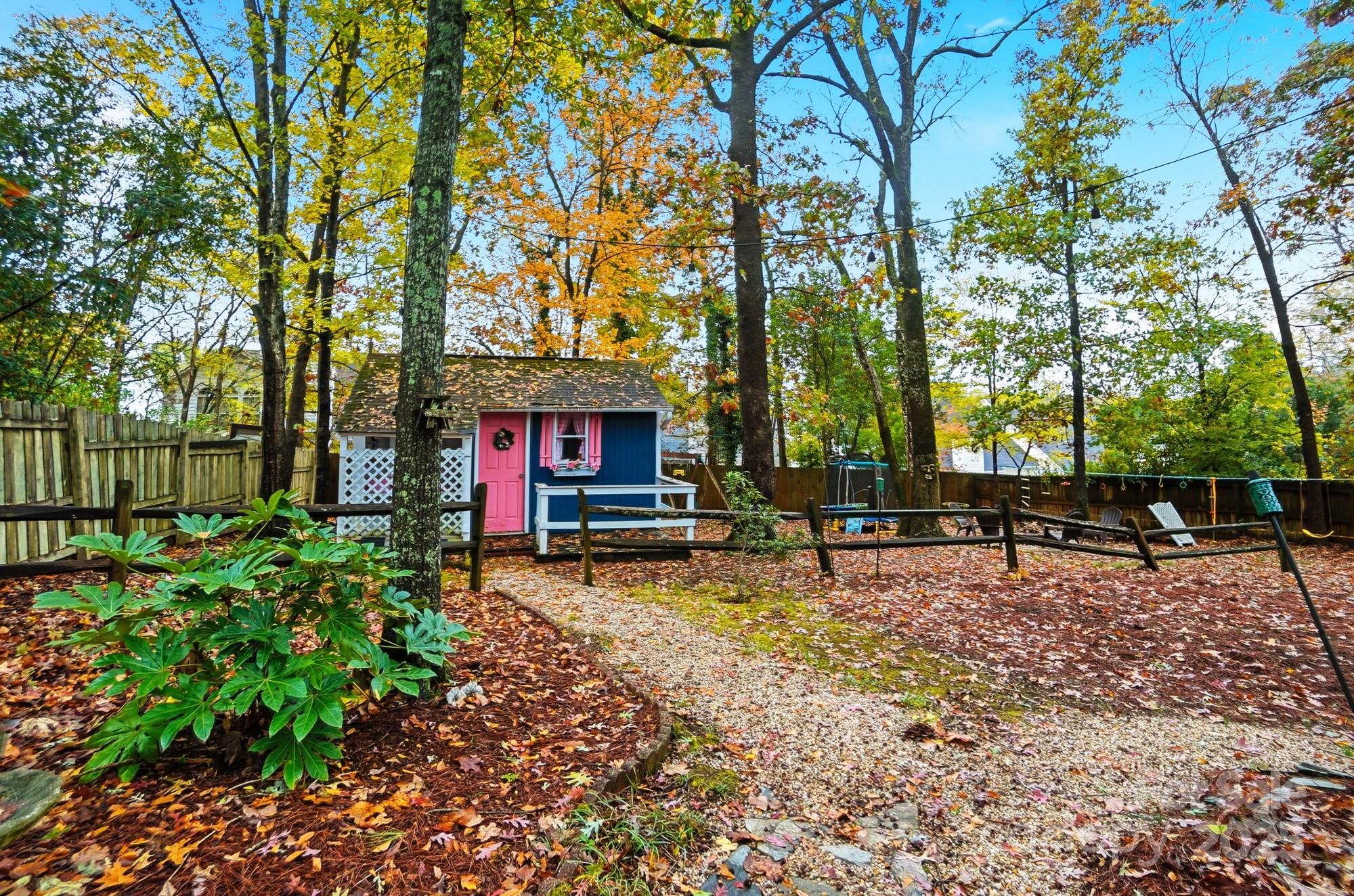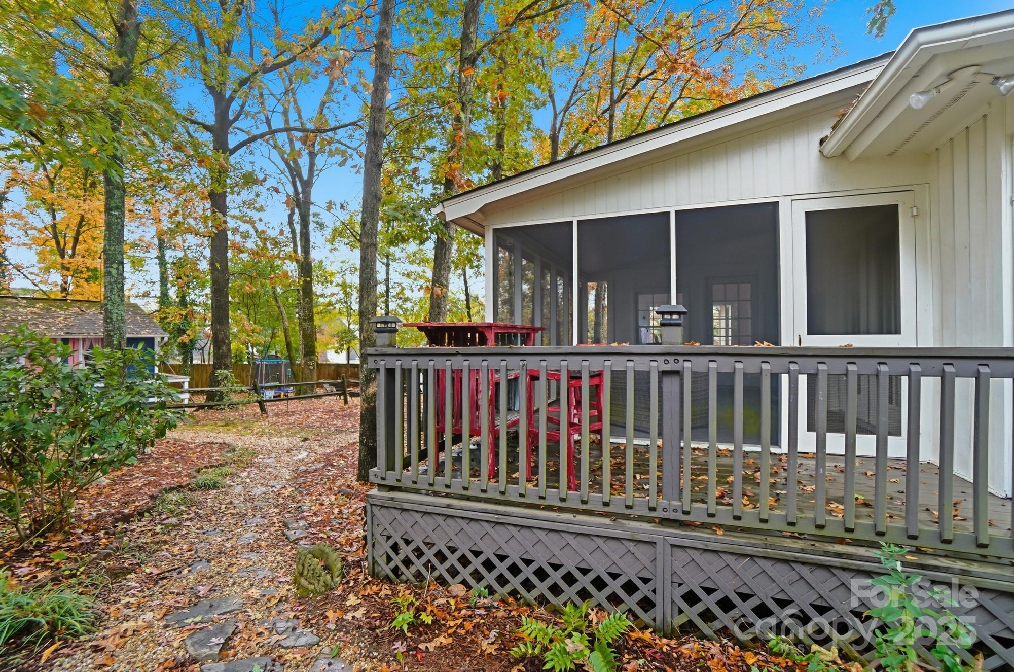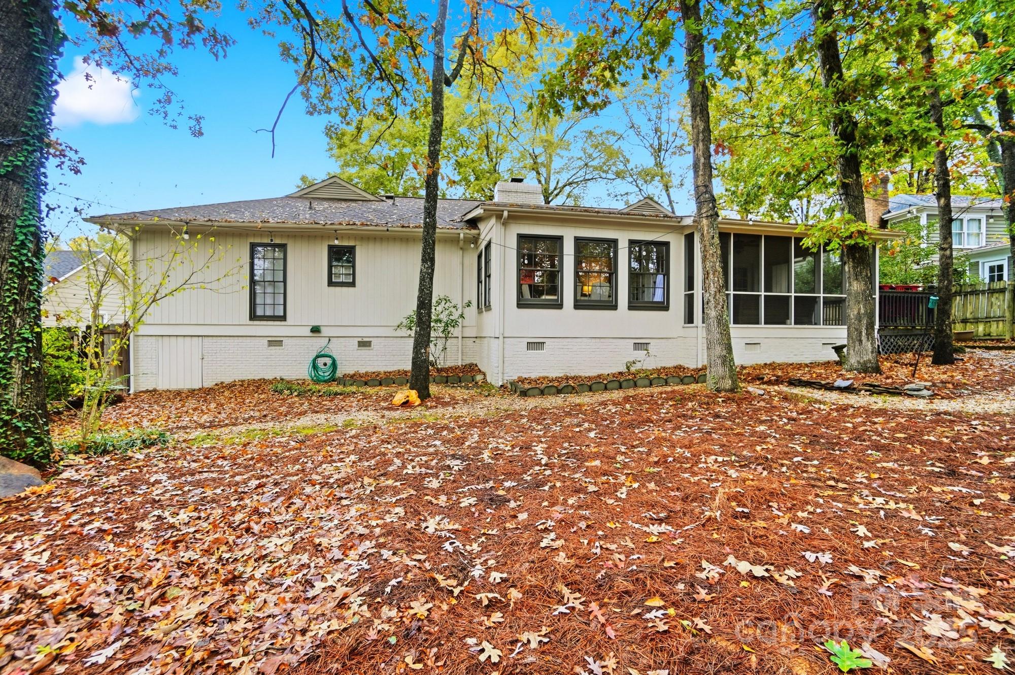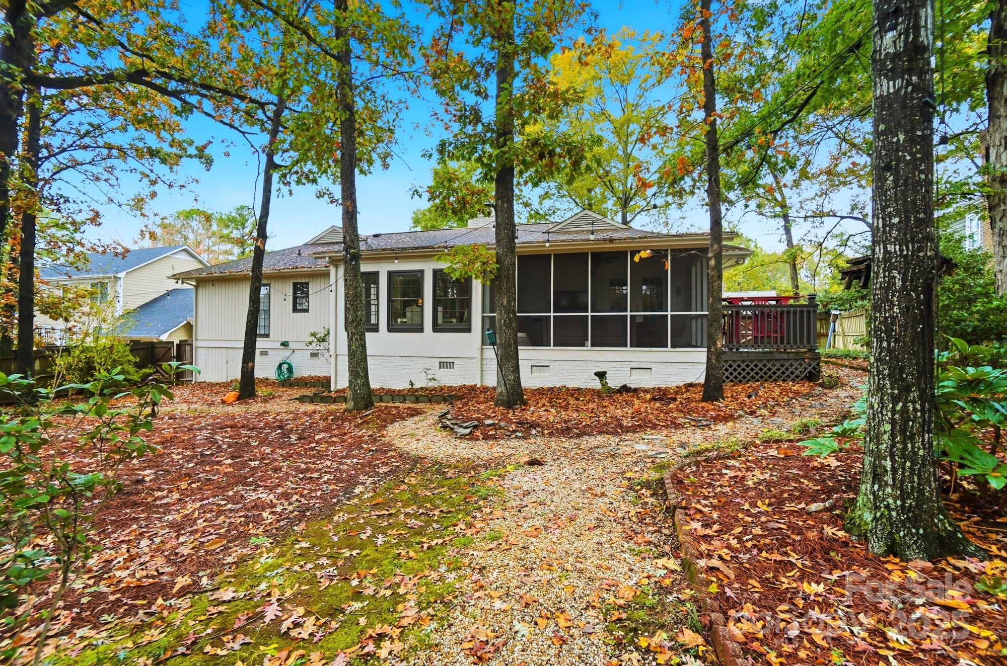 If you have been waiting for a 3 bedroom 2 bath ranch plan in South Charlotte that's in beautiful move-in condition, it's right here! The loveliest front porch and double door front entry are so charming - entry area is great for bench or dropping your keys as you come home. The living area is open and bright - large Living Room with tons of built-ins for your games or record collection and a focal wood-burning fireplace for cozy evenings. The huge Dining Room is great for entertaining, and leads directly into the generous eat-in white Kitchen. Granite countertops and newer (2022) stainless steel appliances - Fridge included! Bay window in the breakfast area provides sunny mornings. A bright Sunroom off of the Living area is perfect for any use, and leads directly to the screened porch and rear deck. This home feels so large and open! A doorway separates the Bedrooms from Living area, and the Bedrooms are large with tons of closet space. Two full baths, each with double vanity for storage! The wood look vinyl plank flooring (2022) is easy to maintain and all colors are neutral and work with any decor. The attached 2-car garage (new garage door 2022) has to much space plus plenty of driveway parking. Outside the lot is over 1/3 acre, and in the fully fenced backyard, you will find the most adorable playhouse, just like a storybook picture, plus a fire pit area, and still plenty of room for all your outdoor activities. This location is fantastic, with easy access to Uptown, Southpark, Ballantyne, Matthews and all highways. Convenient to the new Publix at Arboretum, but all the shopping and restaurants you need are close by. This will feel like home the moment you enter! Come and visit Saturday November 1!