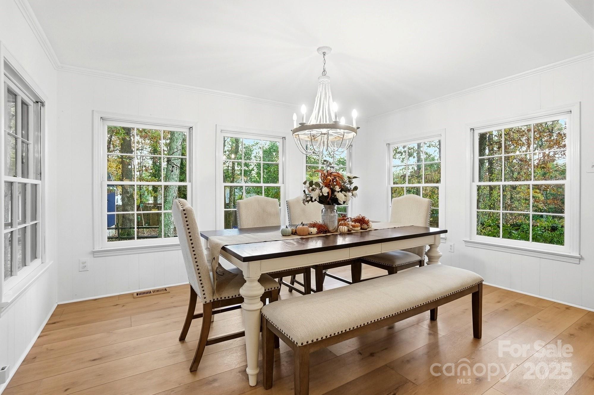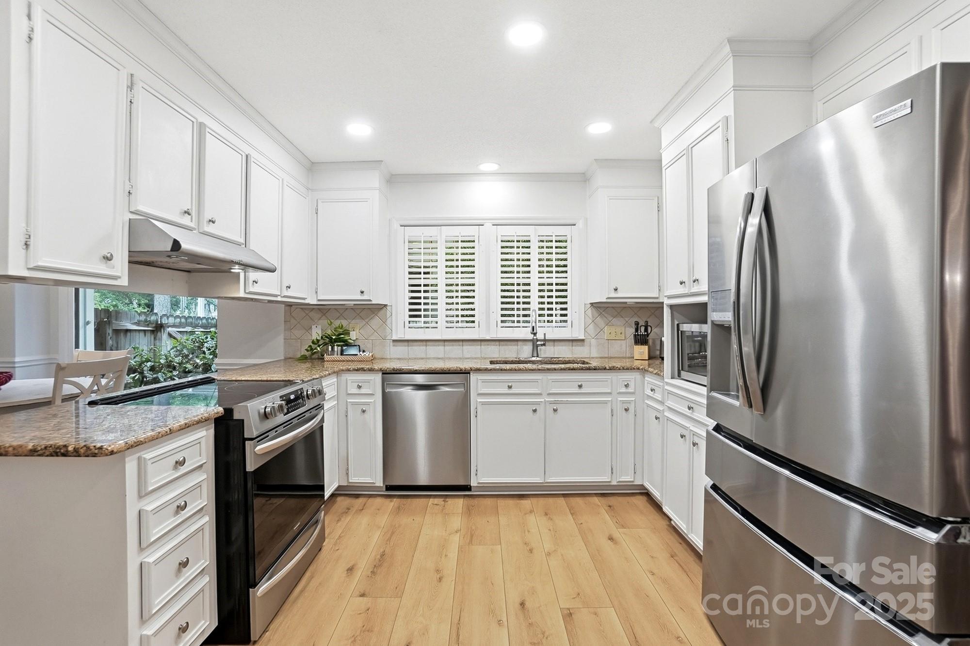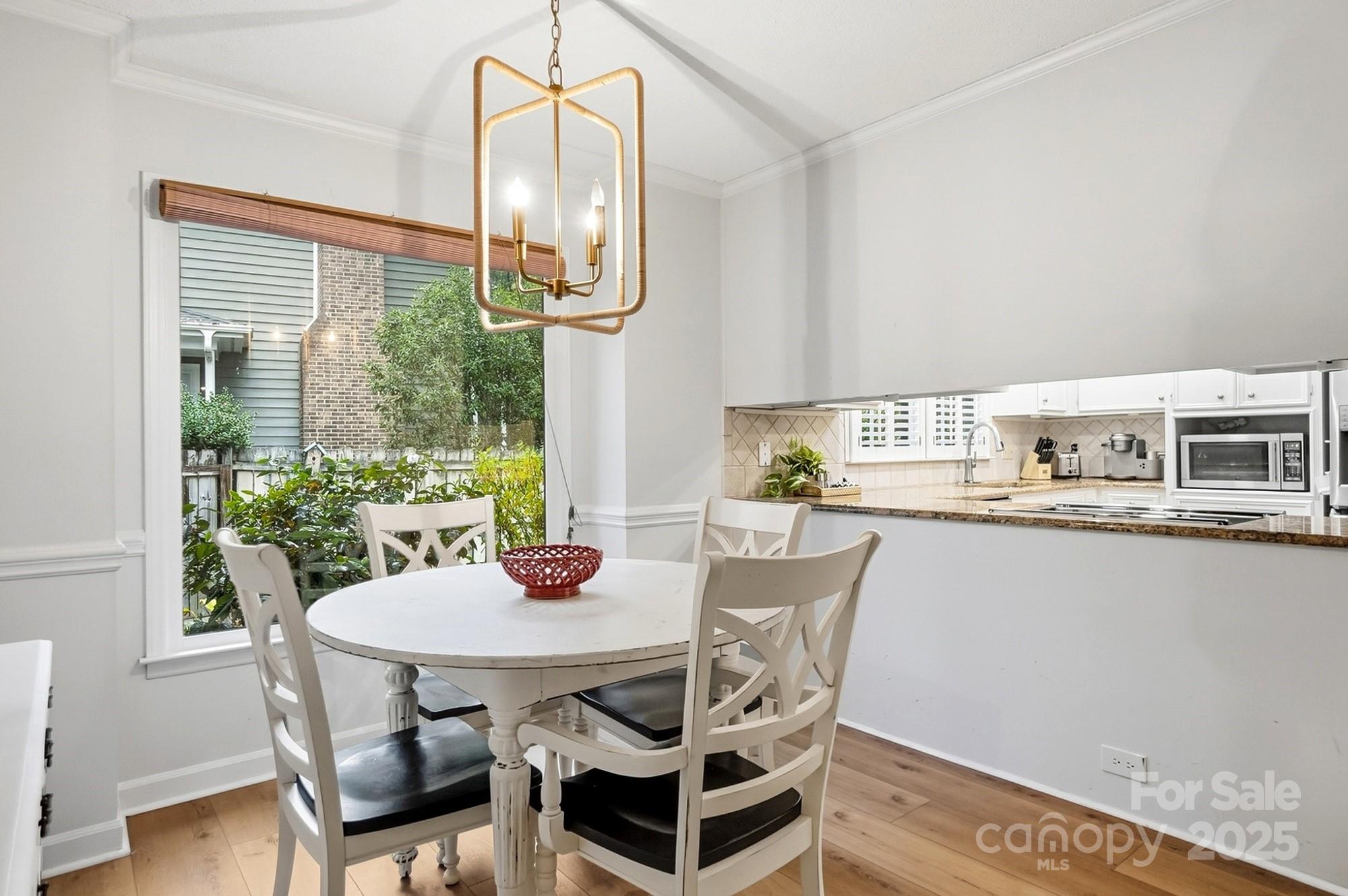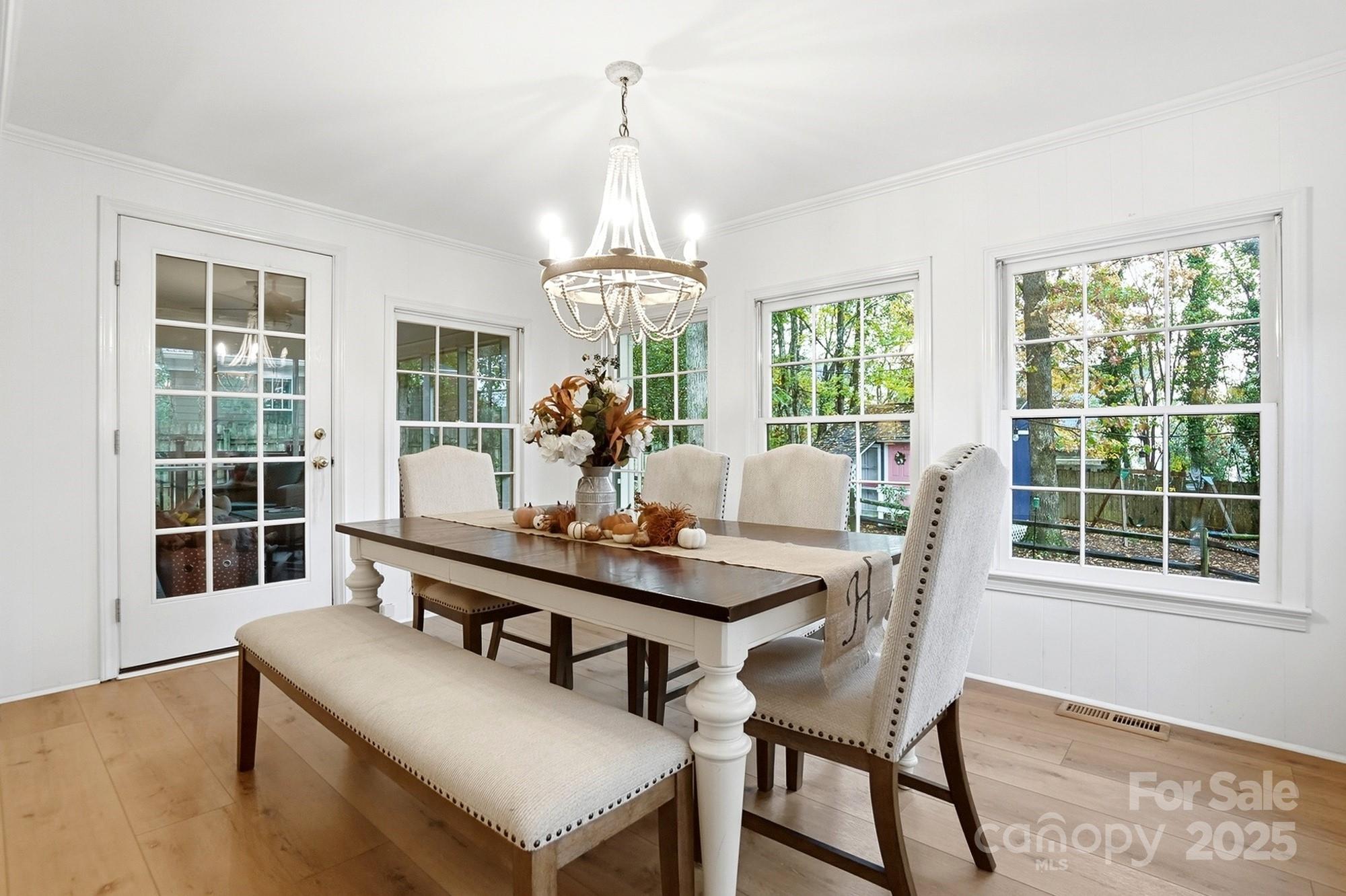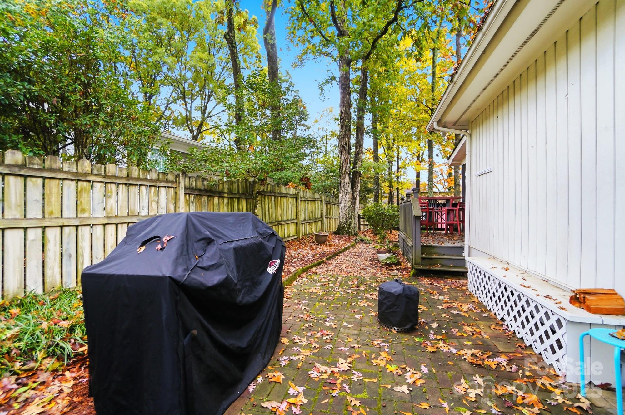 If you have been waiting for a 3 bedroom 2 bath ranch plan in South Charlotte that's in beautiful move-in condition, it's right here! The loveliest front porch and double door front entry are so charming - entry area is great for bench or dropping your keys as you come home. The living area is open and bright - large Living Room with tons of built-ins for your games or record collection and a focal wood-burning fireplace for cozy evenings. The huge Dining Room is great for entertaining, and leads directly into the generous eat-in white Kitchen. Granite countertops and newer (2022) stainless steel appliances - Fridge included! Bay window in the breakfast area provides sunny mornings. A bright Sunroom off of the Living area is perfect for any use, and leads directly to the screened porch and rear deck. This home feels so large and open! A doorway separates the Bedrooms from Living area, and the Bedrooms are large with tons of closet space. Two full baths, each with double vanity for storage! The wood look vinyl plank flooring (2022) is easy to maintain and all colors are neutral and work with any decor. The attached 2-car garage (new garage door 2022) has to much space plus plenty of driveway parking. Outside the lot is over 1/3 acre, and in the fully fenced backyard, you will find the most adorable playhouse, just like a storybook picture, plus a fire pit area, and still plenty of room for all your outdoor activities. This location is fantastic, with easy access to Uptown, Southpark, Ballantyne, Matthews and all highways. Convenient to the new Publix at Arboretum, but all the shopping and restaurants you need are close by. This will feel like home the moment you enter! Come and visit Saturday November 1!