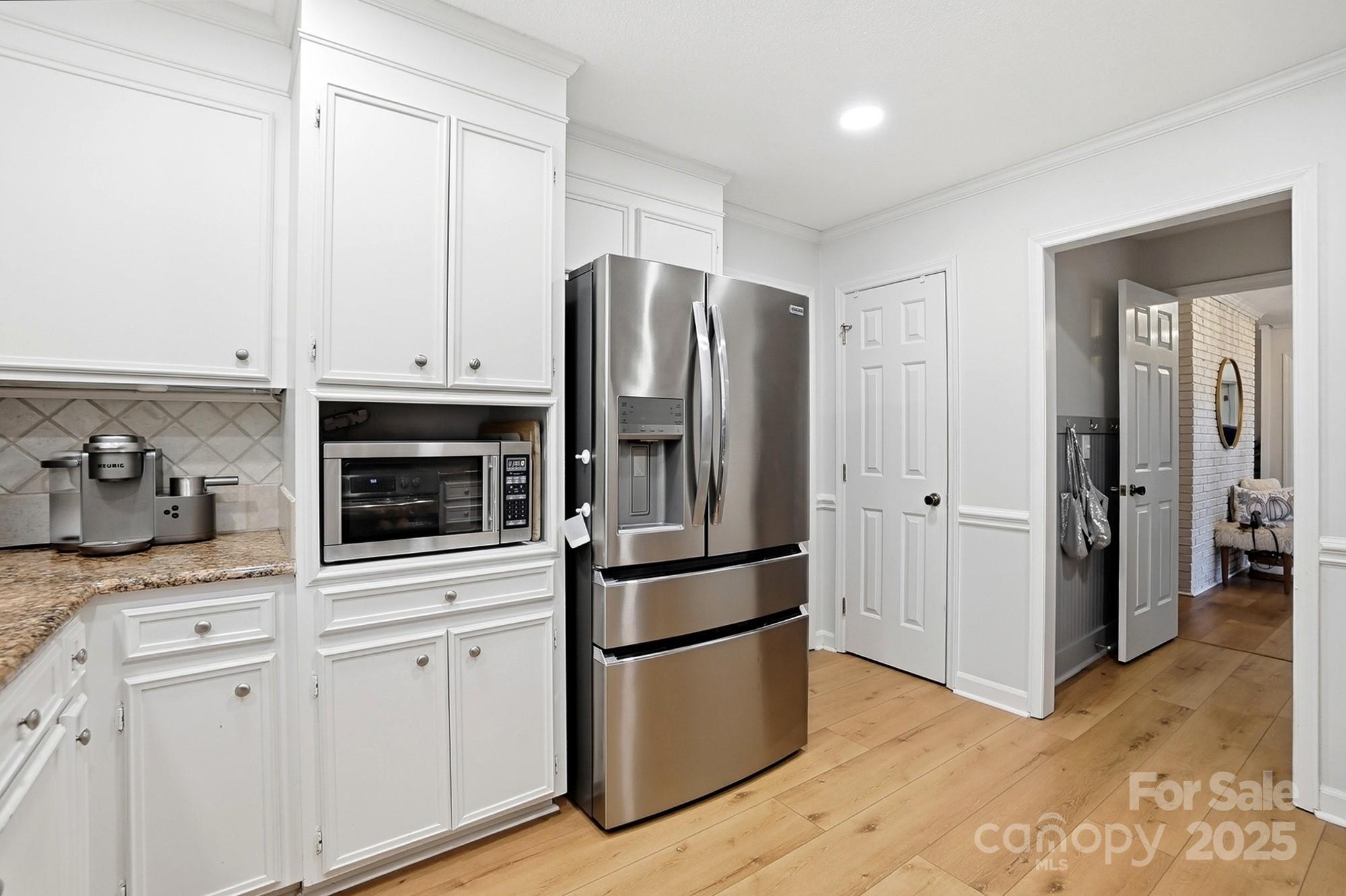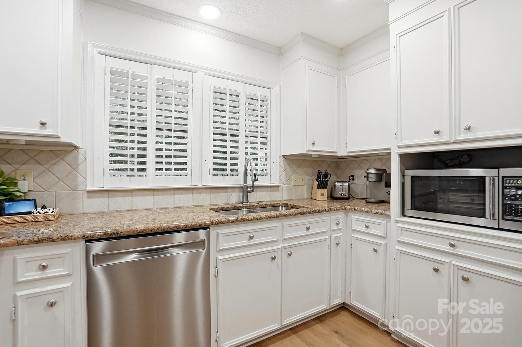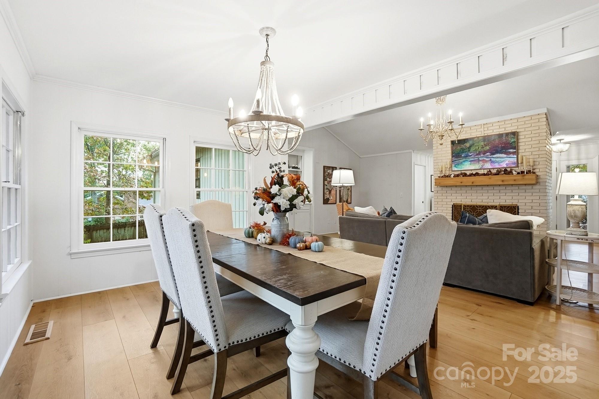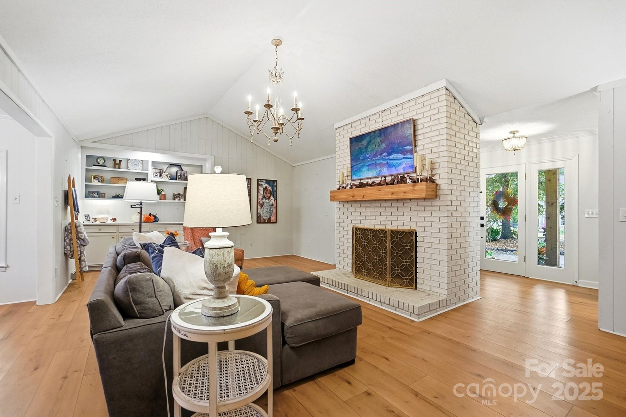If you have been waiting for a 3 bedroom 2 bath ranch plan in South Charlotte that's in beautiful move-in condition, it's right here! The loveliest front porch and double door front entry are so charming - entry area is great for bench or dropping your keys as you come home. The living area is open and bright - large Living Room with tons of built-ins for your games or record collection and a focal wood-burning fireplace for cozy evenings. The huge Dining Room is great for entertaining, and leads directly into the generous eat-in white Kitchen. Granite countertops and newer (2022) stainless steel appliances - Fridge included! Bay window in the breakfast area provides sunny mornings. A bright Sunroom off of the Living area is perfect for any use, and leads directly to the screened porch and rear deck. This home feels so large and open! A doorway separates the Bedrooms from Living area, and the Bedrooms are large with tons of closet space. Two full baths, each with double vanity for storage! The wood look vinyl plank flooring (2022) is easy to maintain and all colors are neutral and work with any decor. The attached 2-car garage (new garage door 2022) has to much space plus plenty of driveway parking. Outside the lot is over 1/3 acre, and in the fully fenced backyard, you will find the most adorable playhouse, just like a storybook picture, plus a fire pit area, and still plenty of room for all your outdoor activities. This location is fantastic, with easy access to Uptown, Southpark, Ballantyne, Matthews and all highways. Convenient to the new Publix at Arboretum, but all the shopping and restaurants you need are close by. This will feel like home the moment you enter! Come and visit Saturday November 1!