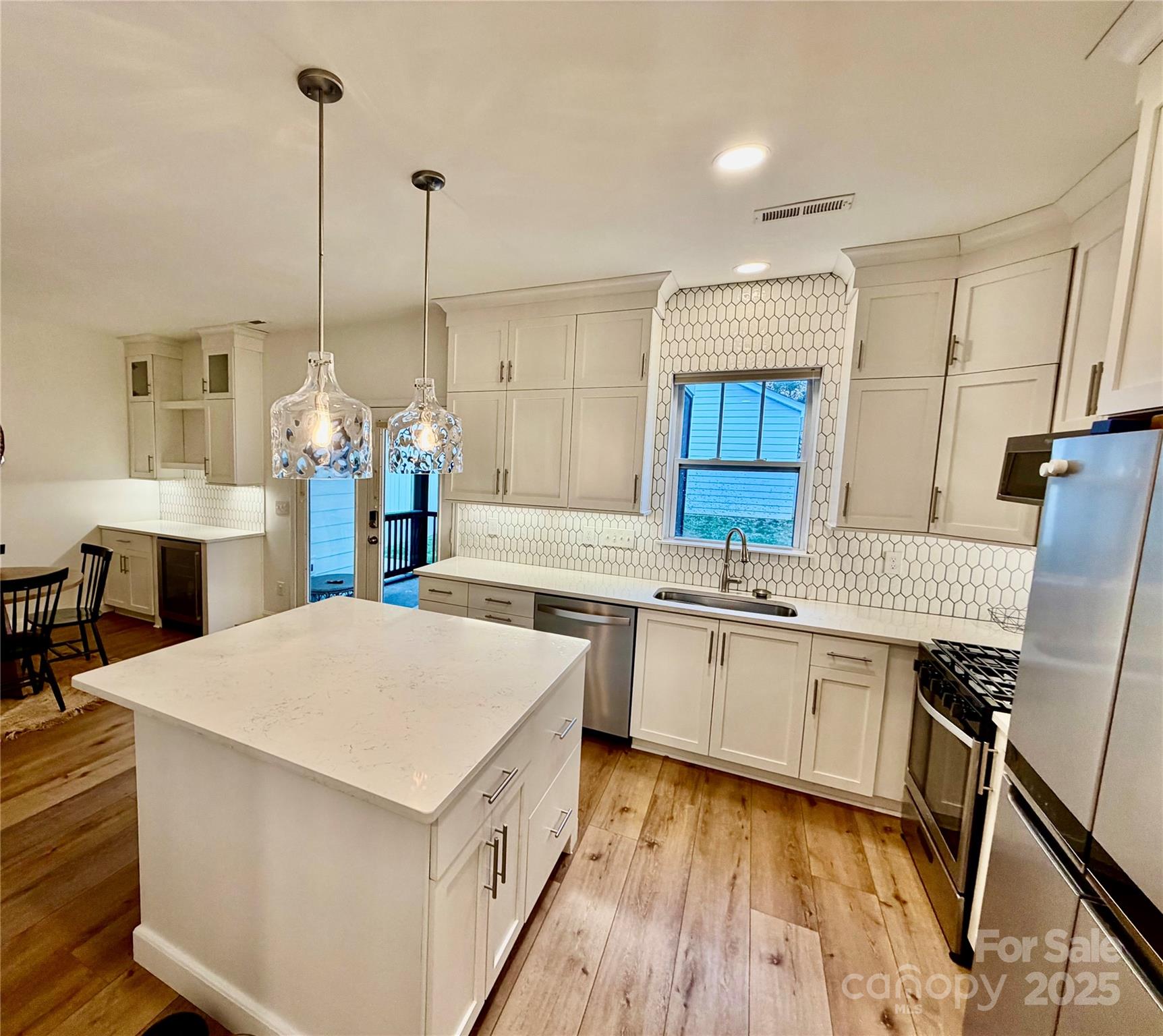Welcome to this beautifully maintained 3-bedroom, 2.5-bath home in highly desirable Davidson—just a short stroll to lively Main Street and Lake Davidson! Built in 2002, this home offers approximately 1,344 sq ft of thoughtfully designed living space. Inside, you’ll find an open living and dining area filled with natural light and wide-plank natural LVP flooring. The timeless, updated kitchen features high-end light fixtures, soft-close white custom cabinets that extend to the ceiling, under-cabinet lighting, quartz countertops, a large island with more storage including deep drawers, and a tile backsplash that reaches the ceiling. A stylish wine/coffee bar with a built-in beverage fridge completes the space. Upstairs, you’ll find three bedrooms and two beautifully updated full baths. The primary suite includes a spacious walk-in shower with a frameless glass door, while the hall bath and main-level powder room have also been updated. Outdoors, you’ll love relaxing on the screened-in porch (only two years old) overlooking the fenced backyard with access to the detached, insulated two-car garage. There’s also an exterior storage closet with plenty of room for toys, tools, and more. You can’t beat this location! Just steps from Parham Park where you can launch a paddleboard or kayak, take a stroll on the fitness loop, let the kids enjoy the playground, or relax with lunch at a picnic table overlooking the lake. Less than a mile from vibrant Main Street, you’ll love being close to Davidson’s charming restaurants, local shops, and community events. Enjoy all that Davidson has to offer— walk to dining, shopping, and concerts on the Town Green, with easy access to Lake Norman and I-77 for an effortless commute to Charlotte. This home perfectly blends location, lifestyle, and value—don’t miss your chance to make it yours! Professional measurements and photos coming soon. Showings start 11/3