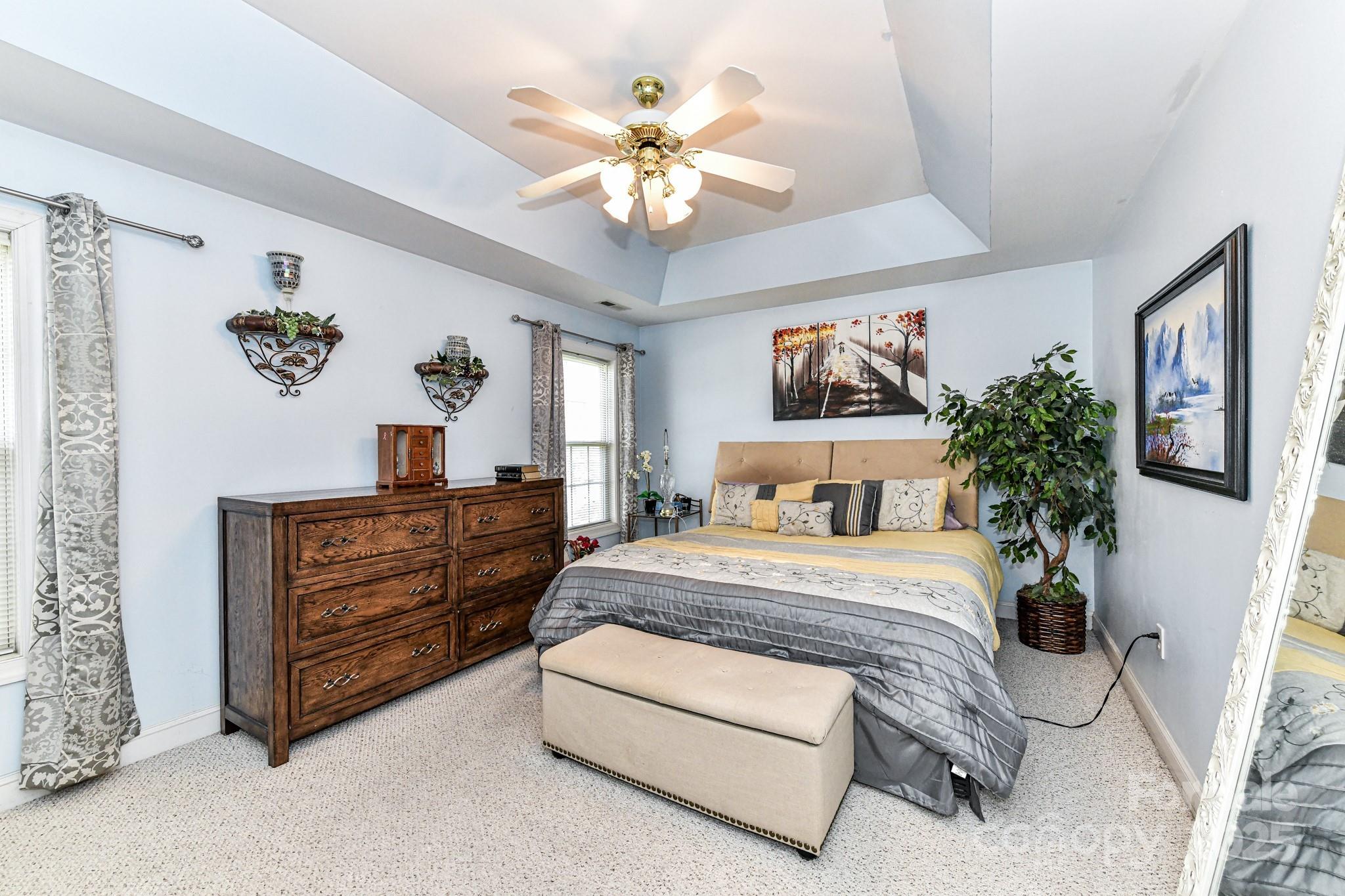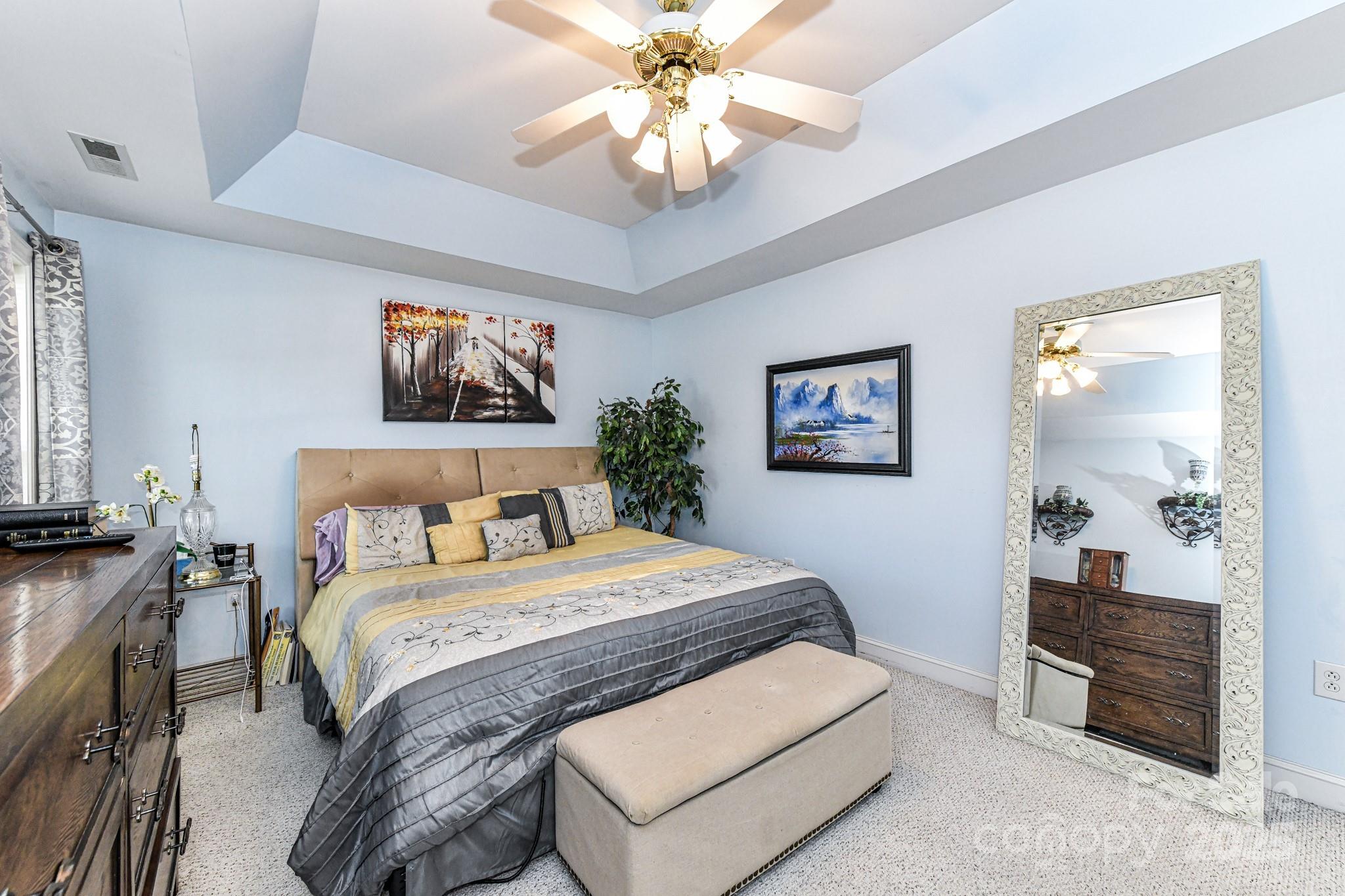 Step into this captivating property located in the highly sought-after Bent Creek neighborhood! This charming home features 4 spacious bedrooms, 2.5 modern bathrooms, and a roomy 2-car garage, conveniently situated near I-485 for easy commuting, and a variety of shopping options to explore. The generous layout of this property provides ample living space for you and your loved ones to create lasting memories. Gleaming hardwood floors grace the interiors, exuding warmth and timeless elegance, while plush carpeting adds coziness to the living areas. The convenience of a main floor laundry room enhances your daily routines. Indulge in the luxury of a primary bedroom retreat boasting tray ceilings and a lavish garden tub, offering a perfect sanctuary to unwind and rejuvenate at the end of each day in style and comfort.
