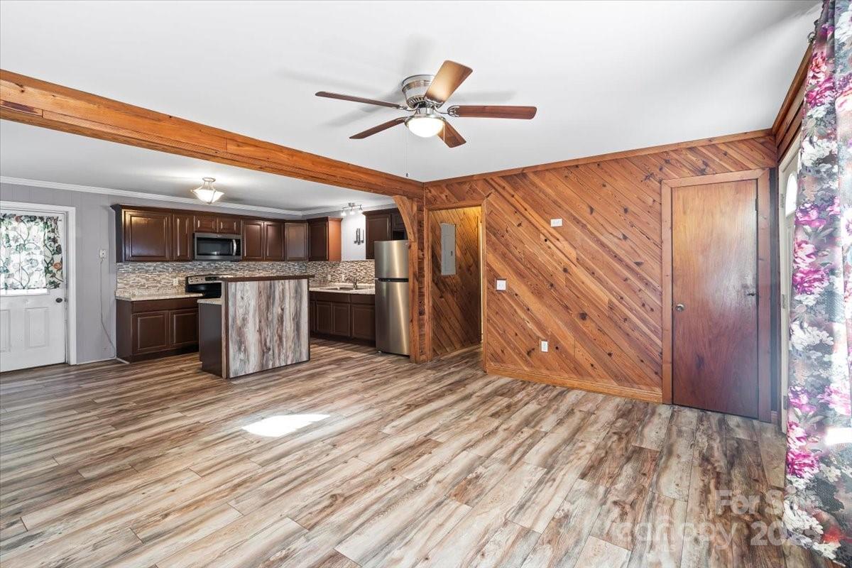 Welcome to this well-maintained 3-bedroom, 1-bath brick home on just over an acre in the growing area of Pageland. It features hardwood floors, an open floor plan, and a kitchen with neutral colors and stainless steel appliances. The wood plank walls add a warm touch and make the space feel inviting. The three bedrooms offer flexibility for a main room, office, or nursery. Enjoy the large backyard — perfect for kids or pets. Conveniently located near shopping centers, restaurants, and local amenities. Schedule your private showing today!