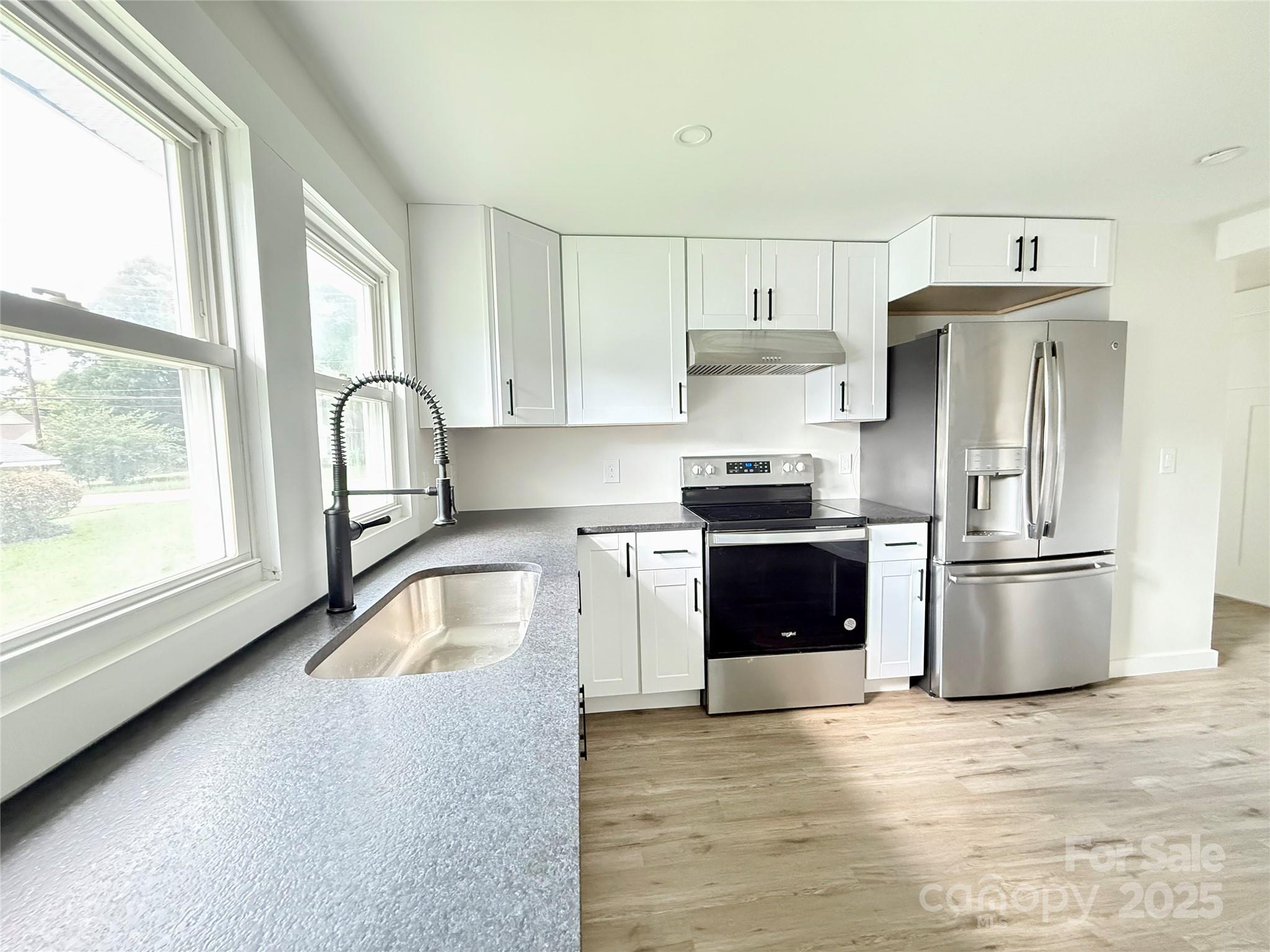 Beautiful, newly remodeled, bright and modern 3 bed, 2 bath, 2 car garage w/automatic door opener(to be installed by closing), farmer style porch in the front, and concrete patio outback with oversized yard giving extra space for living and entertaining. The new concrete driveway offers ample parking. A brand new roof, all new HVAC, electrical, hot water tank and plumbing will have you living worry free for years to come. This modern kitchen has tons of natural light, is fully applianced with stainless steel and boasts leathered granite countertops and a breakfast nook. Washer/dryer hookups, wood burning fireplace, recessed lighting, tiled bathroom floors and LVP throughout are just some of the additional accommodations. You’ll also notice quality Kohler/Delta/Moen fixtures throughout. Easy highway access and conveniently located near Concords vibrant downtown with a wide selection of dining and shopping options. Don’t miss the opportunity to call this home!