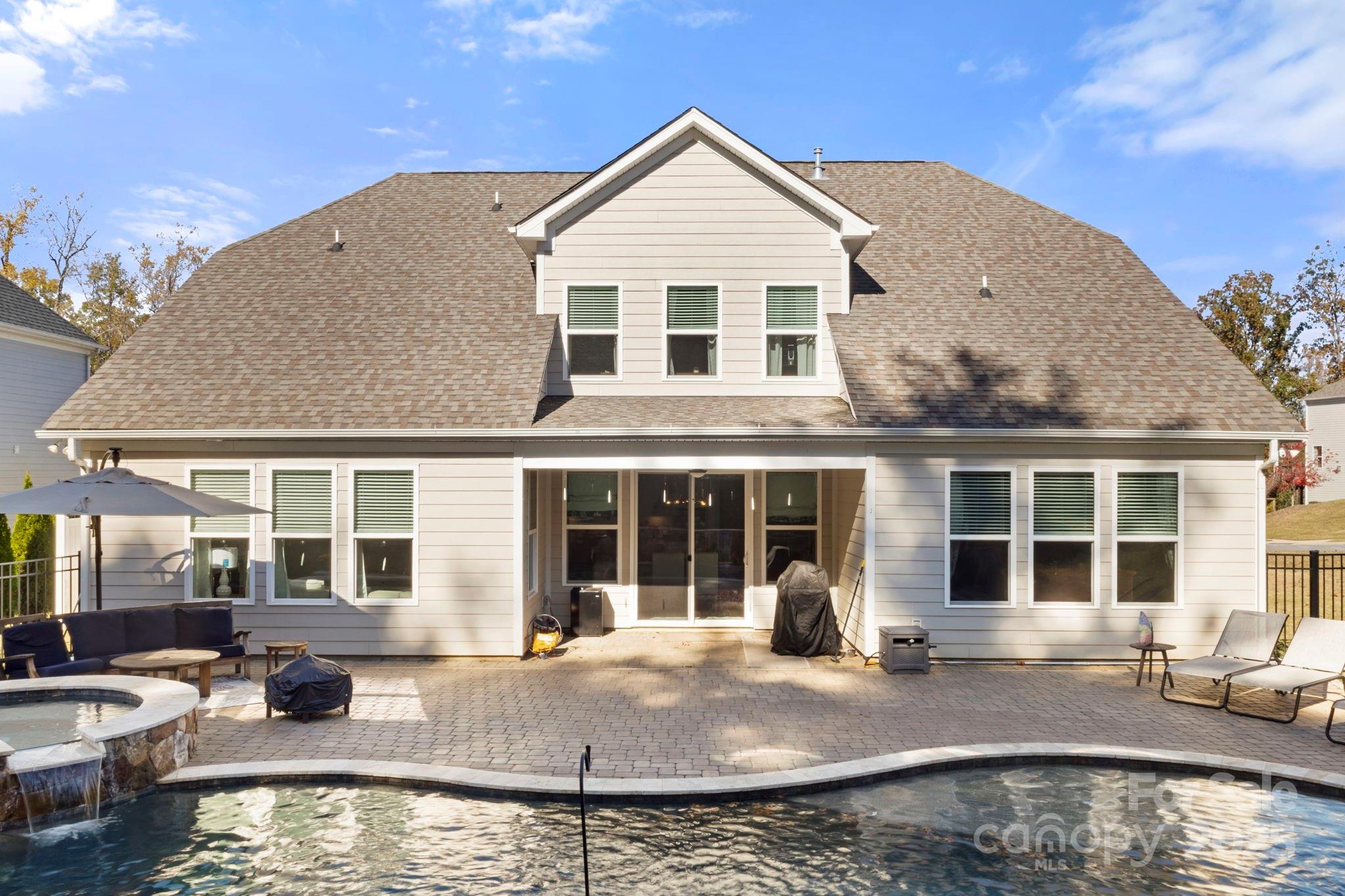 Welcome home to this beautiful residence in the peaceful Walden community. This spacious property offers 4 bedrooms and 4.5 baths, including a comfortable main-level primary suite with an upgraded bathroom, and two additional bedrooms with their own baths. The gourmet kitchen is the heart of the home, featuring a large island, quartz countertops, and upgraded cabinetry that open to the breakfast area and great room with a cozy granite fireplace. A private study with French doors completes the main floor. Upstairs, you’ll find a bright loft, another bedroom with a private bath, and generous storage space. Step outside to enjoy a truly special backyard—complete with a sparkling custom pool, relaxing hot tub, and a large paver deck surrounded by nature. The covered porch offers the perfect spot to unwind or gather with friends. Walden is known for its friendly atmosphere and community amenities, including a pool, clubhouse, picnic areas, and walking trails. This home offers the comfort, space, and setting to enjoy life at your own pace.