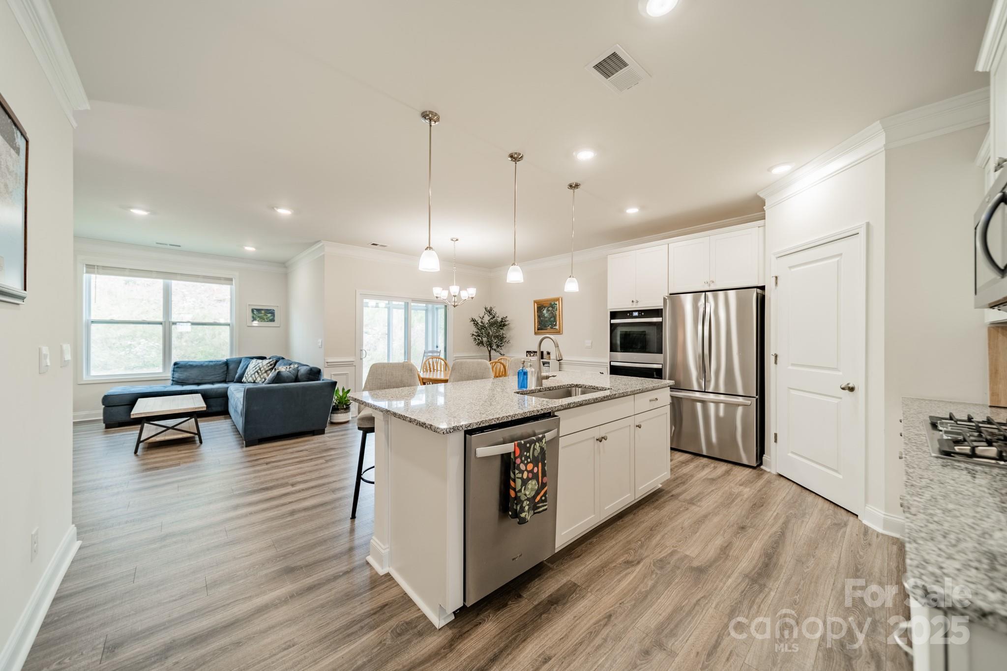 Live the resort lifestyle at The Vineyards On Lake Wylie! Such an amazing location at major highways, within a few minutes to the Charlotte Douglas International Airport, quick travel to uptown Charlotte plus the Whitewater center. The Vineyards is located on Lake Wylie and features a resort-style pool, new clubhouse under construction now, tennis courts, community dock and boa/paddleboard access, walking trails, sidewalks galore, a dog park, playground, and street lights to guide your way. Lots of reasons to enjoy all the fun amenities! For your new home... built in 2023, you will enjoy one-story living with all the current color and materials - light colored walls, beautiful moldings, vinyl plank flooring, granite kitchen with tiled backsplash, tiled baths and a gas log fireplace. When you want to enjoy your back yard, the owners upgraded the covered patio with a screen system that opens on the side for coming/going. This lot is large and features a hill with trees at the top so you aren't looking at other home - so SWEET! Sun streams through the windows for beautiful natural light. The laundry room is convenient for all the daily chores. The owners are including the kitchen refrigerator, washer and dryer in the property sale. An attached 2-car garage is a great feature, plus there is driveway parking space as well. The combination of this newer home that is ready to go now, a larger lot, plus this amazing community... this is a fabulous opportunity. Schedule a visit and see for yourself!