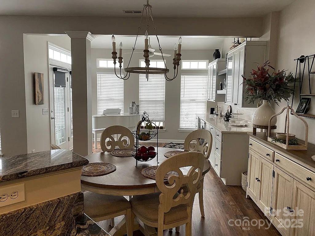 This end-unit townhouse, located in the desirable Regent Park subdivision of Fort Mill, SC, was built in 2007 and features 3 bedrooms and 2.5 bathrooms with an open floorplan freshly repainted throughout. Inside, you’ll find all laminate wood flooring on both levels, tray ceilings, transom windows, pull-down attic stairs, and a garden tub. The kitchen is equipped with granite countertops, a tile backsplash, a breakfast bar, and a separate formal dining room. All appliances—including the dishwasher, refrigerator, microwave, washer, and dryer—are updated, with laundry conveniently located on the upper level. Each of the three toilets has been replaced and upgraded. The home also offers spacious secondary bedrooms, an office, a private back patio with 6’ enclosed fencing, and updated front and back screen doors. Residents enjoy access to the community pool, making this home both inviting and practical.