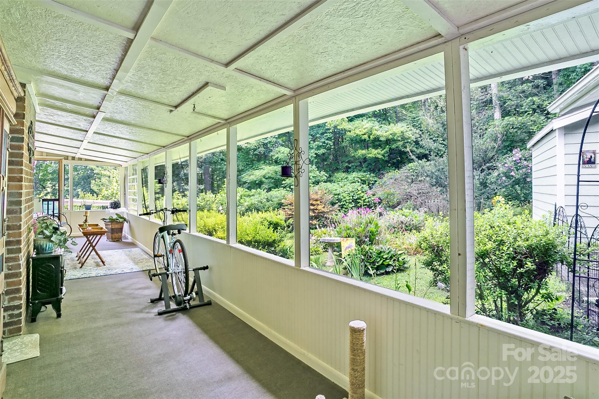 Bring your chickens! Attention animal lovers! This property is a paradise for animals and their beloved people. 1.99 acre property with approximately .5 acre of attractive, sturdy, dog proof fencing, extra large insulated dog house with covered porch in place, with room for other animals, as well. 40ft long screened porch, which is a dream area for indoor cats and other creatures! Large fenced garden area is the perfect spot to add a chicken coop! For the humans there is a beautiful, newly remodeled home, with a large primary suite with 2 closets, office area and deck. Very private, quiet lot with long range mountain views, ample parking, double carport, plenty of storage and more. Great area, with several large beautiful estates on this quiet dead end road. Approx. 20 minutes to Asheville, Hendersonville or Asheville airport. This is a very special place and must be experienced to be fully appreciated. Perfect as STR/vacation home. Please DO NOT enter the driveway without an appointment. Furnishings are available to purchase.