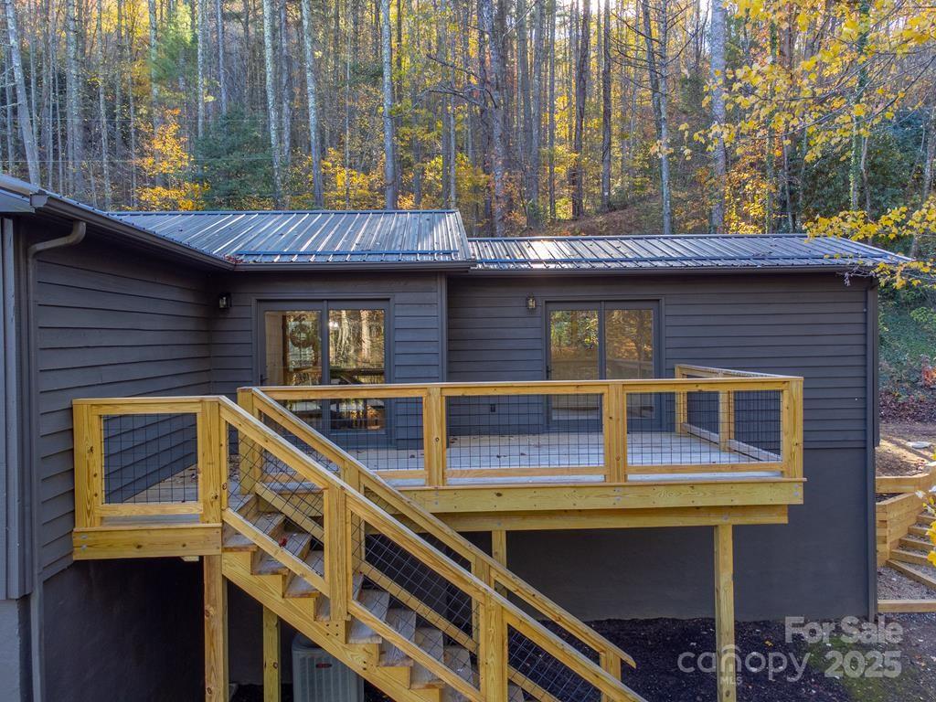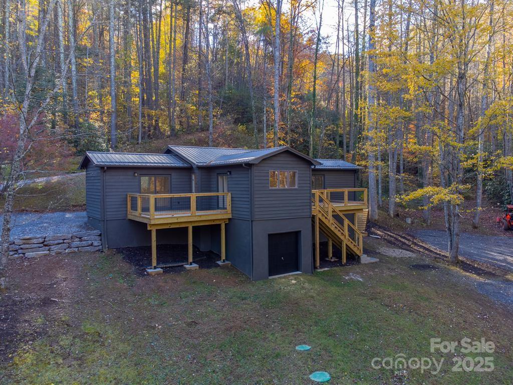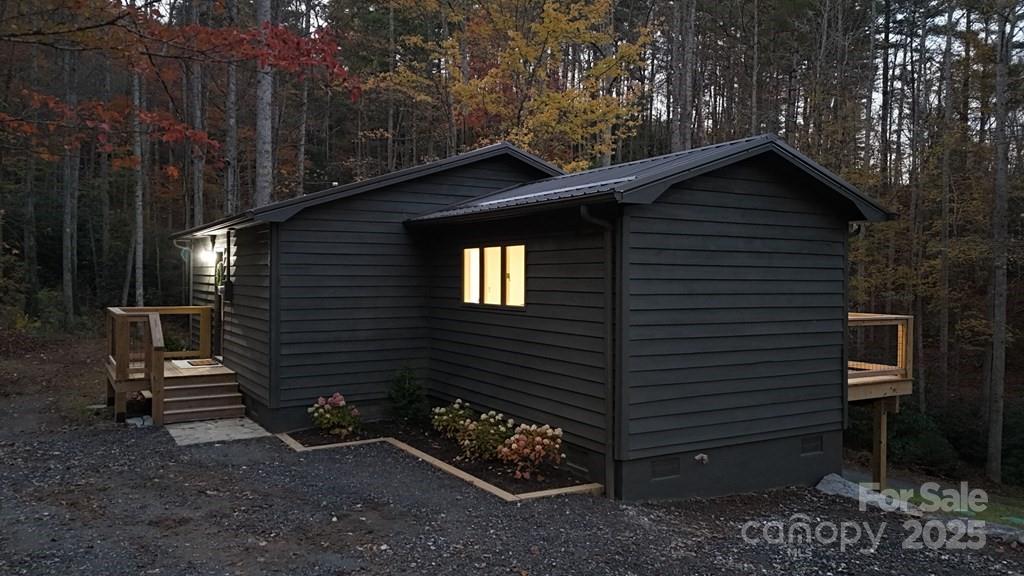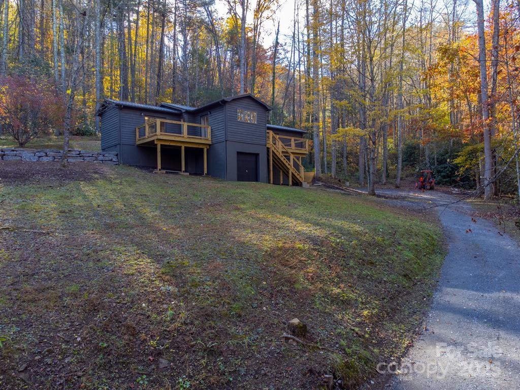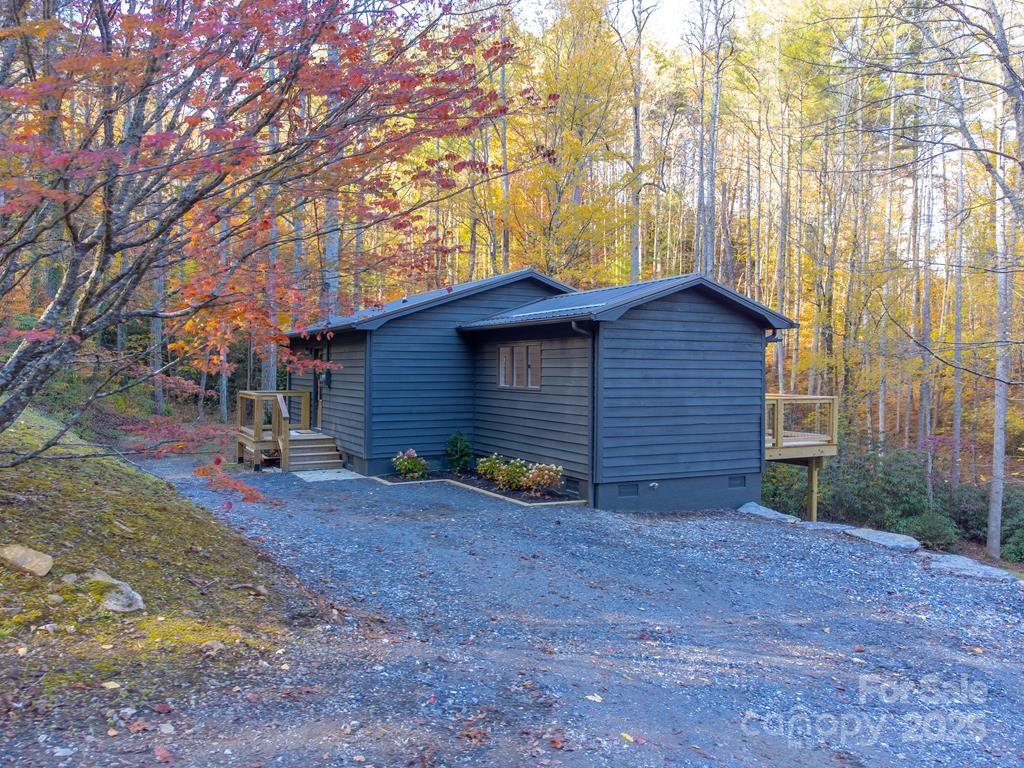 Step inside this modern rustic 3 bedroom, 2 bath mountain home that’s been completely renovated from the studs up! Featuring a new metal roof, planked ceilings throughout, and gorgeous knotty alder cabinetry topped with quartz countertops, this home blends rustic charm with modern luxury. The open concept living area is anchored by a sleek LED linear electric fireplace and durable LVP flooring. No stone has been left unturned with new sheetrock, lighting, hot water heater, upgraded stainless appliances, and fresh interior and exterior paint. Both bathrooms have been fully remodeled, including a custom-tiled walk-in shower in the primary suite and a tiled tub surround in the guest bath. All bedrooms have access to decks where you can enjoy the. peaceful sounds of the creek. There's plenty of room for play on the rolling 1.43 +/- acre lot. The stone fire pit sits creekside to allow for entertaining friends. Tucked away, yet close to WCU, the Tuckasegee River and Sylva this home offers the perfect blend of modern comfort, timeless design, and serene mountain living.