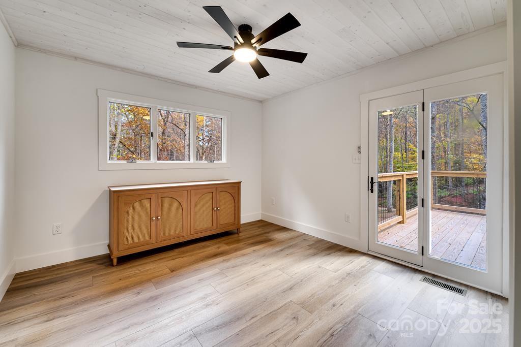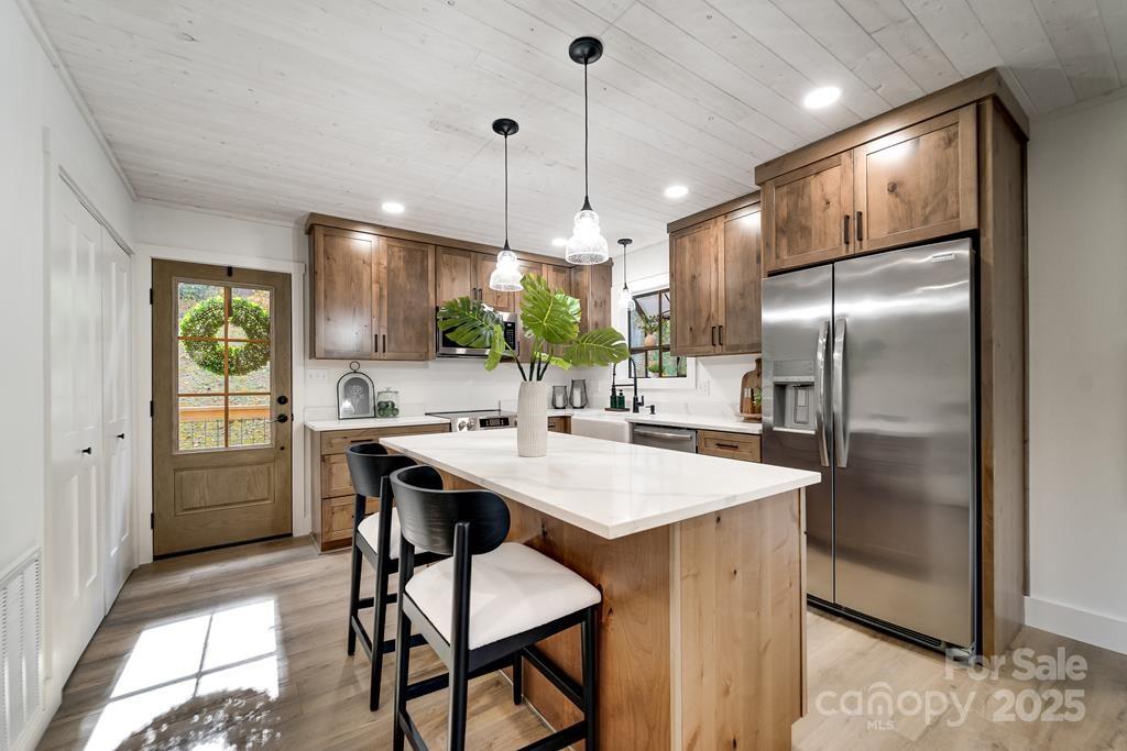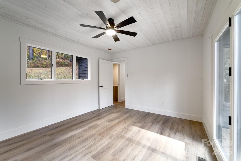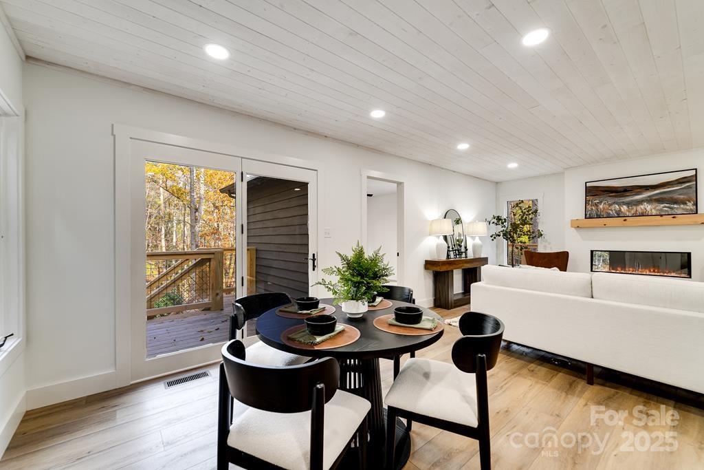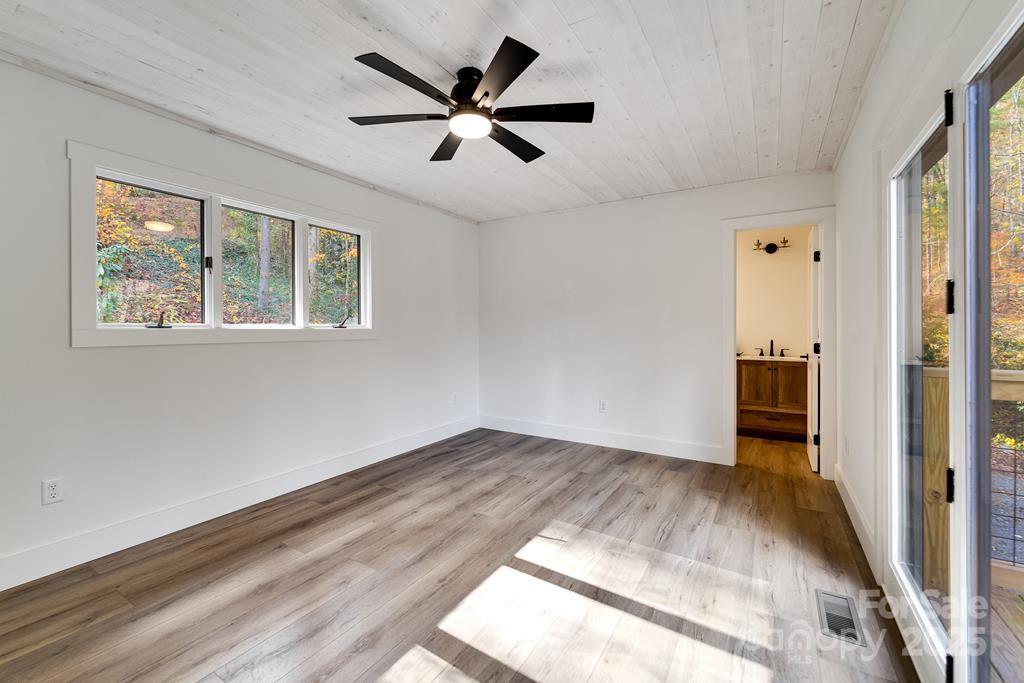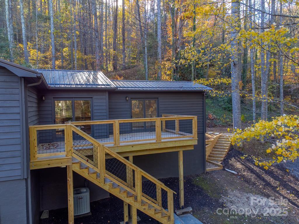 Step inside this modern rustic 3 bedroom, 2 bath mountain home that’s been completely renovated from the studs up! Featuring a new metal roof, planked ceilings throughout, and gorgeous knotty alder cabinetry topped with quartz countertops, this home blends rustic charm with modern luxury. The open concept living area is anchored by a sleek LED linear electric fireplace and durable LVP flooring. No stone has been left unturned with new sheetrock, lighting, hot water heater, upgraded stainless appliances, and fresh interior and exterior paint. Both bathrooms have been fully remodeled, including a custom-tiled walk-in shower in the primary suite and a tiled tub surround in the guest bath. All bedrooms have access to decks where you can enjoy the. peaceful sounds of the creek. There's plenty of room for play on the rolling 1.43 +/- acre lot. The stone fire pit sits creekside to allow for entertaining friends. Tucked away, yet close to WCU, the Tuckasegee River and Sylva this home offers the perfect blend of modern comfort, timeless design, and serene mountain living.
