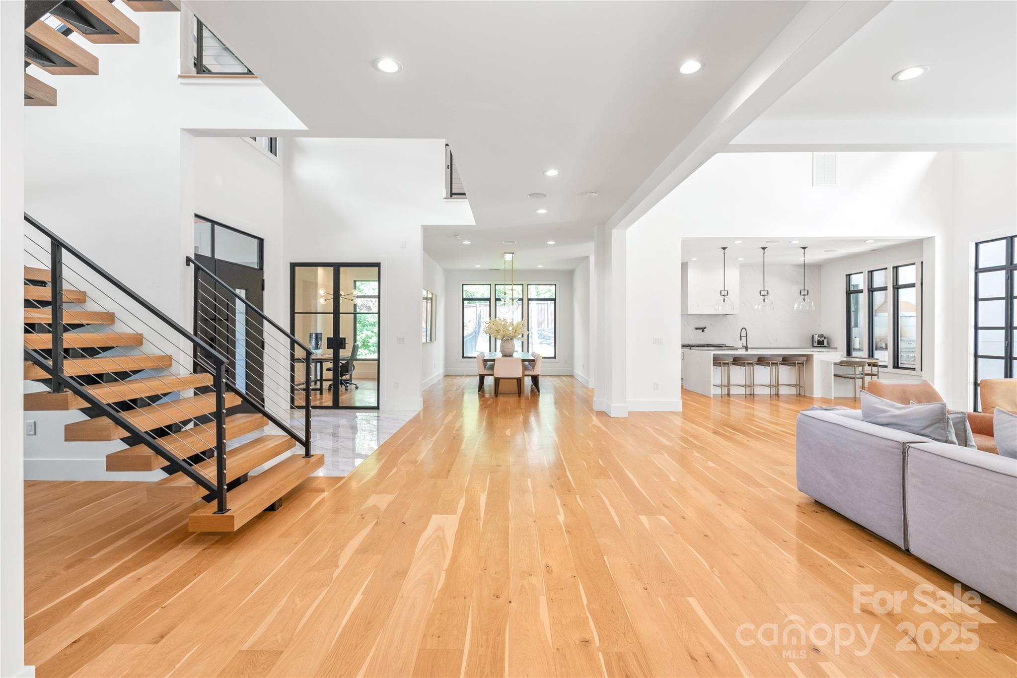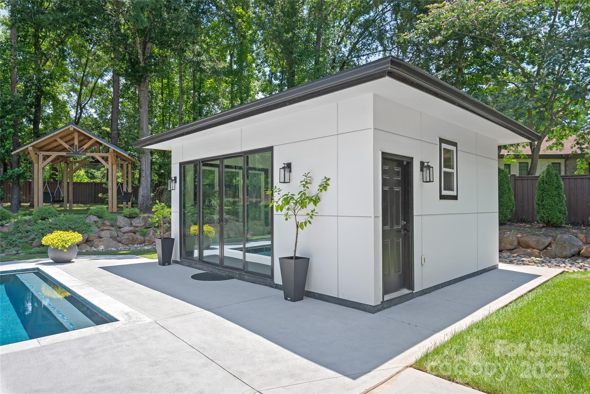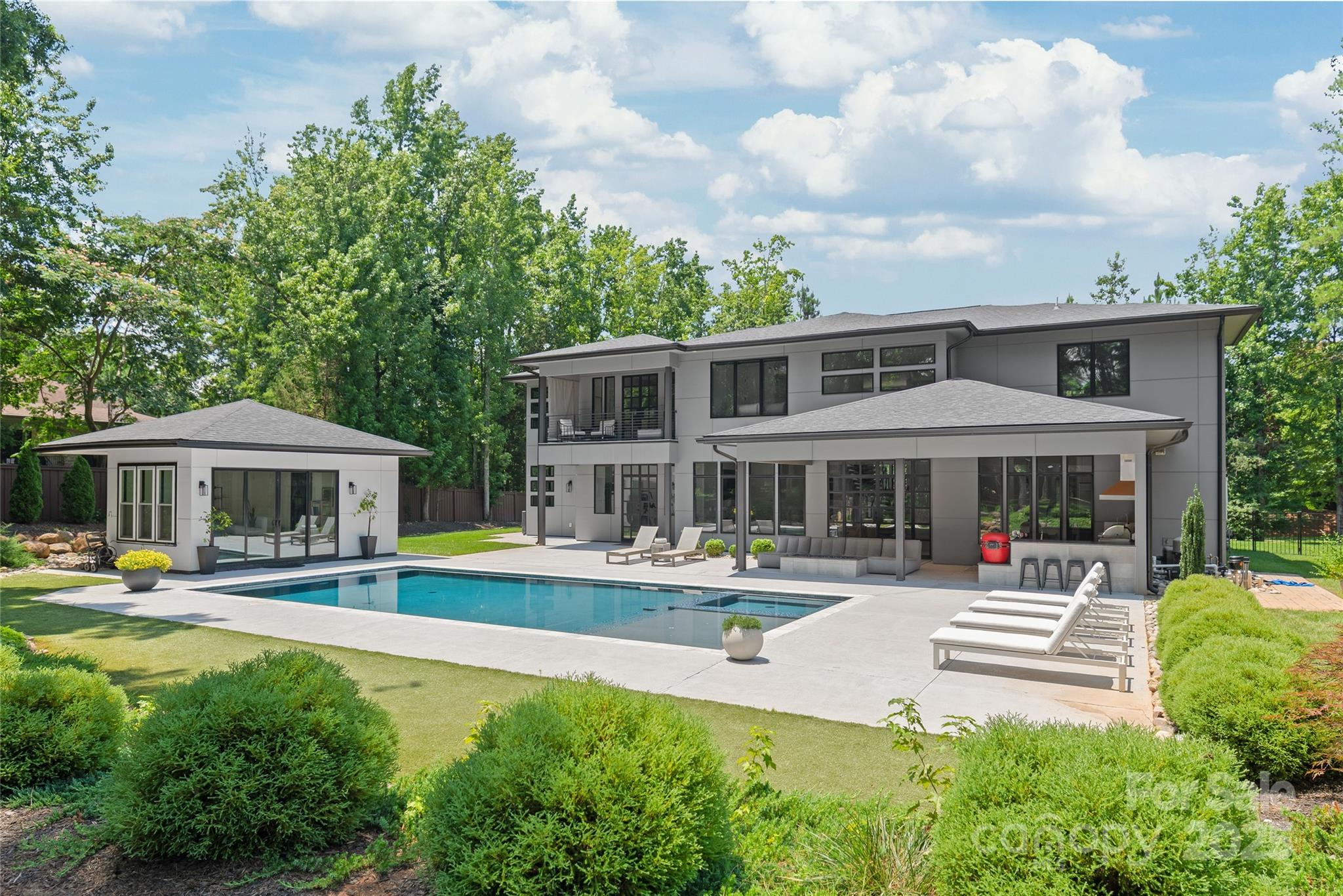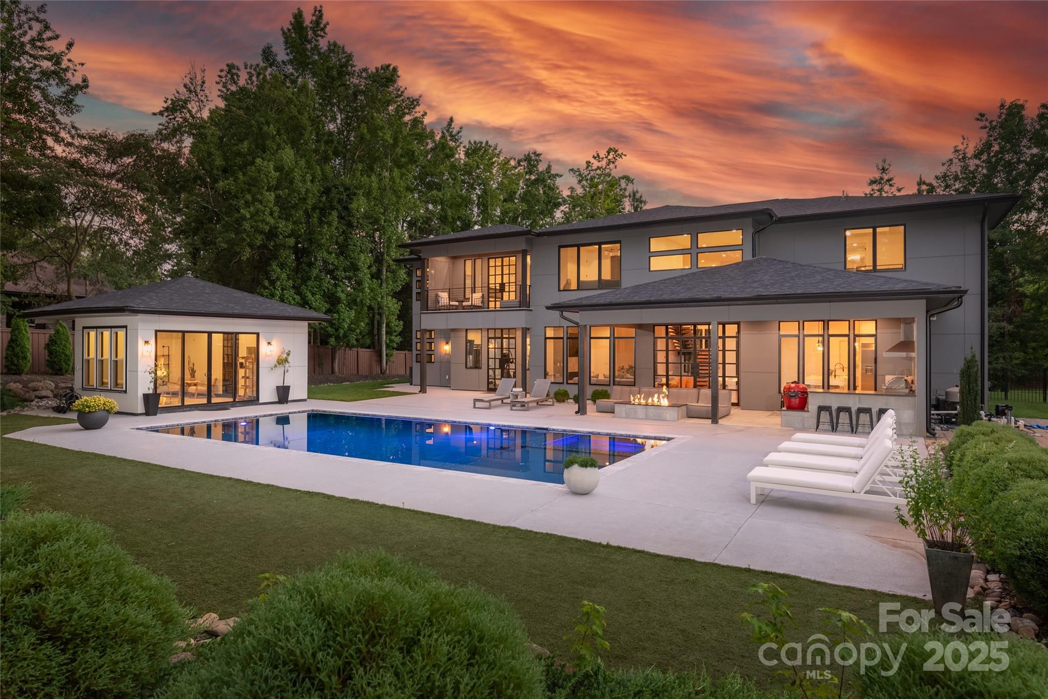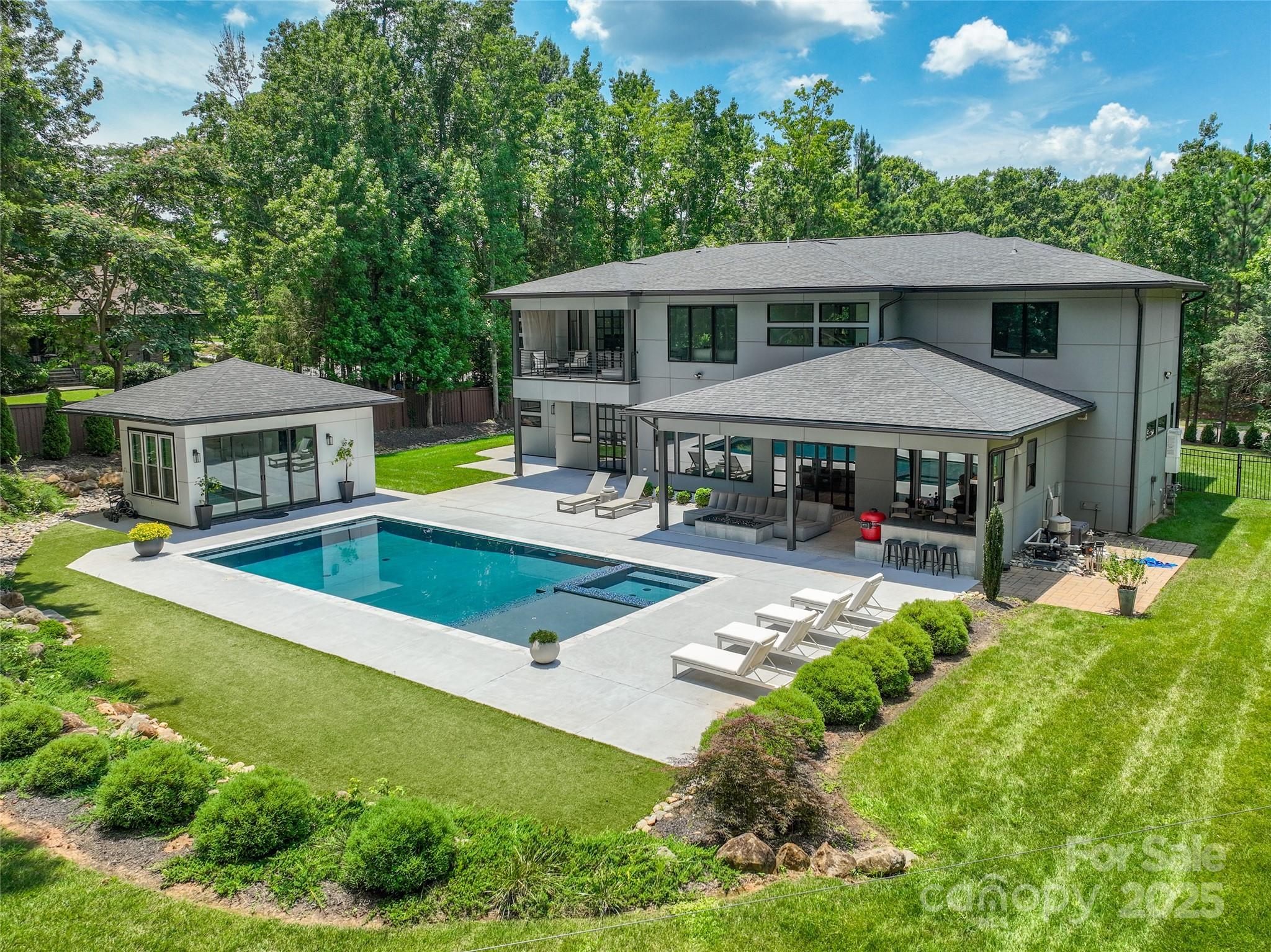 Stunning Modern estate located in highly desirable Waxhaw/Marvin area, zoned for top rated Union County schools. Set on over an acre, this custom-built home offers generous space for comfortable living and entertaining, with soaring ceilings, white oak floors, and a floating staircase. The gourmet kitchen features a 48” gas range, built-in fridge, pot filler, and waterfall quartz island. Natural light fills the open layout, enhancing the home’s elegant design. The resort-style backyard includes a heated pool, hot tub, tanning ledge, outdoor kitchen, gazebo, and a guest/pool house with full bath. Additional highlights include a home gym, built in sound system, indoor sauna, executive office, formal dining room, sprinkler system, and an oversized 3-car garage with epoxy floors, EV charger and a workshop. A rare blend of luxury, comfort, and thoughtful detail!