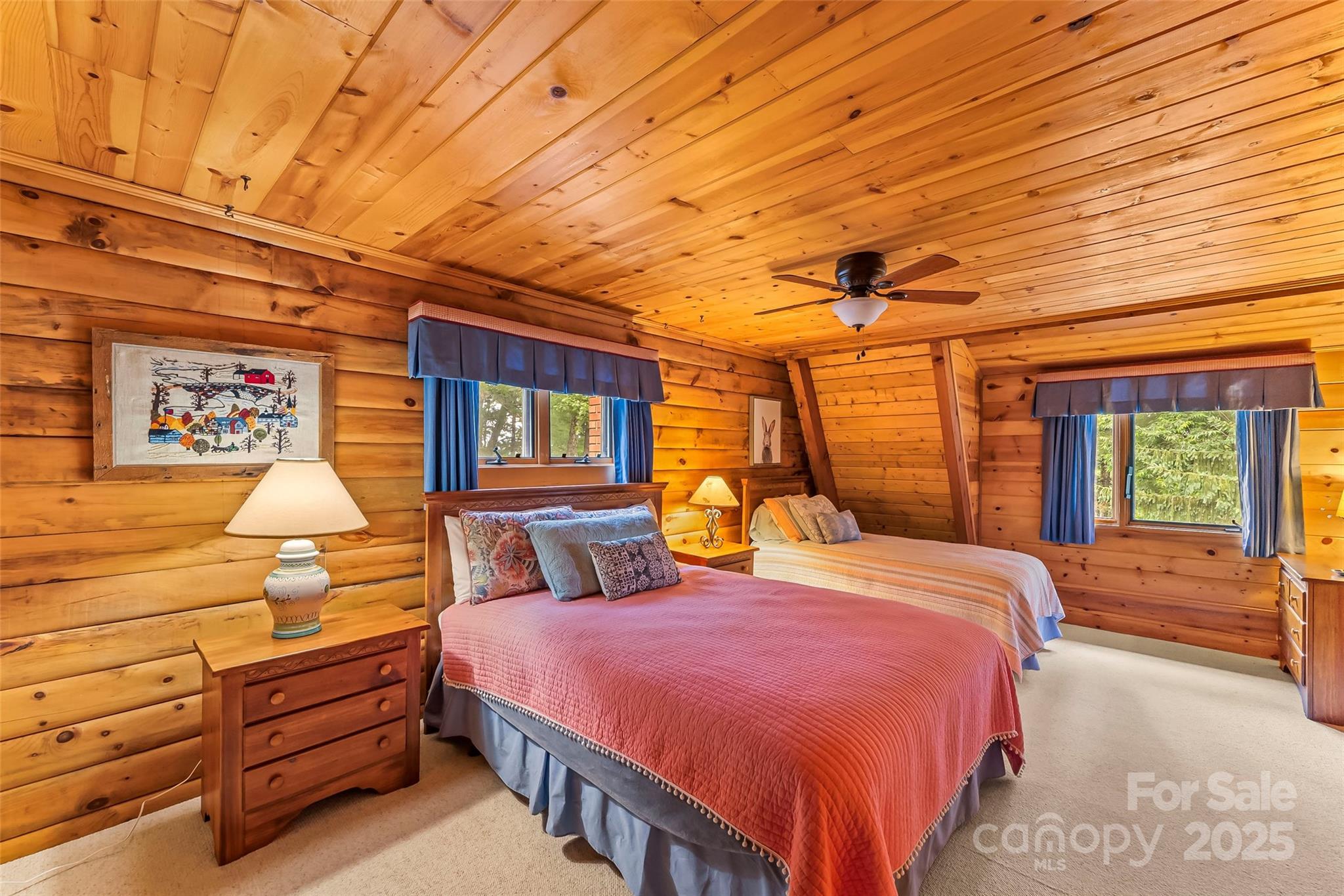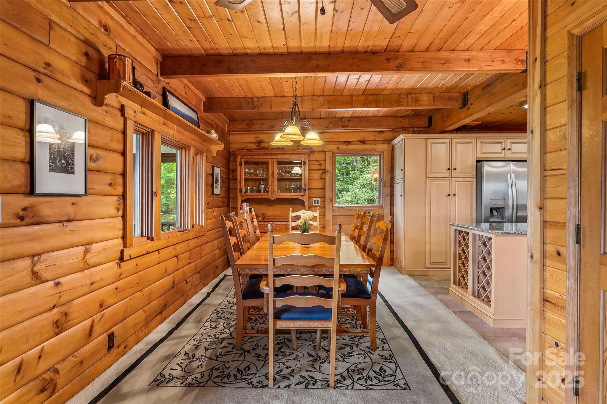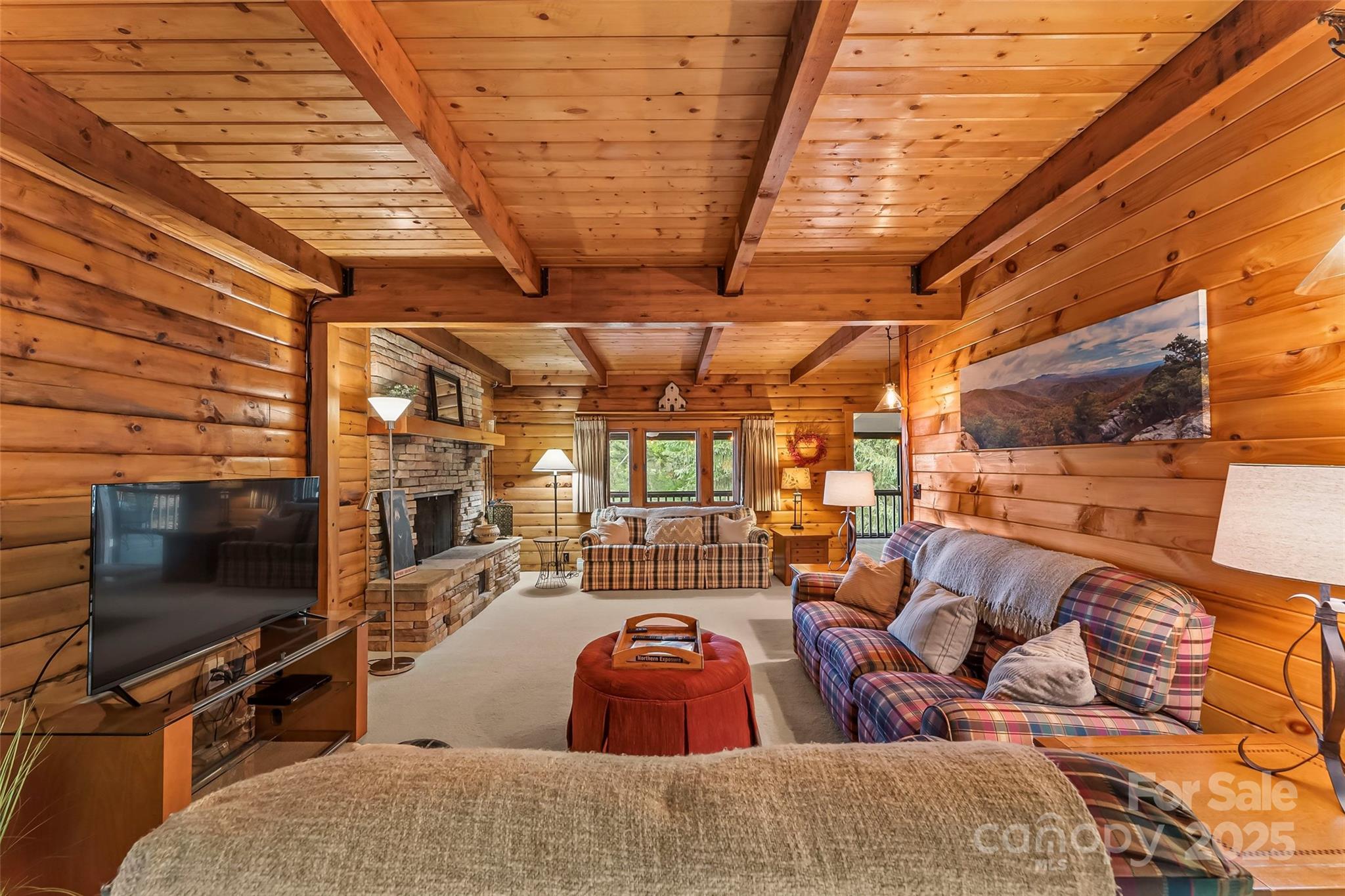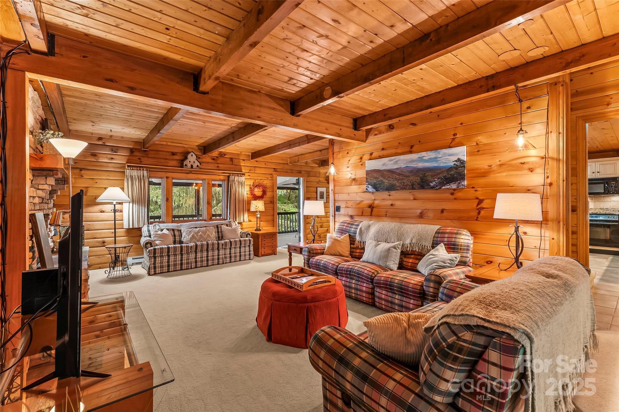 Welcome to your mountain retreat! This beautifully maintained 2/3 BR, 3.5 BA log cabin home offers sweeping views of Grandfather Mountain and is nestled on 1.97 acres near the top of Gingercake Mountain. Located just three miles from the iconic Blue Ridge Parkway, the Gingercake Acres neighborhood borders Pisgah National Forest and the rugged and scenic Linville Gorge Wilderness Area—perfect for nature lovers and outdoor enthusiasts. Enjoy the outdoors and amazing mountain views from the comfort of your deck or relax in the expansive screened-in porch—ideal for morning coffee, afternoon naps or entertaining guests. Inside, the main level features a spacious, modern kitchen, an open-concept living, dining, and library area, and a serene primary suite with a private bath. Upstairs, you’ll find two generously sized bedrooms, each with its own full en-suite bathroom—ideal for guests or family. High-speed Spectrum internet ensures you stay connected while enjoying peaceful mountain living. The full basement includes a laundry, additional shower, workshop, storage, and access to a single-car garage. As a resident of Gingercake Acres, you’ll also enjoy access to the recently updated clubhouse and swimming pool, tennis and pickleball courts. With nearby towns like Banner Elk, Boone, and Morganton just a short drive away, this home offers the perfect blend of views, tranquil seclusion and convenient access to dining, shopping, and year-round recreation. Offered fully furnished, this home is move-in ready—just bring your suitcase and start enjoying the mountain lifestyle.