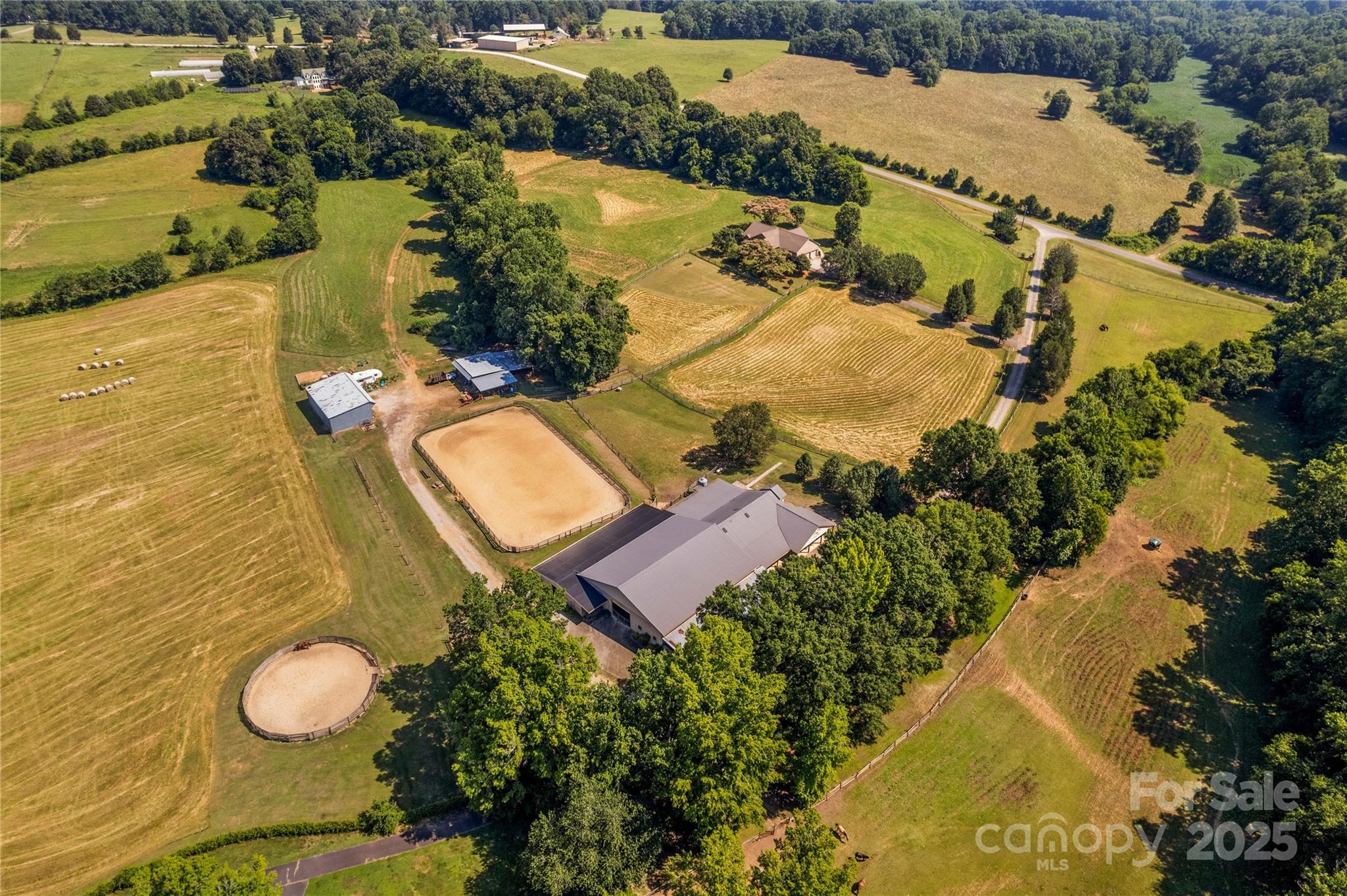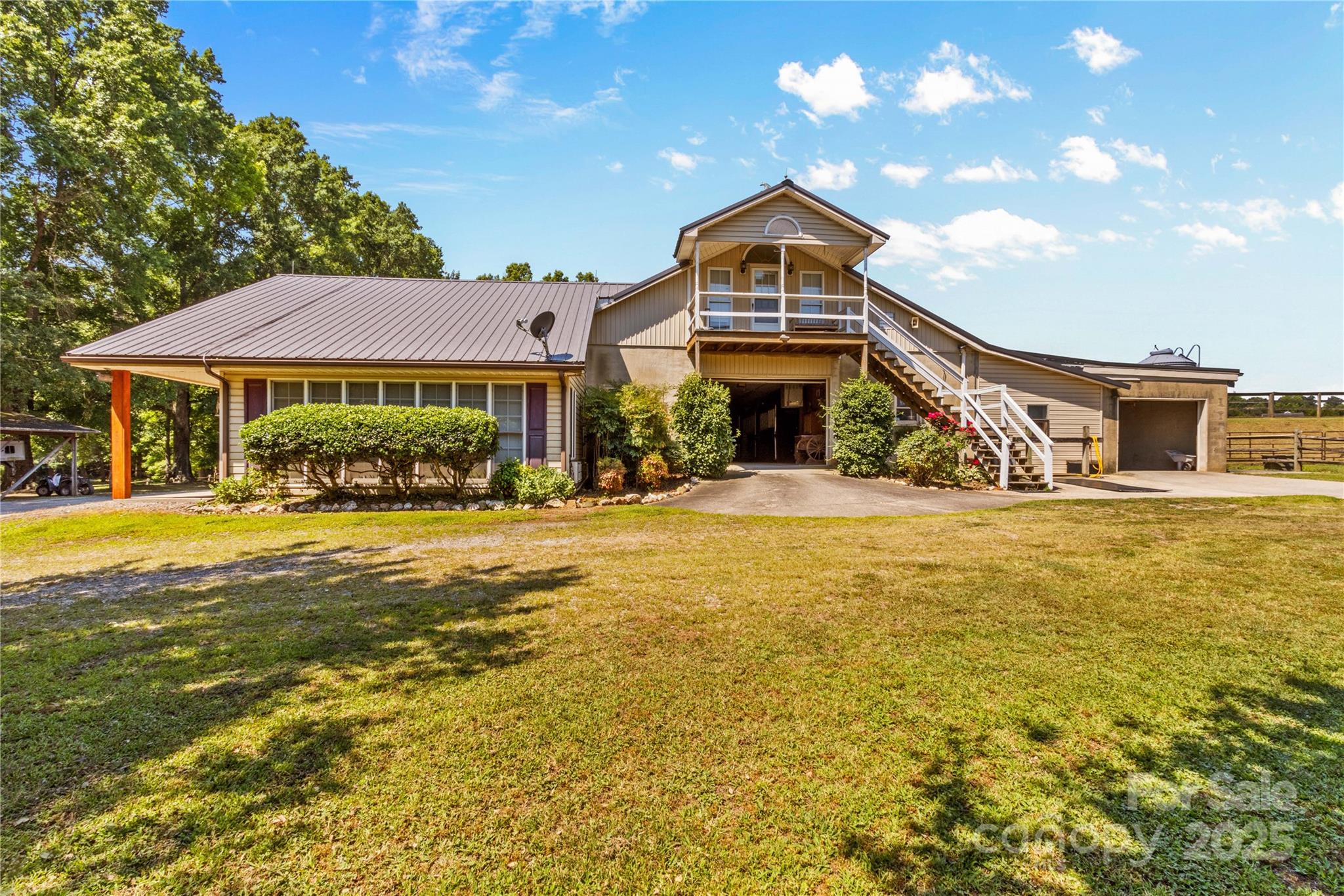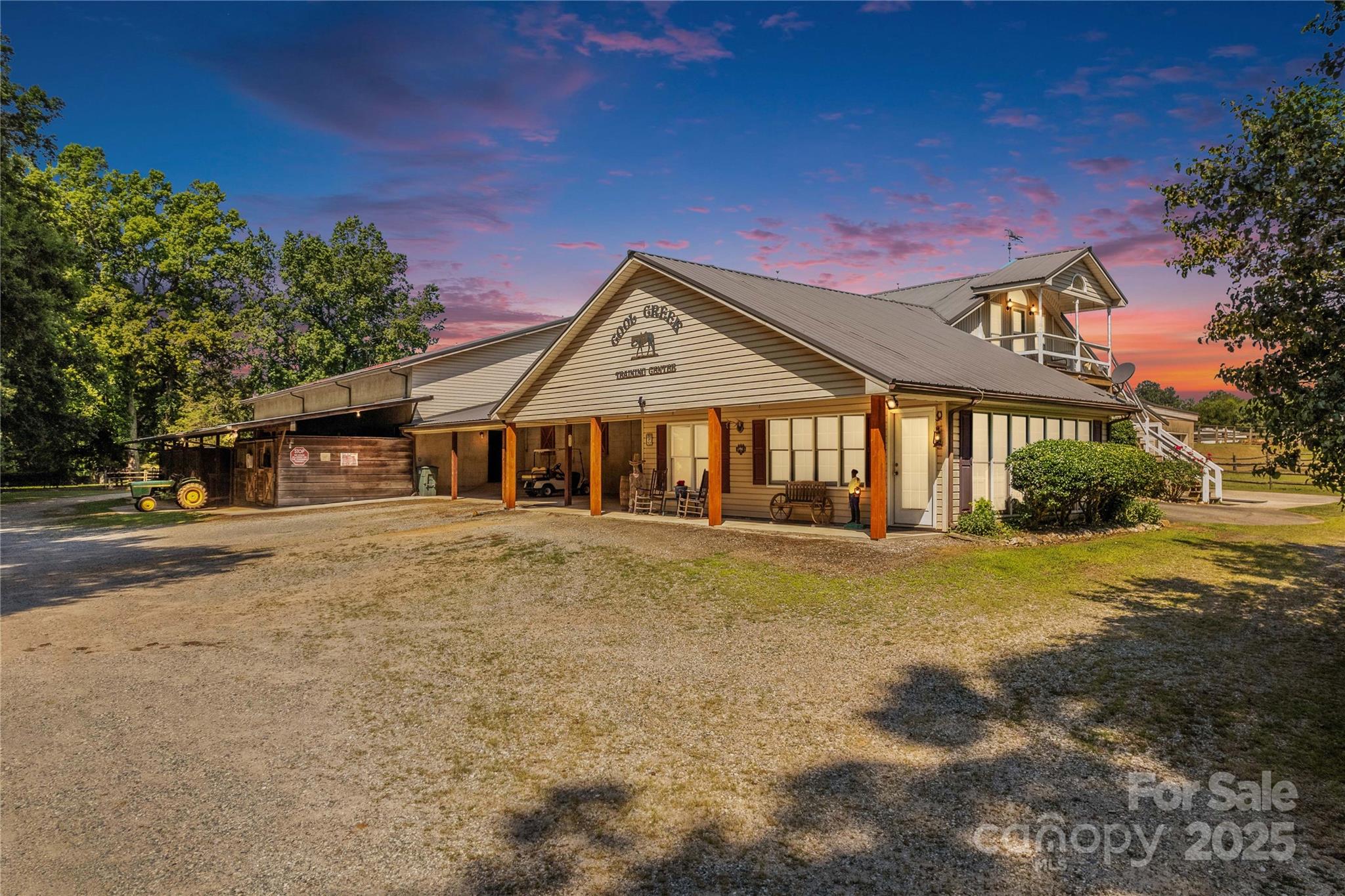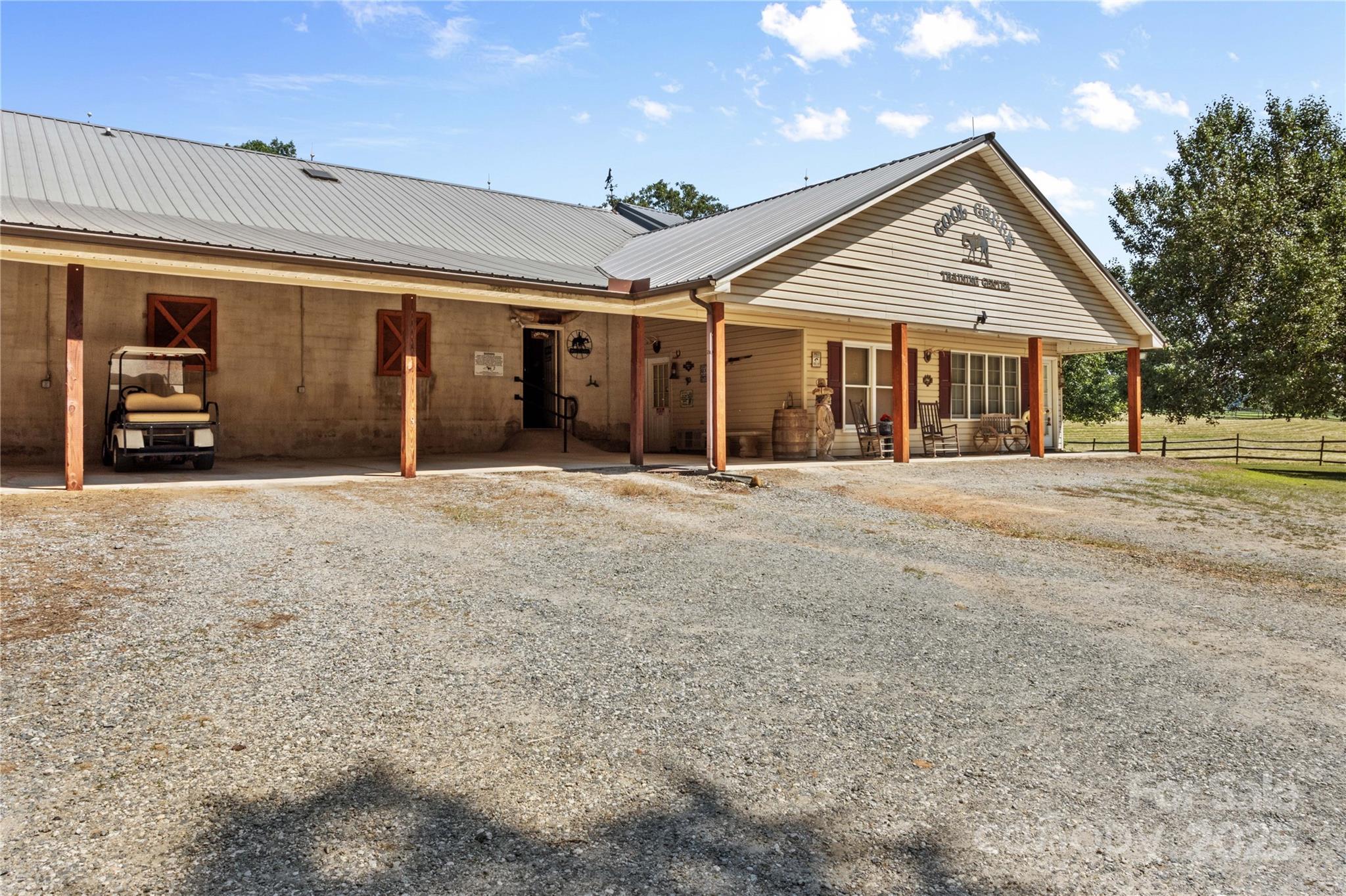 Through the stately gated entrance, you will discover a beautiful and accommodating equestrian farm (Cool Creek Training Center), complete with a charming home and trainers apartment above the barn. The main residence features a 3 bed, 2 bath floor plan with an open-concept kitchen that boasts granite countertops and a large island, perfect for entertaining. Adjacent to the kitchen is a sunroom that can serve multiple uses, w/ exterior door leading to a fenced backyard, ideal for pets. Additionally, the home offers a spacious 3-car garage and a large covered front porch. Outside, you will find a stunning 21-stall barn fully equipped with automatic waterers, a wash pit, a full bathroom, an indoor riding arena, overhead propane heaters, a grain silo, and a holding stock area. The barn also includes a trainer's apartment up, as well as a office and lounge area down. With pasture turnouts, a outdoor arena, and two large sheds for equipment/hay storage this farm truly has it all.