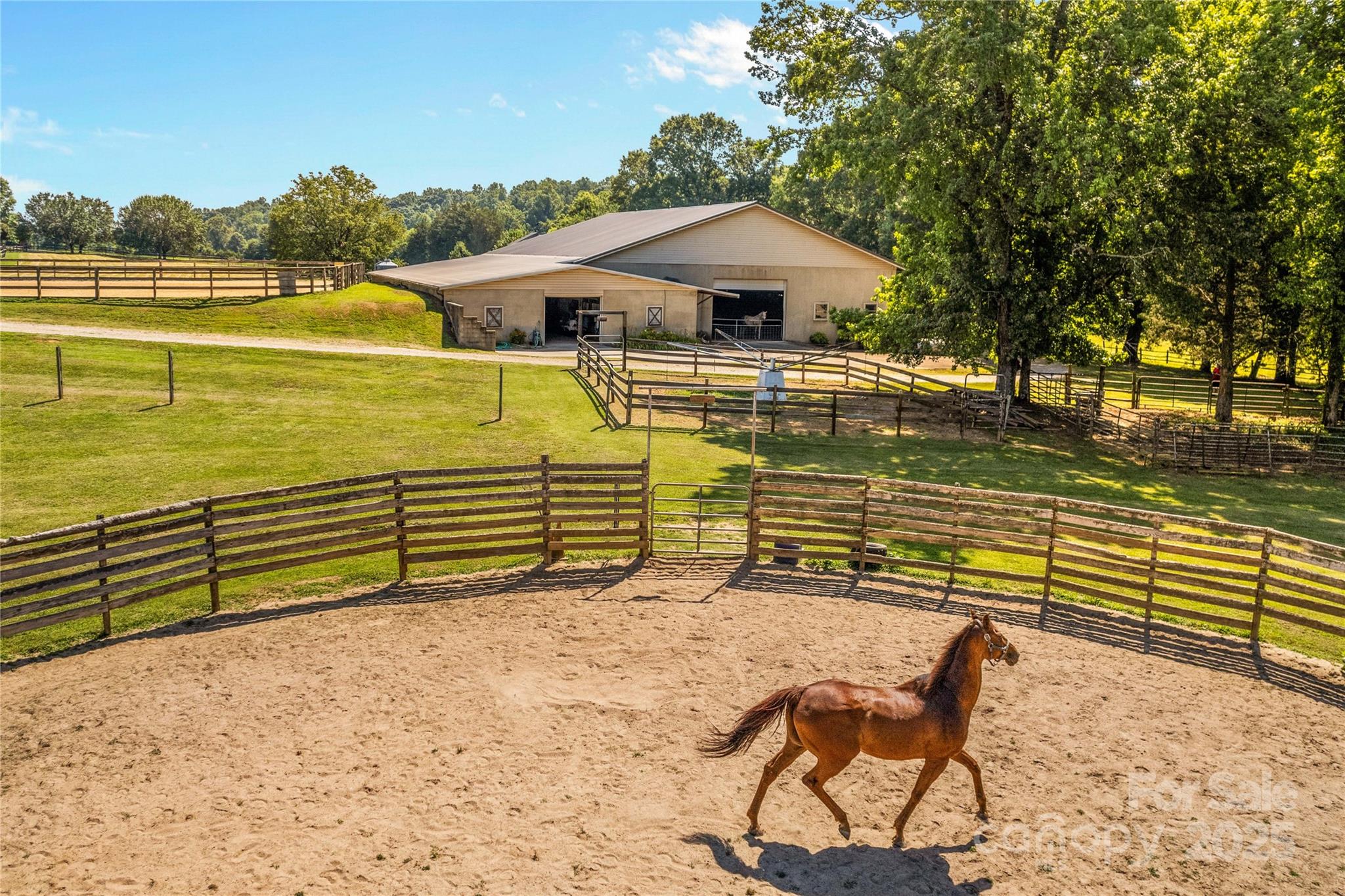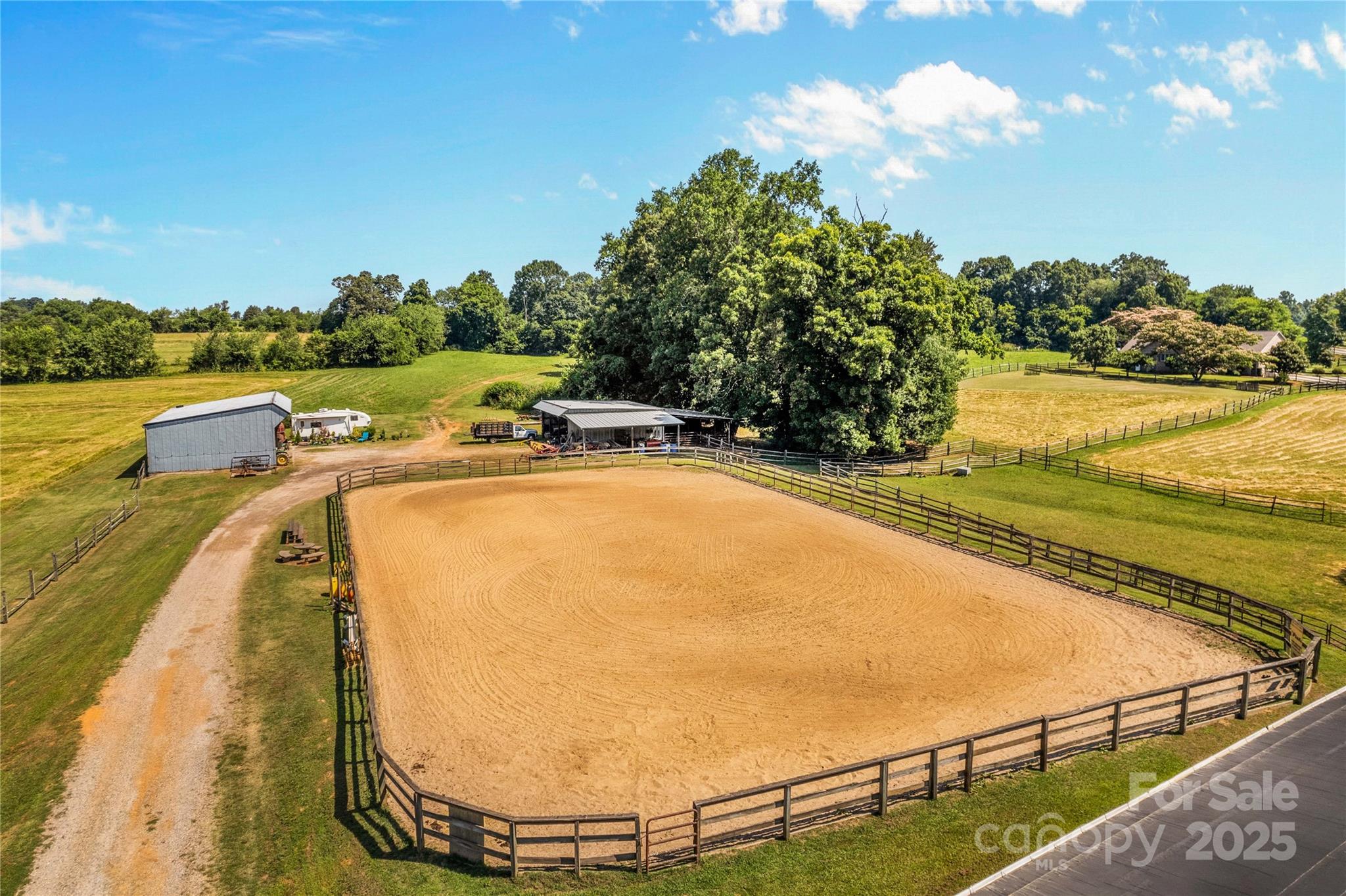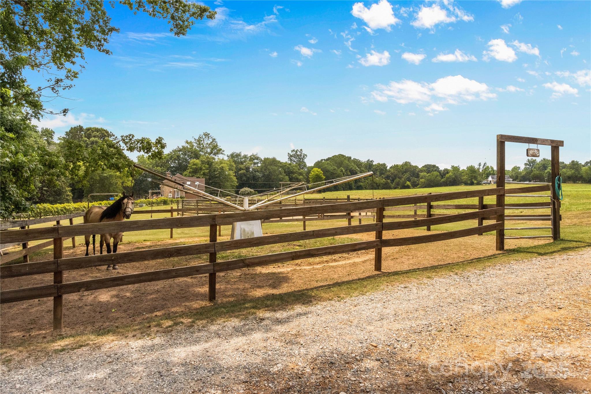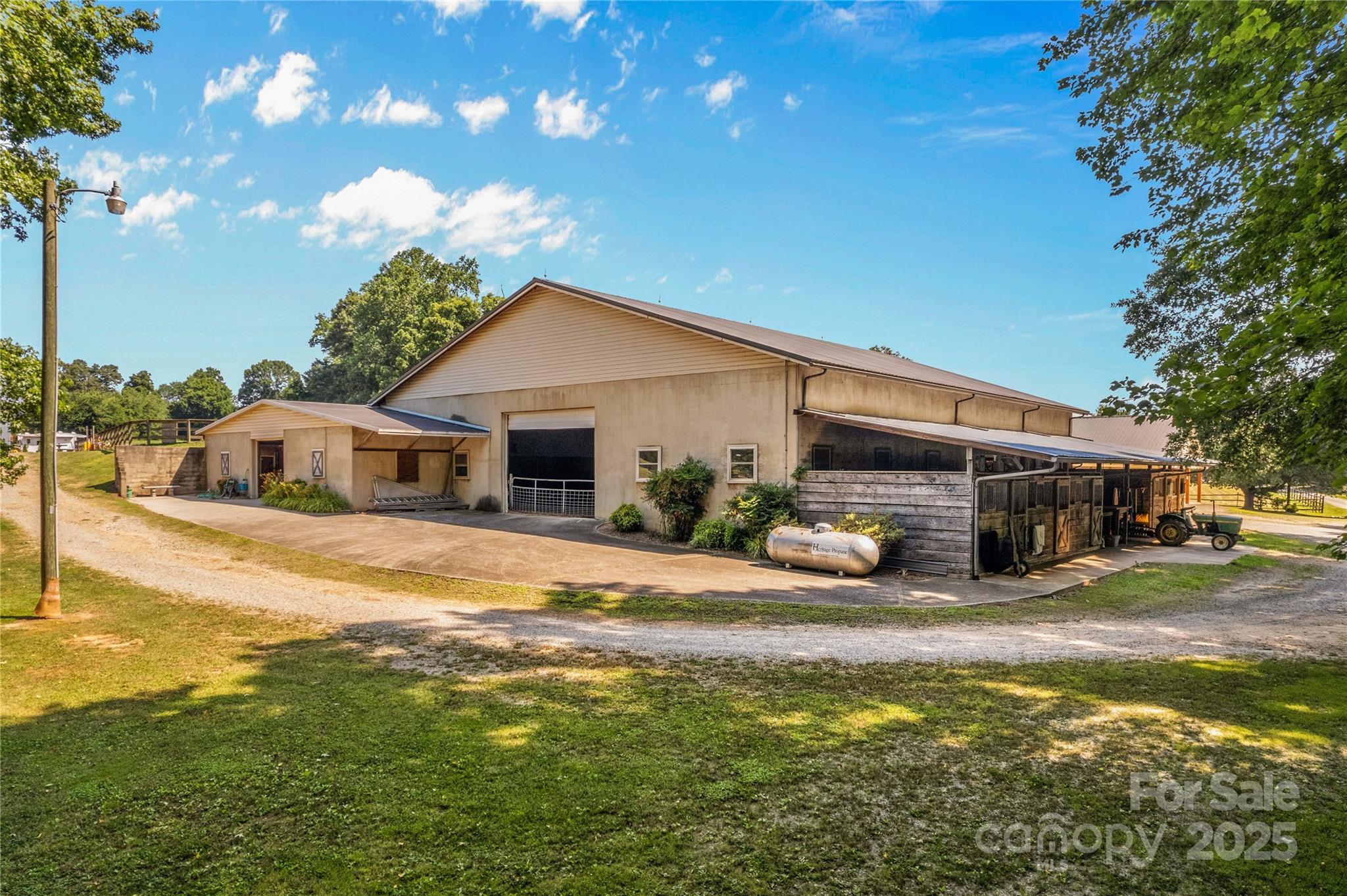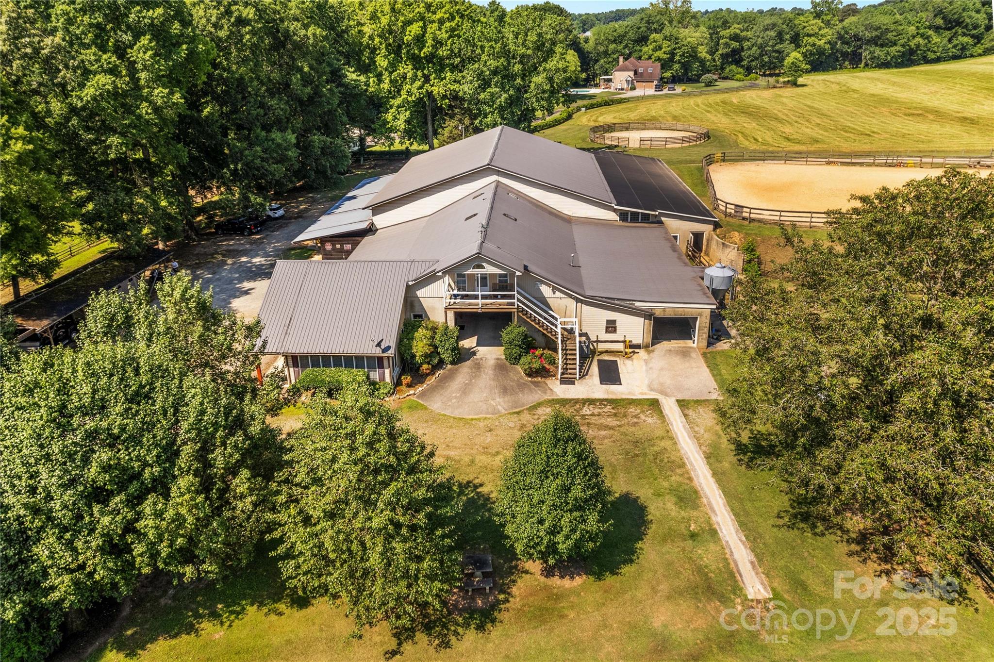 Through the stately gated entrance, you will discover a beautiful and accommodating equestrian farm (Cool Creek Training Center), complete with a charming home and trainers apartment above the barn. The main residence features a 3 bed, 2 bath floor plan with an open-concept kitchen that boasts granite countertops and a large island, perfect for entertaining. Adjacent to the kitchen is a sunroom that can serve multiple uses, w/ exterior door leading to a fenced backyard, ideal for pets. Additionally, the home offers a spacious 3-car garage and a large covered front porch. Outside, you will find a stunning 21-stall barn fully equipped with automatic waterers, a wash pit, a full bathroom, an indoor riding arena, overhead propane heaters, a grain silo, and a holding stock area. The barn also includes a trainer's apartment up, as well as a office and lounge area down. With pasture turnouts, a outdoor arena, and two large sheds for equipment/hay storage this farm truly has it all.
