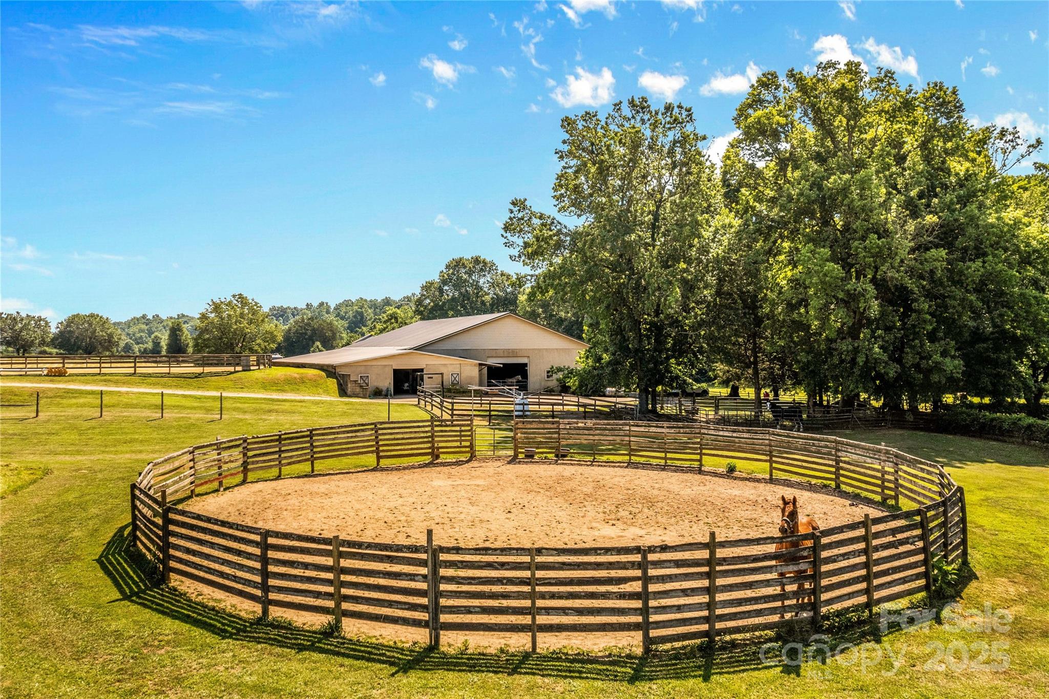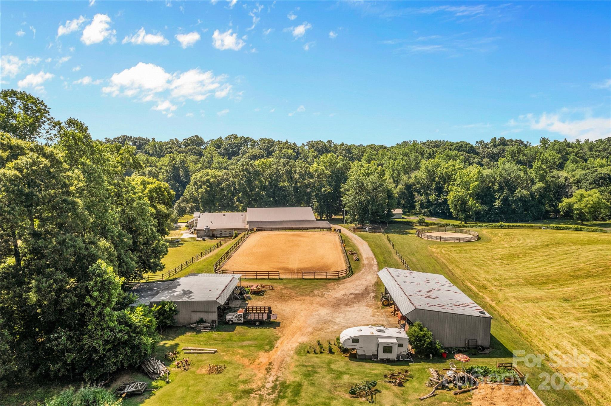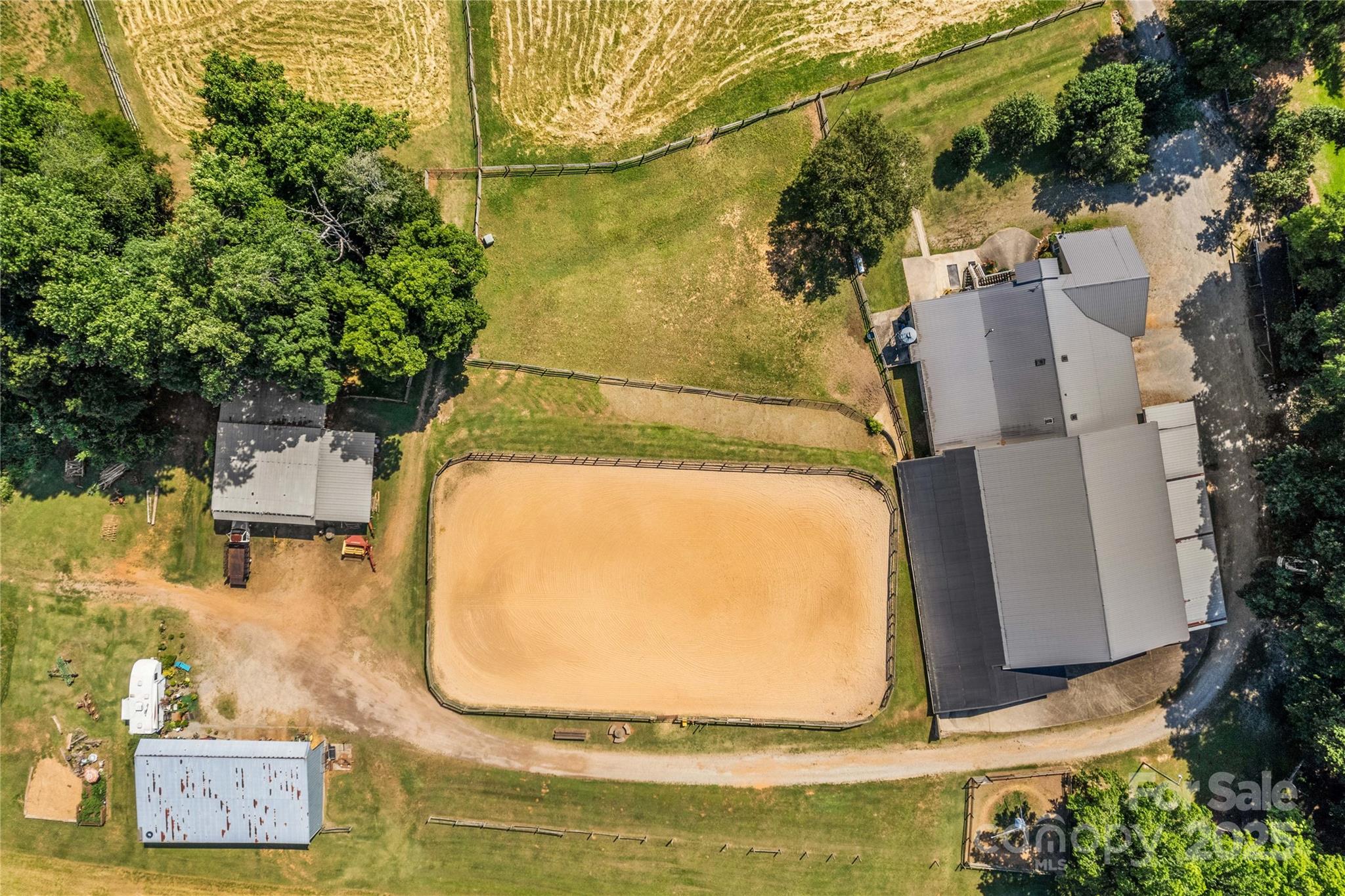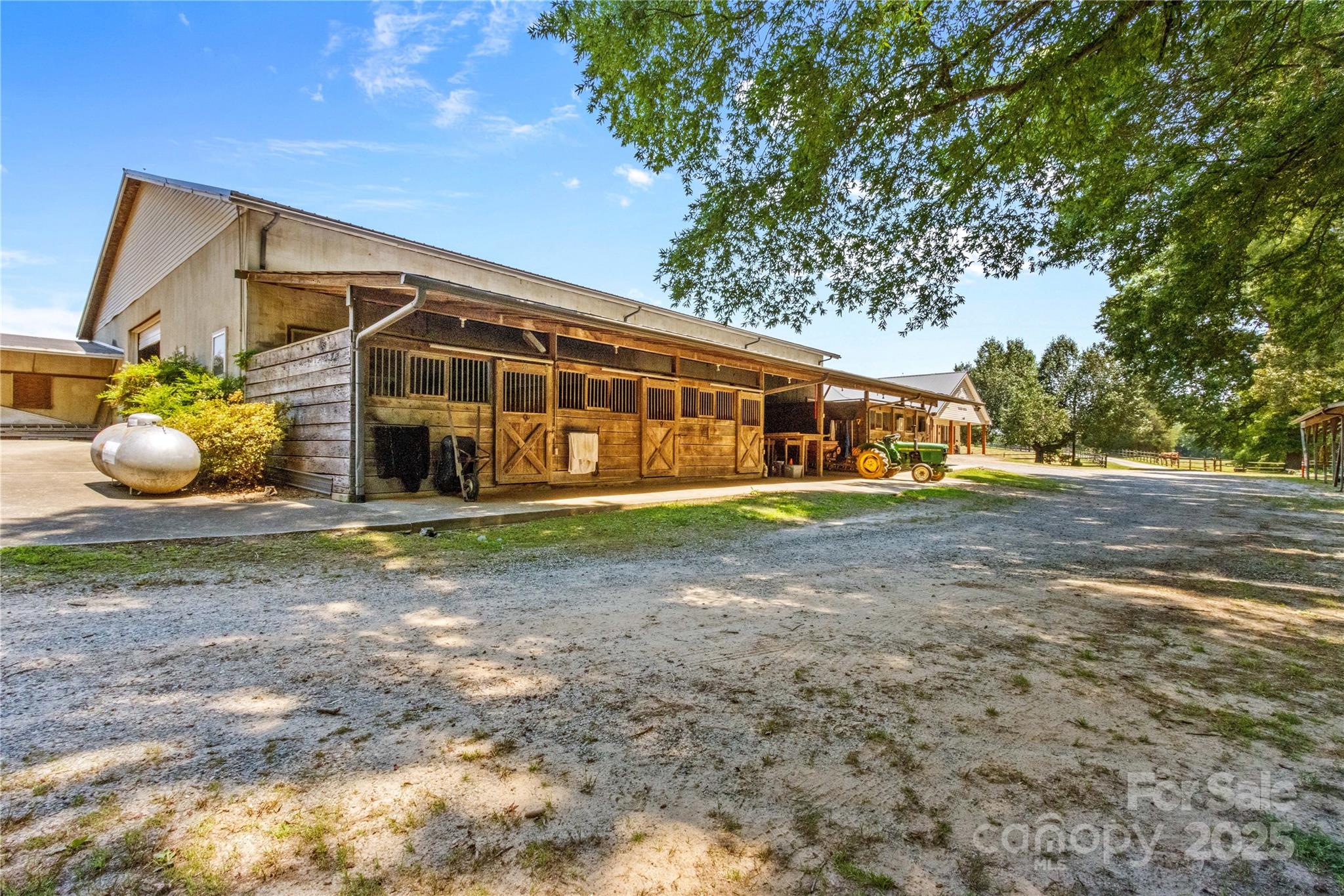 Through the stately gated entrance, you will discover a beautiful and accommodating equestrian farm (Cool Creek Training Center), complete with a charming home and trainers apartment above the barn. The main residence features a 3 bed, 2 bath floor plan with an open-concept kitchen that boasts granite countertops and a large island, perfect for entertaining. Adjacent to the kitchen is a sunroom that can serve multiple uses, w/ exterior door leading to a fenced backyard, ideal for pets. Additionally, the home offers a spacious 3-car garage and a large covered front porch. Outside, you will find a stunning 21-stall barn fully equipped with automatic waterers, a wash pit, a full bathroom, an indoor riding arena, overhead propane heaters, a grain silo, and a holding stock area. The barn also includes a trainer's apartment up, as well as a office and lounge area down. With pasture turnouts, a outdoor arena, and two large sheds for equipment/hay storage this farm truly has it all.
