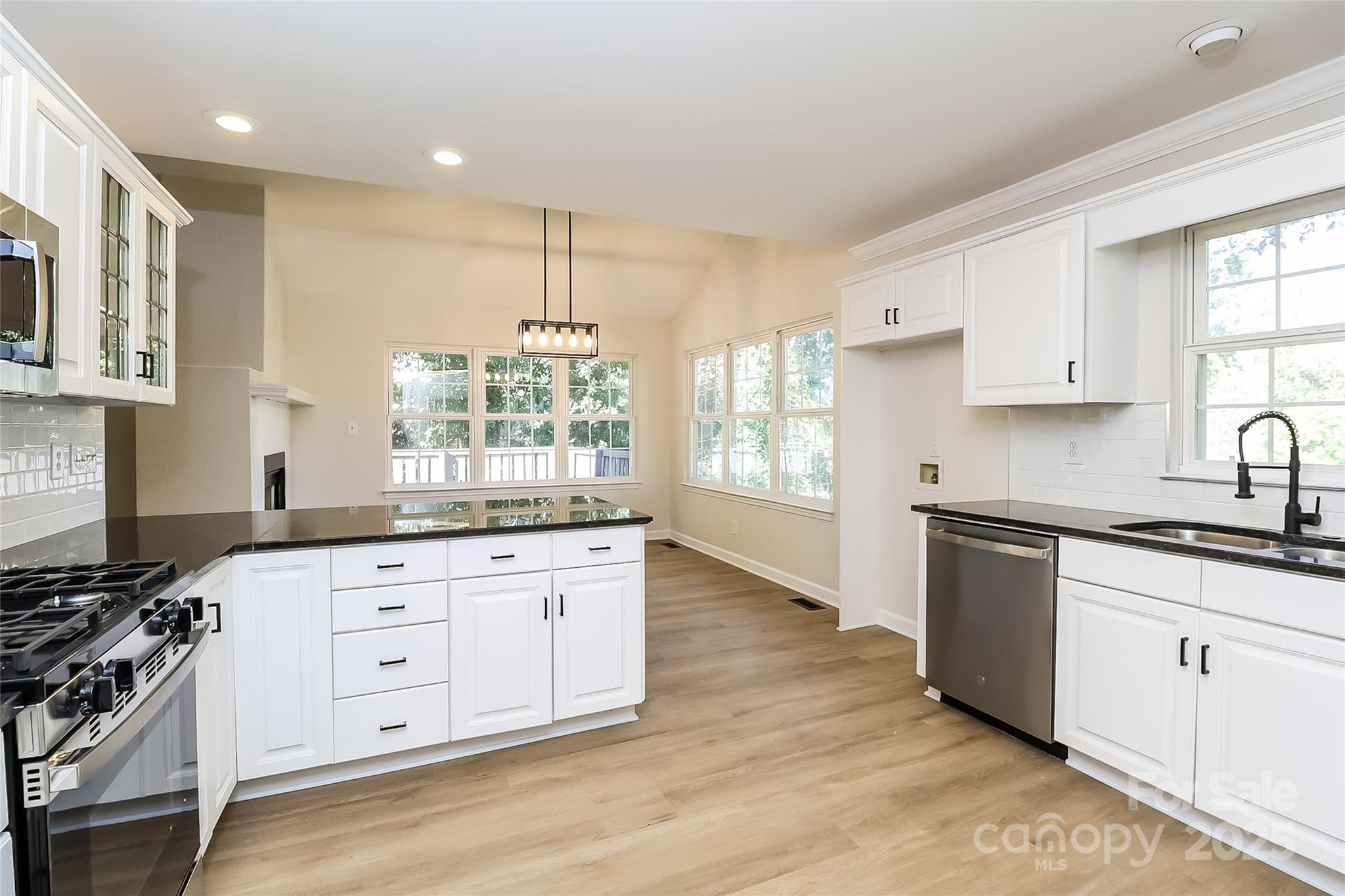 Beautifully updated 3-bedroom, 2-bath home with a den featuring fresh interior paint, new carpet, and LVP flooring. The kitchen offers painted cabinets, a subway tile backsplash, and a stainless steel appliance package. Enjoy vaulted ceilings, a double-sided fireplace between the family and dining rooms, and French doors opening to a spacious deck—perfect for entertaining!