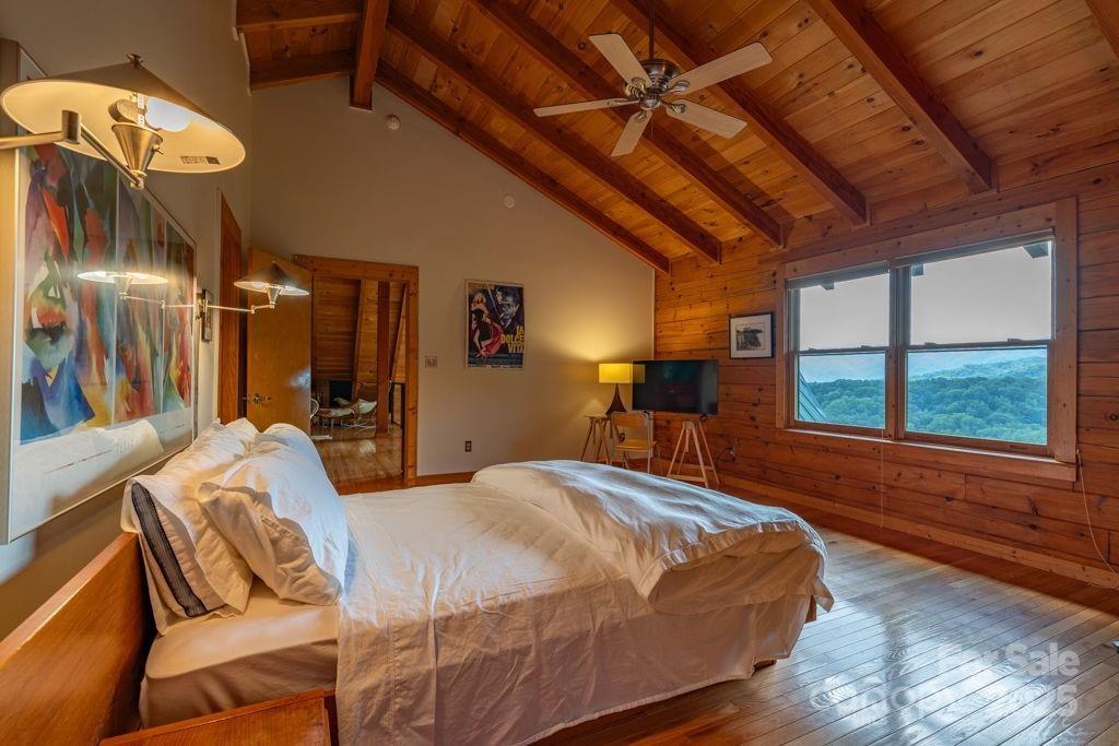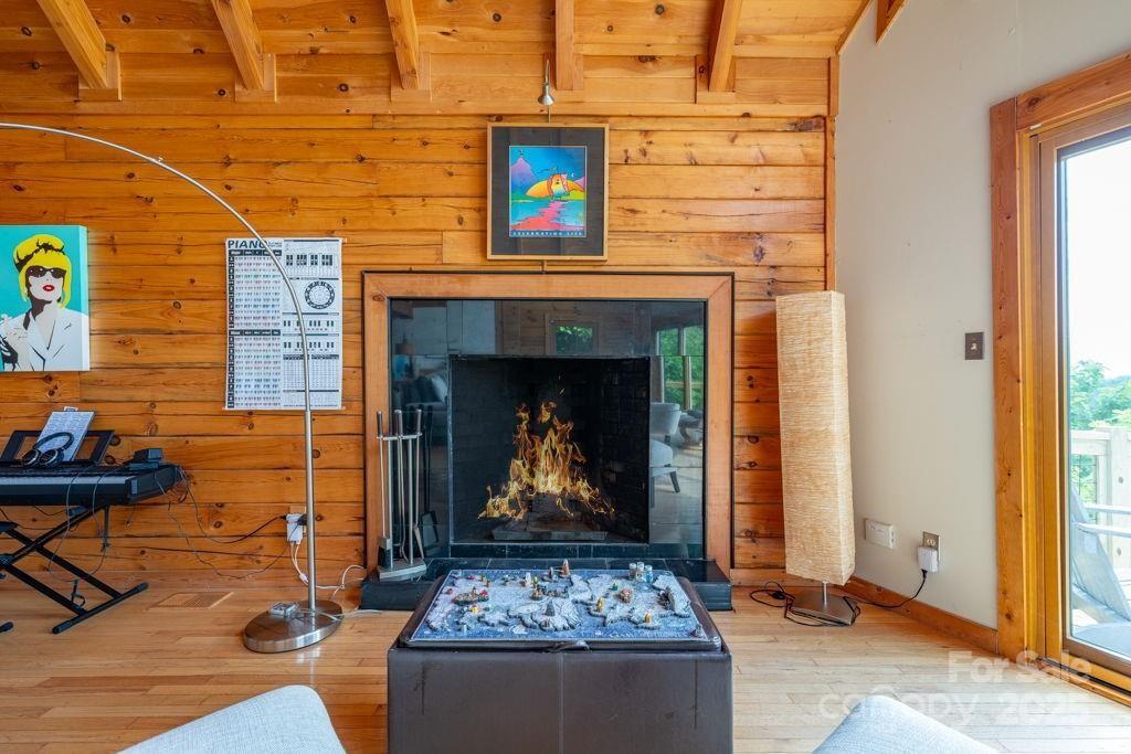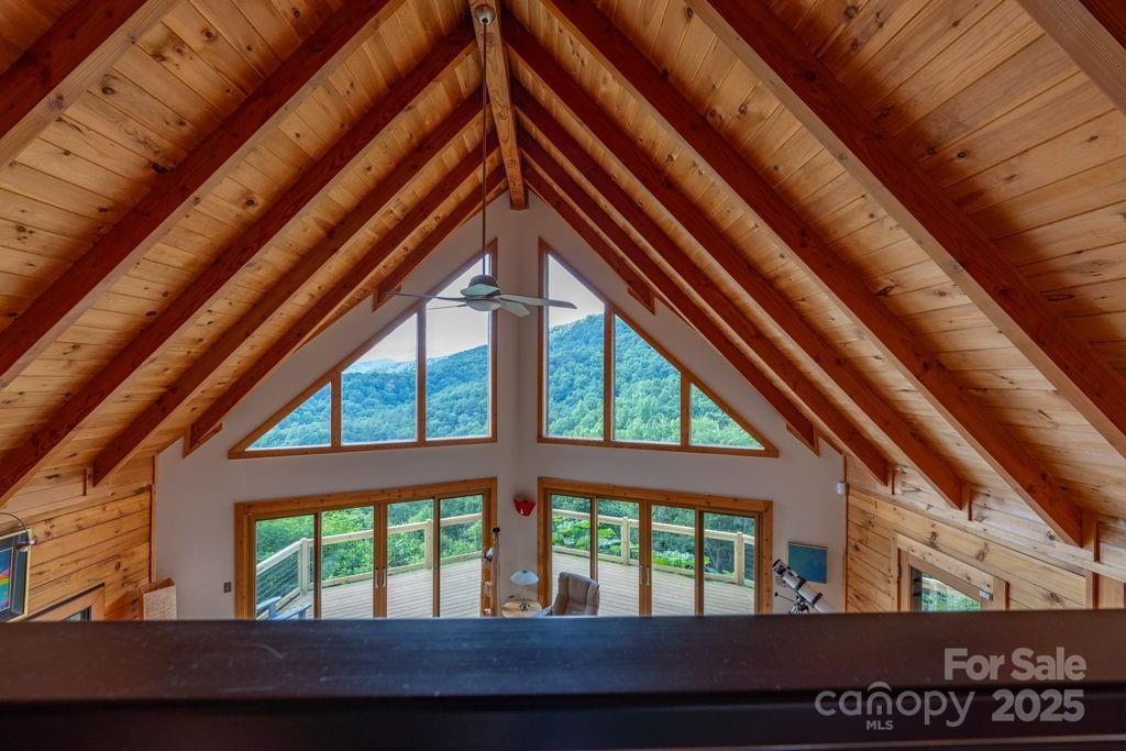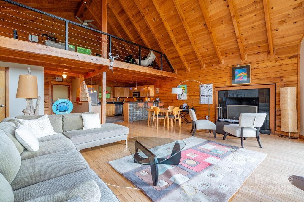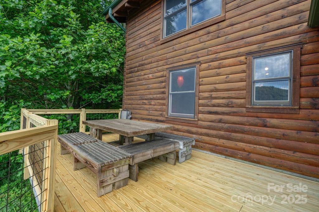 Charming mountain haven sheltered by an amazing canopy of trees, back of home opens to the experience of the soaring gift of an ocean of sky at your feet. Breath stealing views defying description, stretching for miles of mountains. Ideally situated on 10 gorgeous ac bordering Pisgah National Forest. Sweetly secluded, nestled in this natural setting, only a short drive (5mi) to shopping, restaurants, & more in beautiful Blowing Rock. One & a half story log home w/basement, open & airy plan w/lots of natural light. Cathedral ceiling frames glorious view from wall of windows. Relax in the hot tub as you are awed & inspired by the majesty of your surroundings. Hang out by the the fire pit, enjoying the sights & sounds of nature surrounding you. All 3 levels have sleeping,& living areas & full bath. Home has 3 bd plus add'l sleeping areas & sleeps 8-10; great potential for income producing property (Air BNB or other short term rental). Upper deck rebuilt June 2024. Sold mostly furnished.