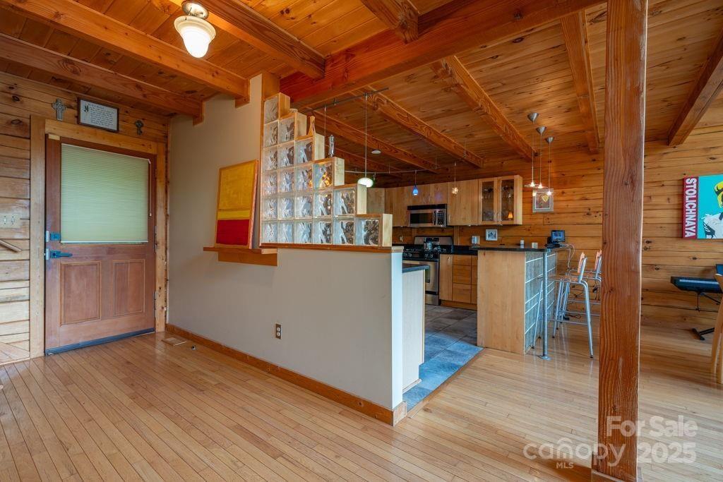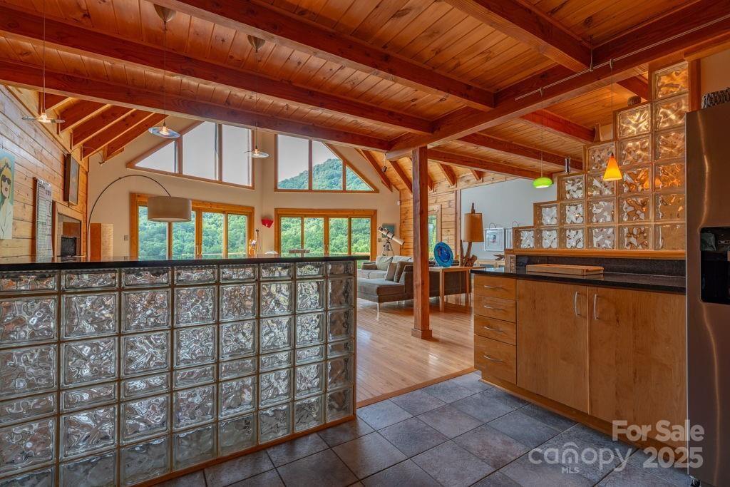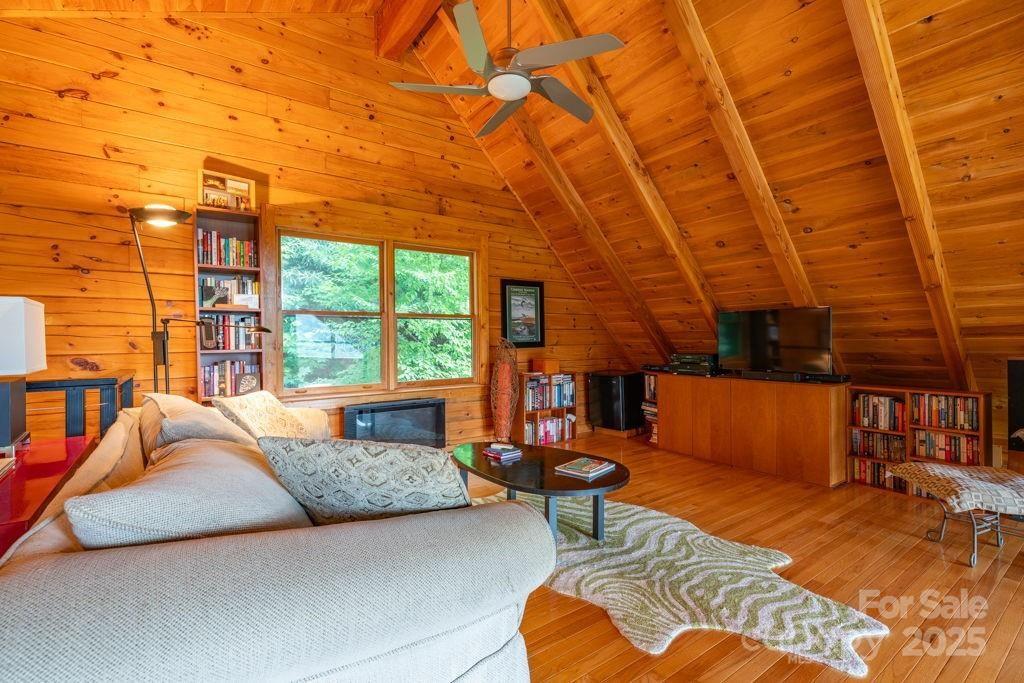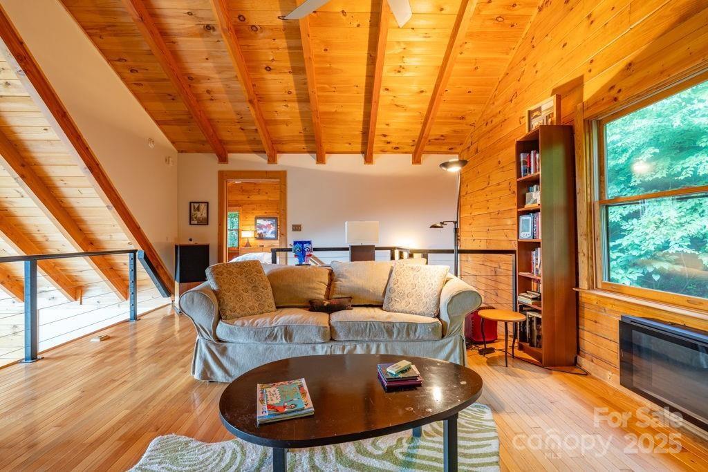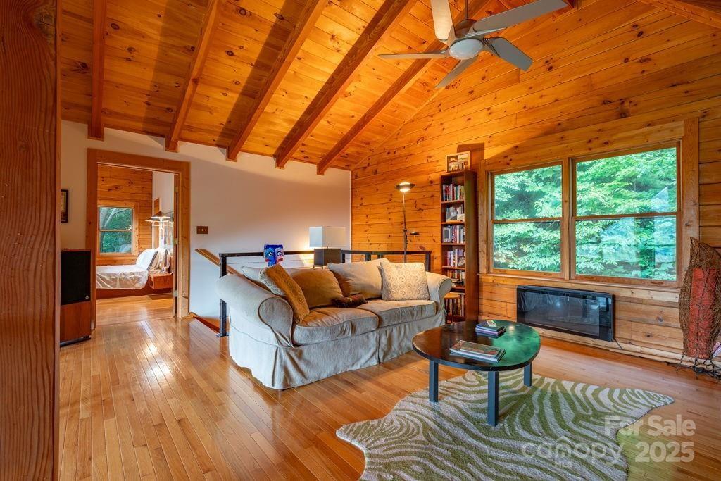 Charming mountain haven sheltered by an amazing canopy of trees, back of home opens to the experience of the soaring gift of an ocean of sky at your feet. Breath stealing views defying description, stretching for miles of mountains. Ideally situated on 10 gorgeous ac bordering Pisgah National Forest. Sweetly secluded, nestled in this natural setting, only a short drive (5mi) to shopping, restaurants, & more in beautiful Blowing Rock. One & a half story log home w/basement, open & airy plan w/lots of natural light. Cathedral ceiling frames glorious view from wall of windows. Relax in the hot tub as you are awed & inspired by the majesty of your surroundings. Hang out by the the fire pit, enjoying the sights & sounds of nature surrounding you. All 3 levels have sleeping,& living areas & full bath. Home has 3 bd plus add'l sleeping areas & sleeps 8-10; great potential for income producing property (Air BNB or other short term rental). Upper deck rebuilt June 2024. Sold mostly furnished.
