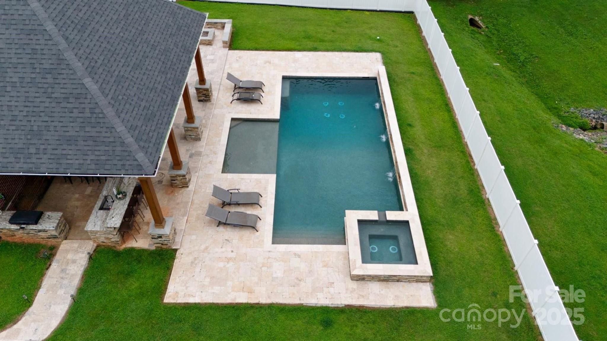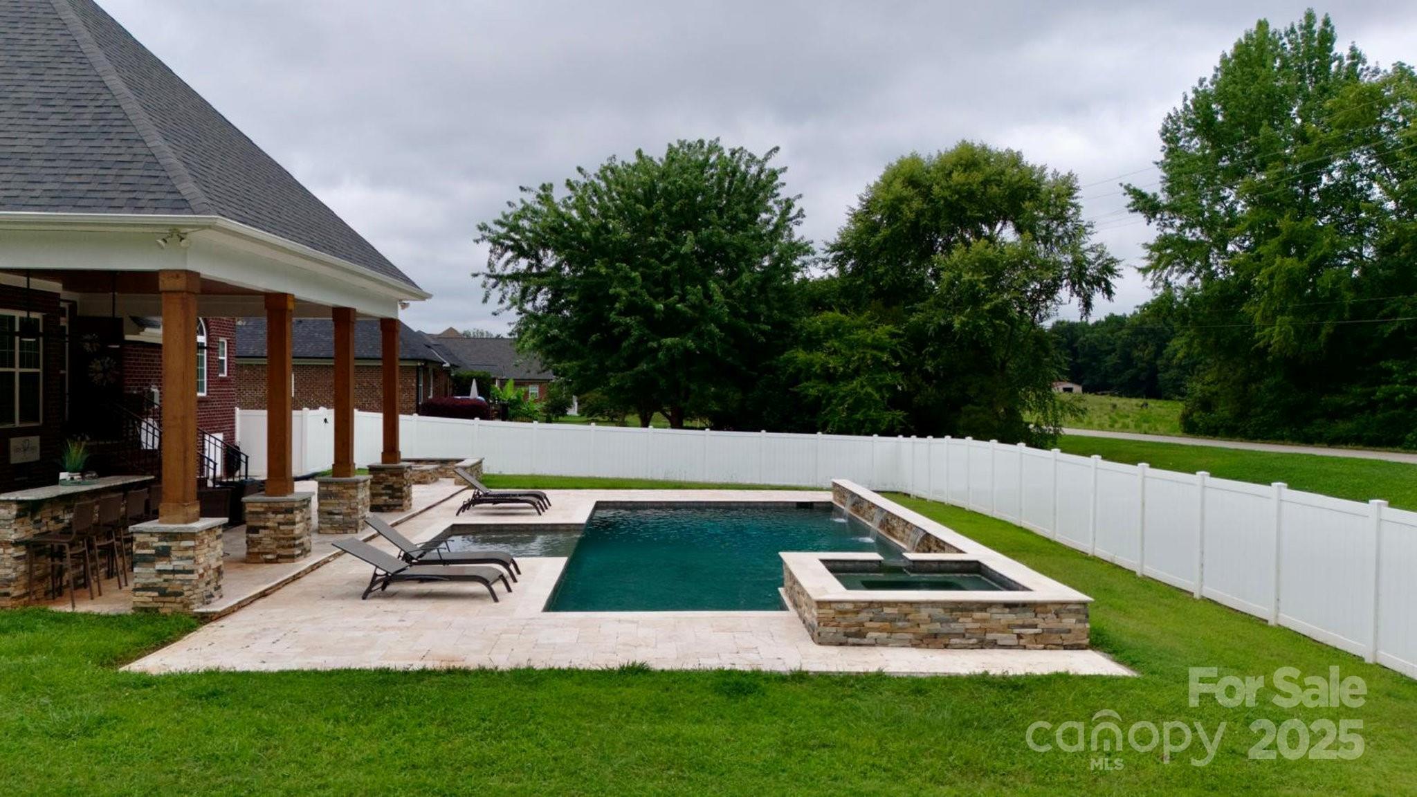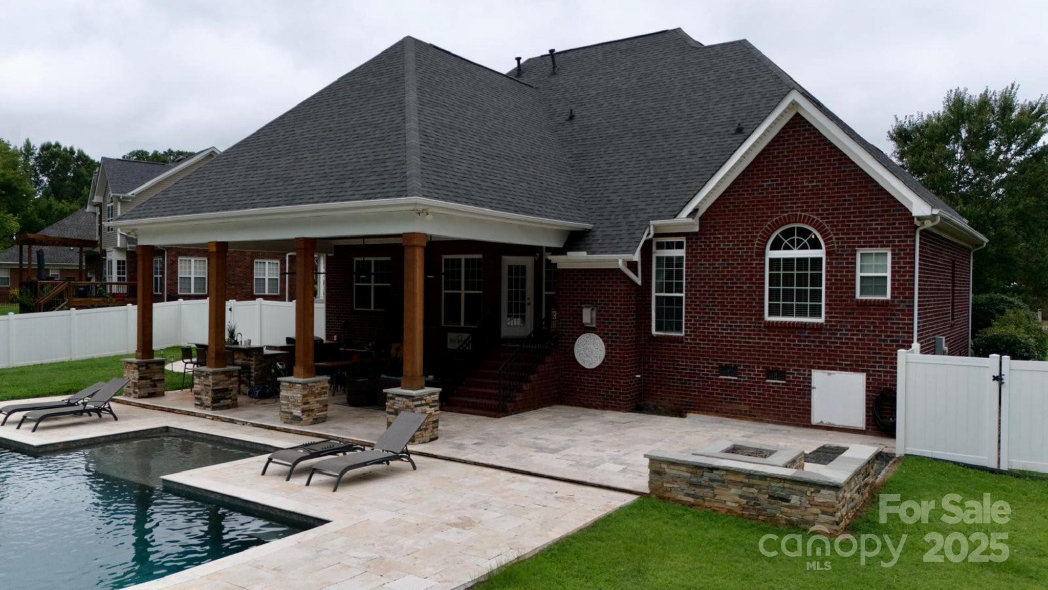 SCHEDULE YOUR TOUR TODAY!!! Backyard paradise! Feel like you're on vacation every day! This gorgeous all-brick custom home, located on a peaceful cul de sac, is ready for you to call home! This 4-bedroom, 2-story home features a master on the main, a living room with a cozy fireplace, an open concept kitchen with granite countertops and stainless steel appliances, a large dining room, a guest suite with a full bath, and a laundry room with a wet sink. The upstairs includes two bedrooms, a bonus/bedroom, a loft, a full bathroom and plenty of storage! However, the outside is where you will want to be! Stunning travertine tiles encircle a pool that is sure to wow, featuring breathtaking water cascades, a swim platform and hot tub! Did I mention it's heated?! Yet, the entertainment does not end there! The walk-up bar and outdoor built-in grill beneath the custom-made covered patio will be the highlight of the party!