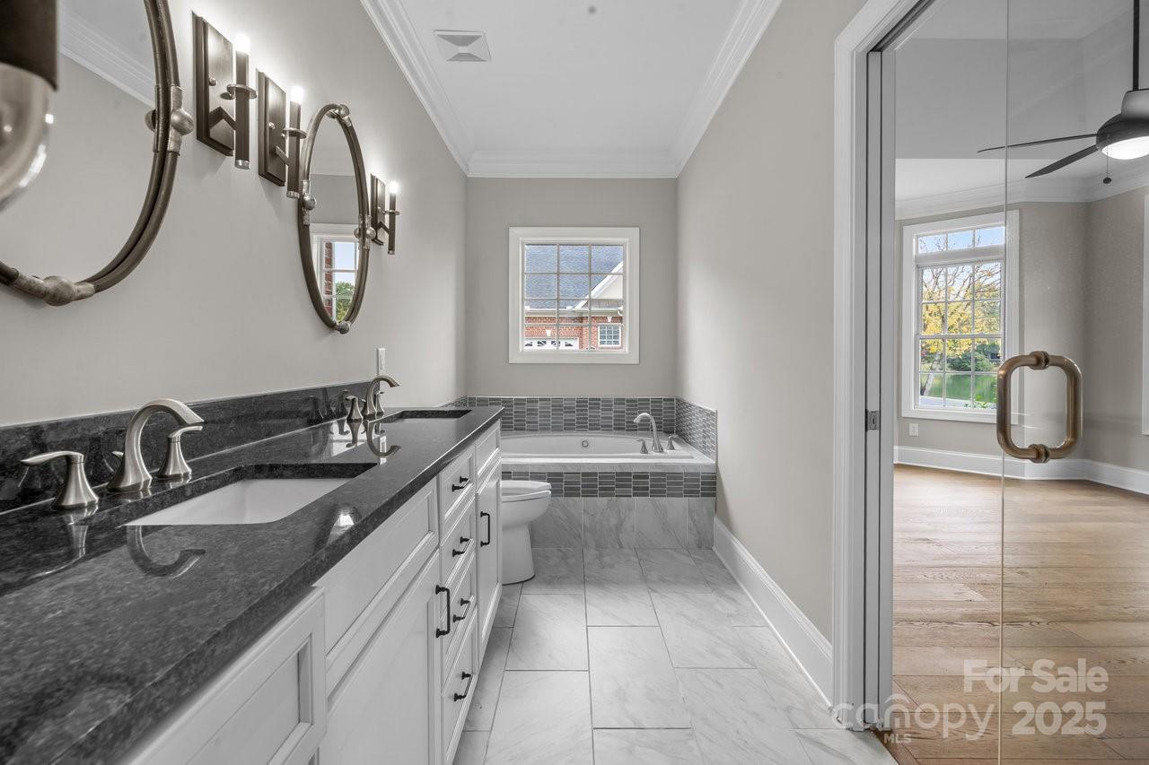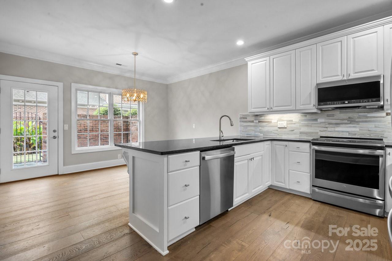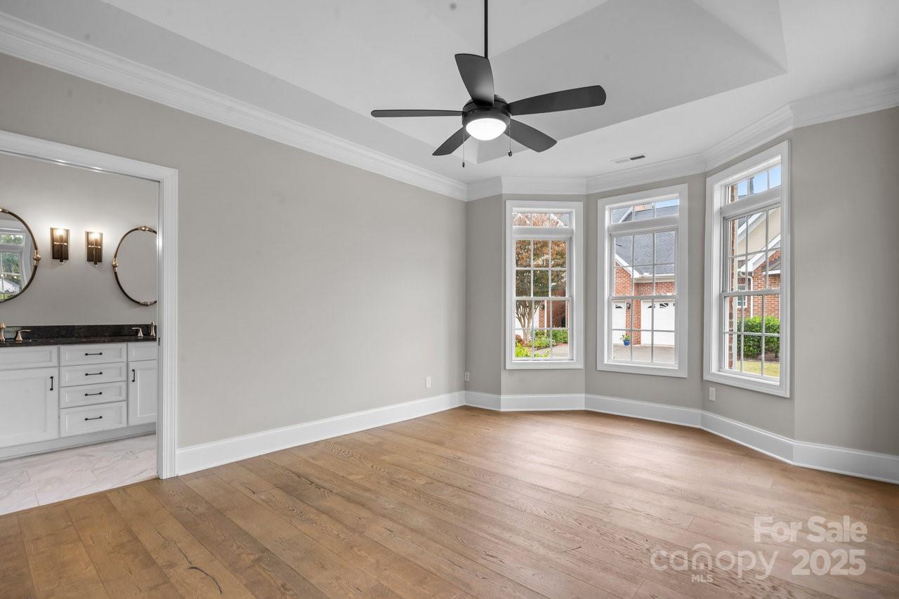Stunning full brick, end-unit townhome in the gated Beacon Knoll Villas offering spectacular views of the private 10-acre lake! Open floorplan, beautiful moldings, wide hardwood floors, 9' ceilings, fresh paint and new carpeting. Open Kitchen with white cabinetry, granite countertops, brand new appliances! 3 bedrooms, 3 full baths. Large Primary Bedroom on main level, plus Guest Bedroom or Office and Full Bath on the main. Second living quarters option upstairs with spacious Bedroom, Ensuite Bath, plus a separate Living/Office/Media/Flex space w/direct access to Full Bath. 2 Car freshly painted garage w/storage shelves / storage room. Gated community featuring pool, tennis courts, private lake, playground.