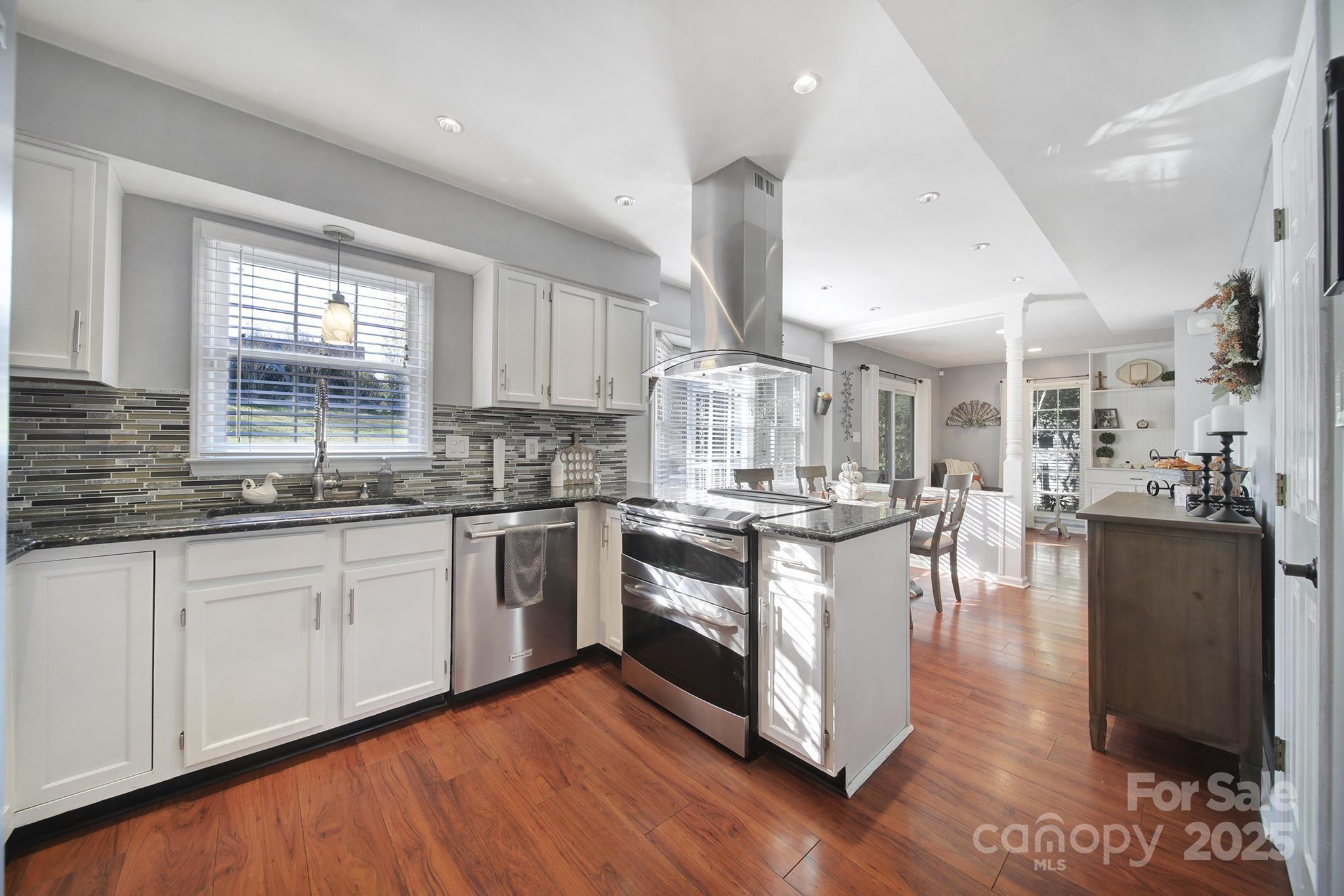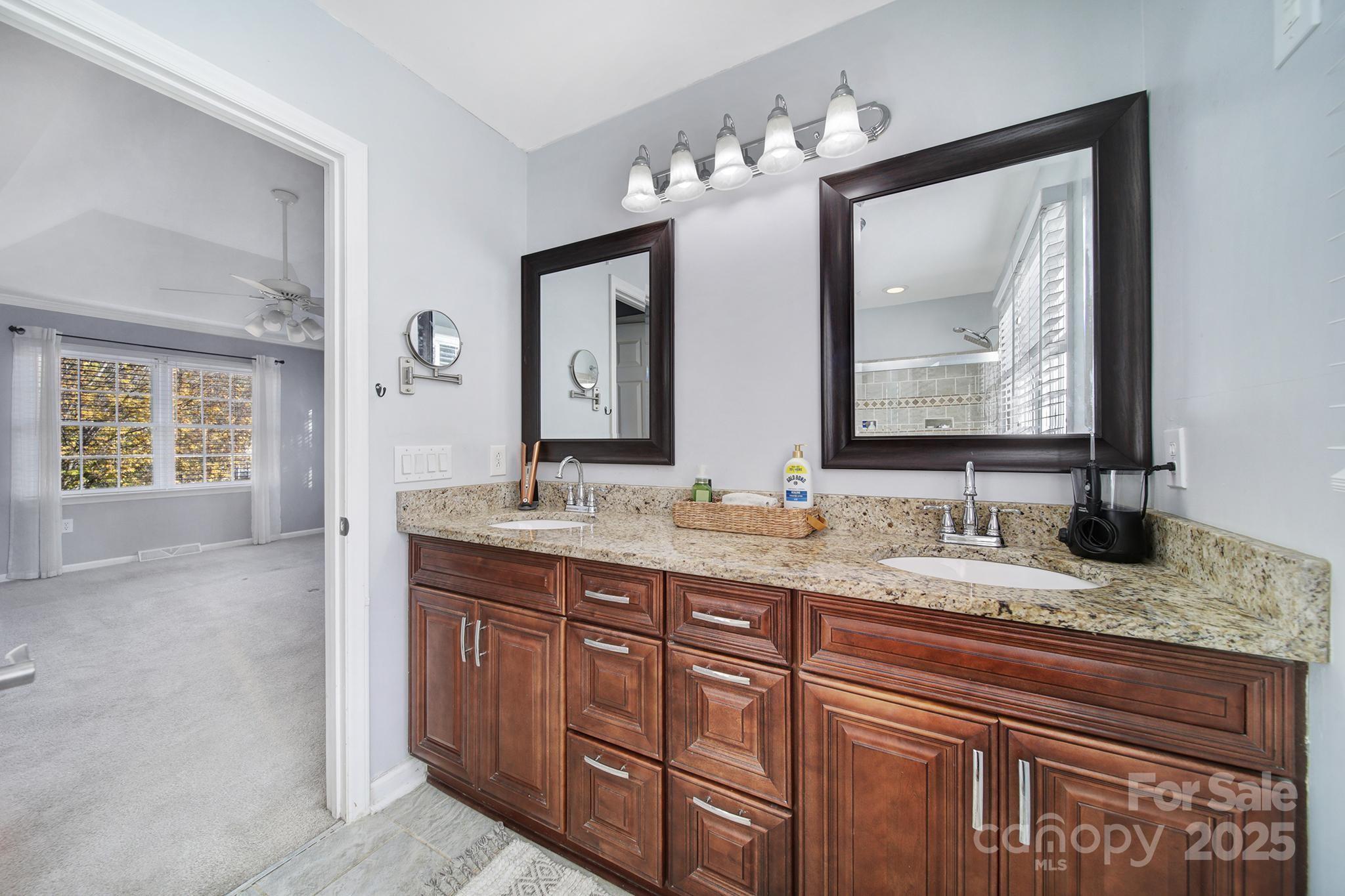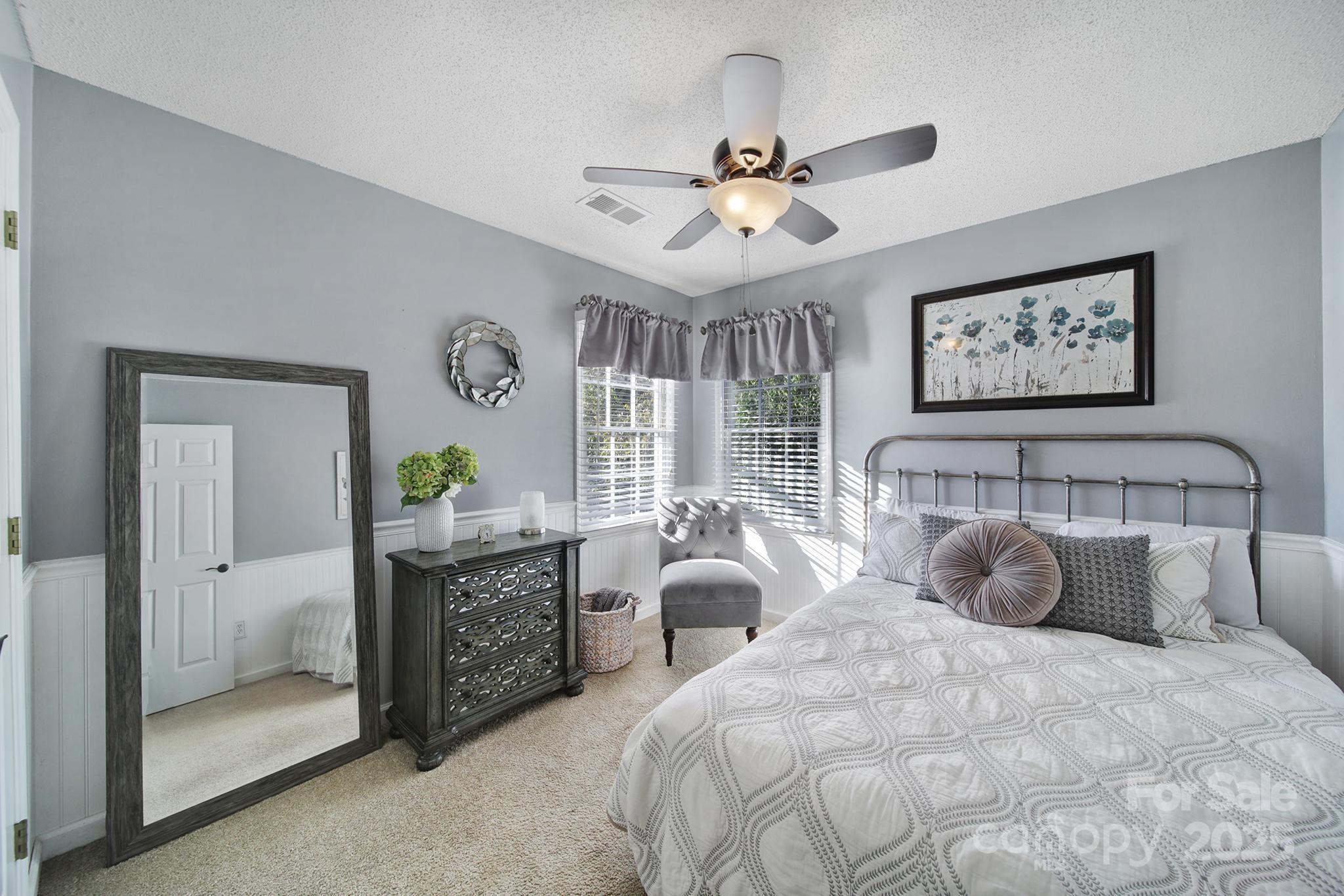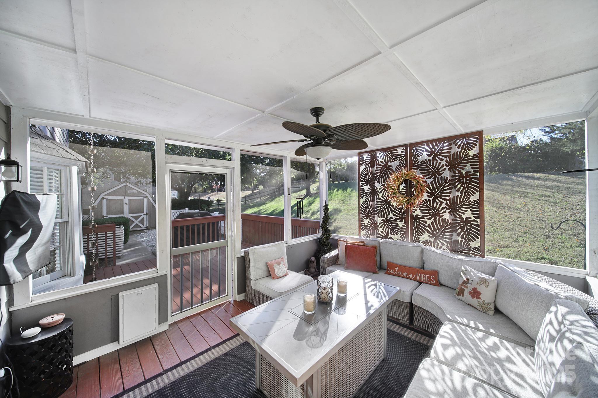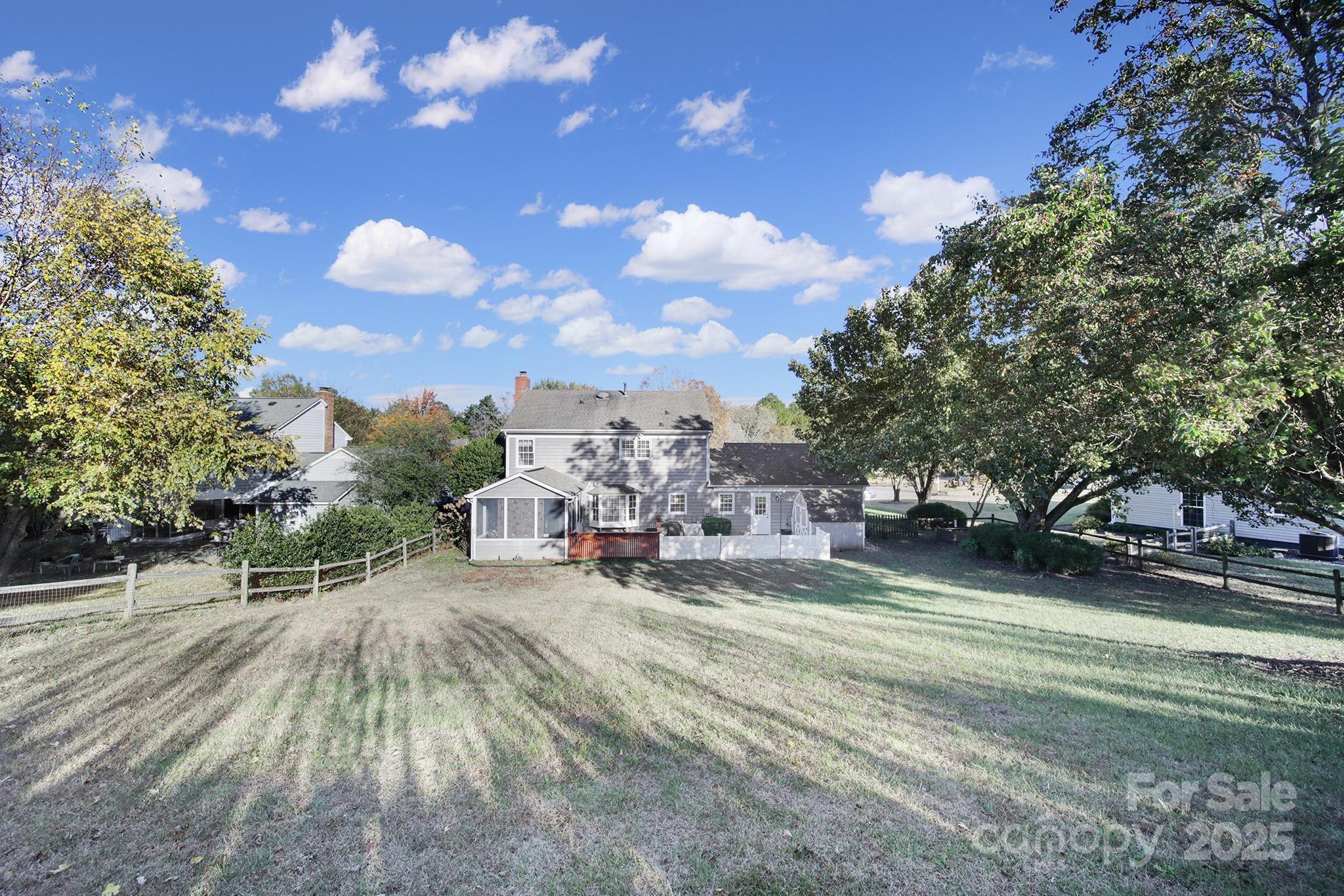 Welcome to this beautiful 3-bedroom, 2.5-bath home perfectly situated on over a third of an acre in the highly desirable Raeburn neighborhood of Ballantyne. Step inside to a bright and welcoming layout featuring wide plank flooring throughout the main level and a stylish kitchen with white cabinetry, granite countertops, and stainless steel appliances—ideal for cooking and entertaining. Relax on the screened porch overlooking the fenced backyard, perfect for pets or gatherings. Upstairs, you’ll find three spacious bedrooms, including a serene primary suite with an updated bath featuring granite countertops and a custom tile shower. The oversized garage with epoxy floors offers ample storage or hobby space, plus there’s an additional backyard shed for convenience. Bonus: This home sits on a quiet cul-de-sac! Enjoy neighborhood amenities including a pool, tennis courts, playground, and recreation area. Conveniently located near Stonecrest, Ballantyne Bowl, Blakeney shops, restaurants, grocery stores, and I-485 — everything you need is just minutes away. Ring camera and ring security on all windows convey.