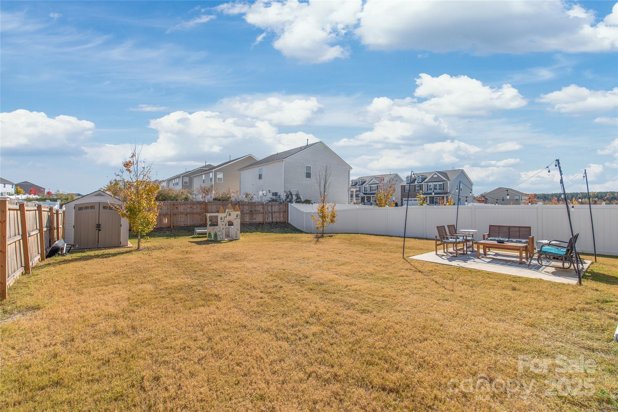 Welcome home to Nolen Farm, one of Gastonia’s most sought-after neighborhoods! This nearly new 4-bedroom, 2.5-bath home offers the perfect blend of style, comfort, and convenience. The rocking chair front porch is so welcoming. The open-concept main level features a bright kitchen with stone countertops, tiled backsplash, stainless steel appliances, and a gas range. Beautiful flooring throughout the main level. The spacious living room has a cozy fireplace. You will love the charming play area under the stairs, featuring a split door, where kids can enjoy a magical space. Upstairs, enjoy a spacious primary suite with vaulted ceilings, a walk-in closet, and a private bath, as well as three additional bedrooms and laundry facilities for easy living. Outside, relax on one of the two inviting patios overlooking a large, fenced backyard—ideal for relaxing or entertaining. Fantastic community amenities include a clubhouse, pool, fitness center, playground, game courts, and walking trails. One community park is located right across the street and features a playground and sand volleyball courts. Easy access to Charlotte and Lake Wylie. This home is move-in ready, it's better than NEW!