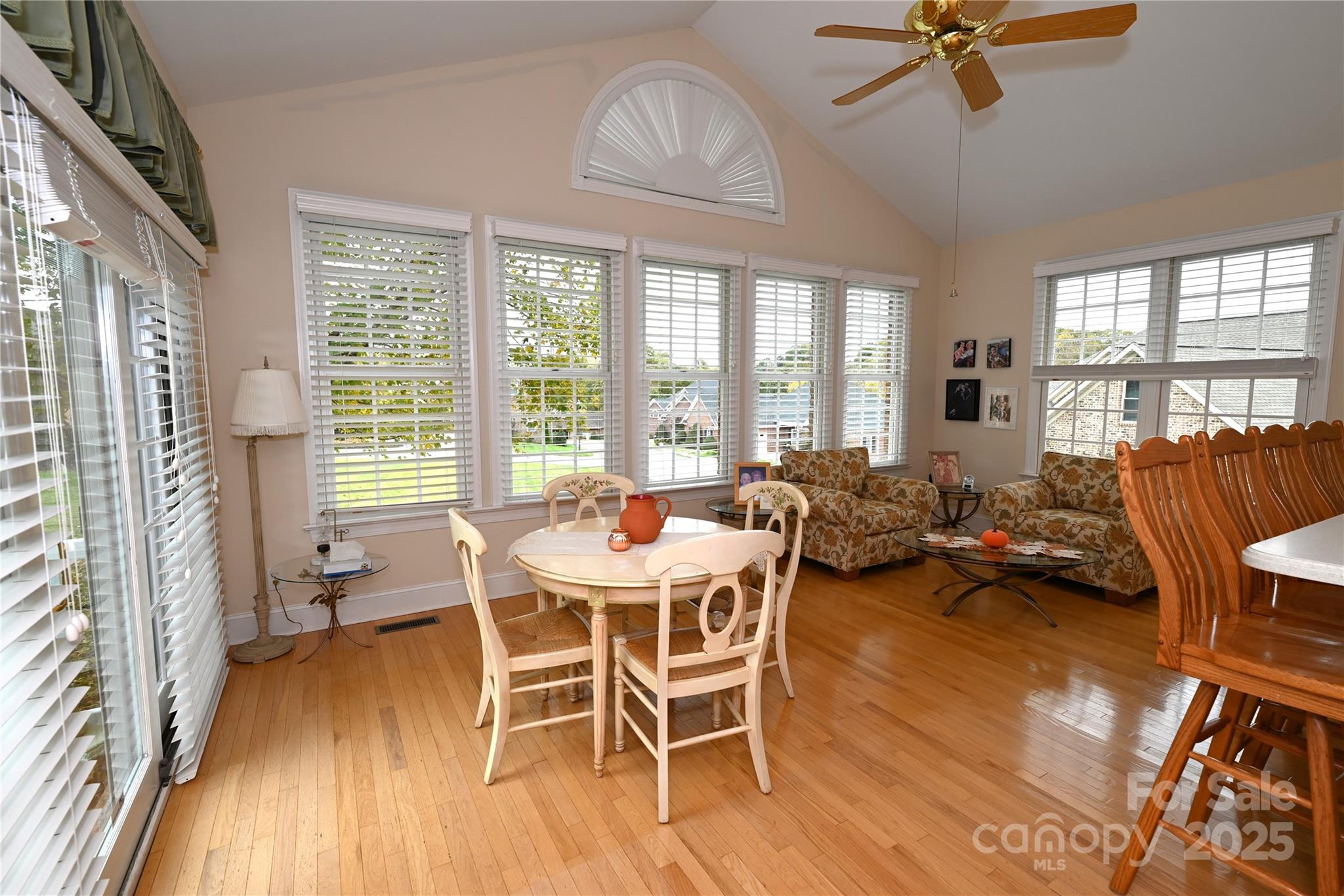 Enjoy a relaxed, maintenance free lifestyle in this beautiful home located in the desirable Garden Home Section of Rock Barn Golf and Spa. Perfectly positioned across from the driving range and chipping green, this residence is just a short walk to the fitness center and all of Rock Barn's world-class amenities! This three bedroom, two and a half bath home showcases hardwood floors, elegant crown molding, and stunning vaulted and tray ceilings. The spacious, enclosed sunroom is open to the kitchen, which offers the perfect spot to enjoy your morning coffee or unwind with a good book. The primary suite features a generous layout with dual sink vanities, glass enclosed large tiled shower and spacious walk in closet. A split bedroom floor plan provides two additional bedrooms and a full bath on the opposite side of the home, ensuring comfort and privacy for guests. A half-bath conveniently serves the main living and dining areas. The two car garage offers ample space for vehicles plus a golf cart, making it easy to enjoy everything Rock Barn has to offer! Homes rarely come on the market in this section, if you desire ease and comfort, this is your opportunity.