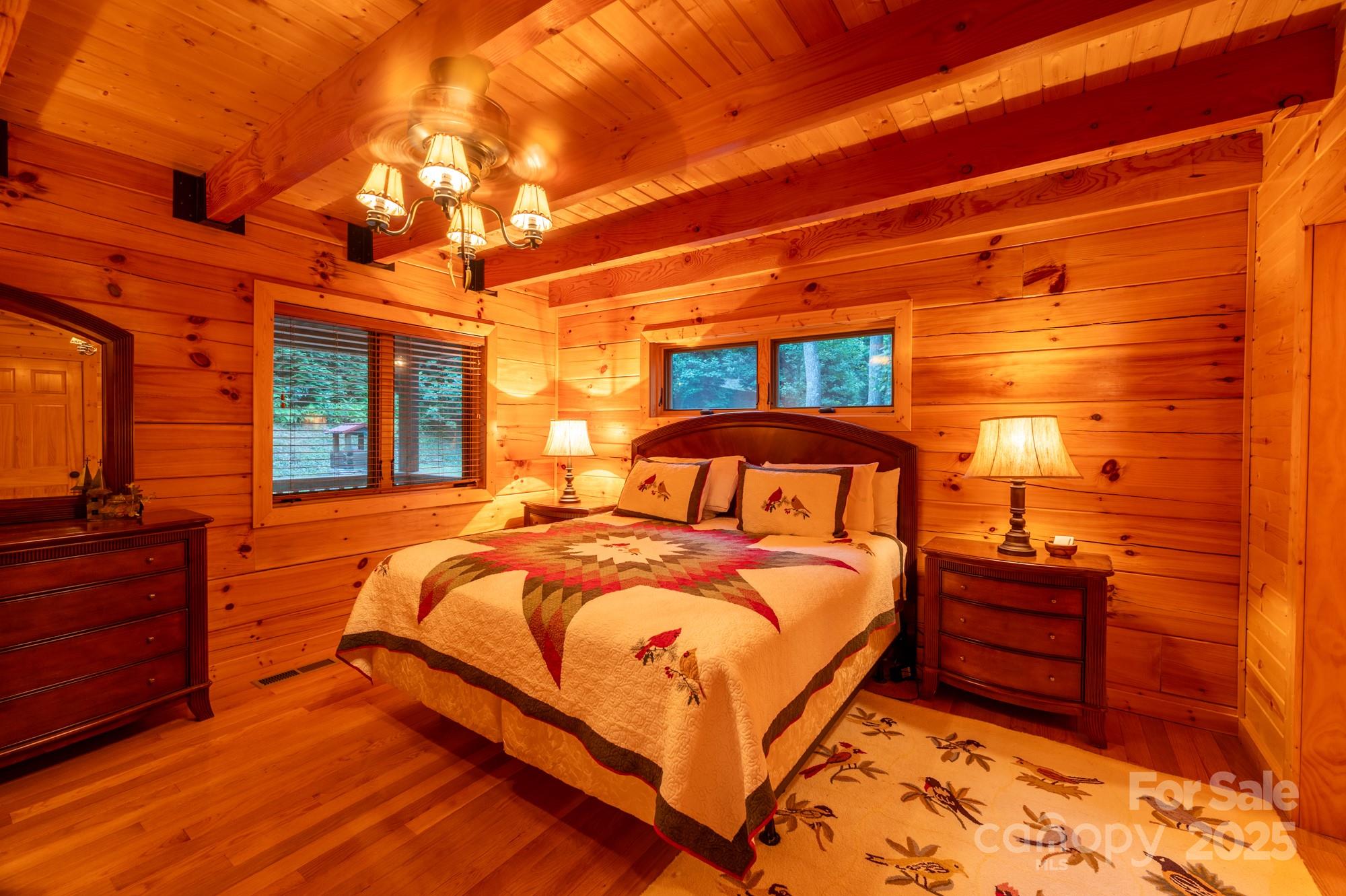 3BR/3BA - Custom Log cabin on 2.9 Acres in Boone! This cabin is absolutely immaculate - one owner, never been rented. Peaceful, end of the road privacy surrounded by woods. Once inside this cabin you'll fall in love with the massive cathedral ceilings and lots of windows. The craftsmanship and overall quality of this home is on full display the minute you walk in the front door. The primary bedroom and bath are on the main level as well as the laundry room and half bath. There are two bedrooms upstairs as well as a full bath as well as a gorgeous loft. On the lower level you have lots of additional space and extra rooms for den, sleeping, workout room, you name it as well as a full bath. The decks on this house are plentiful - large covered deck on the front of the home and on the back you have 2/3 screen in porch and 1/3 open for grilling ,etc. Once you step foot on the back patio you'll feel instantly relaxed and you'll be able to take in the mountain air. Come take a look at this cabin soon before it's gone!