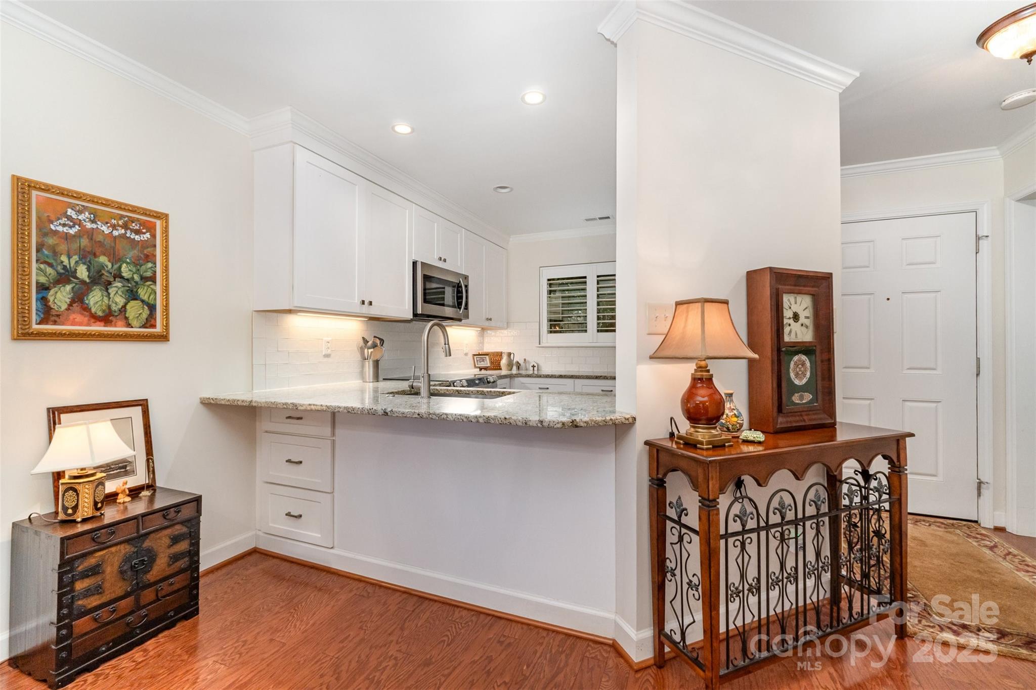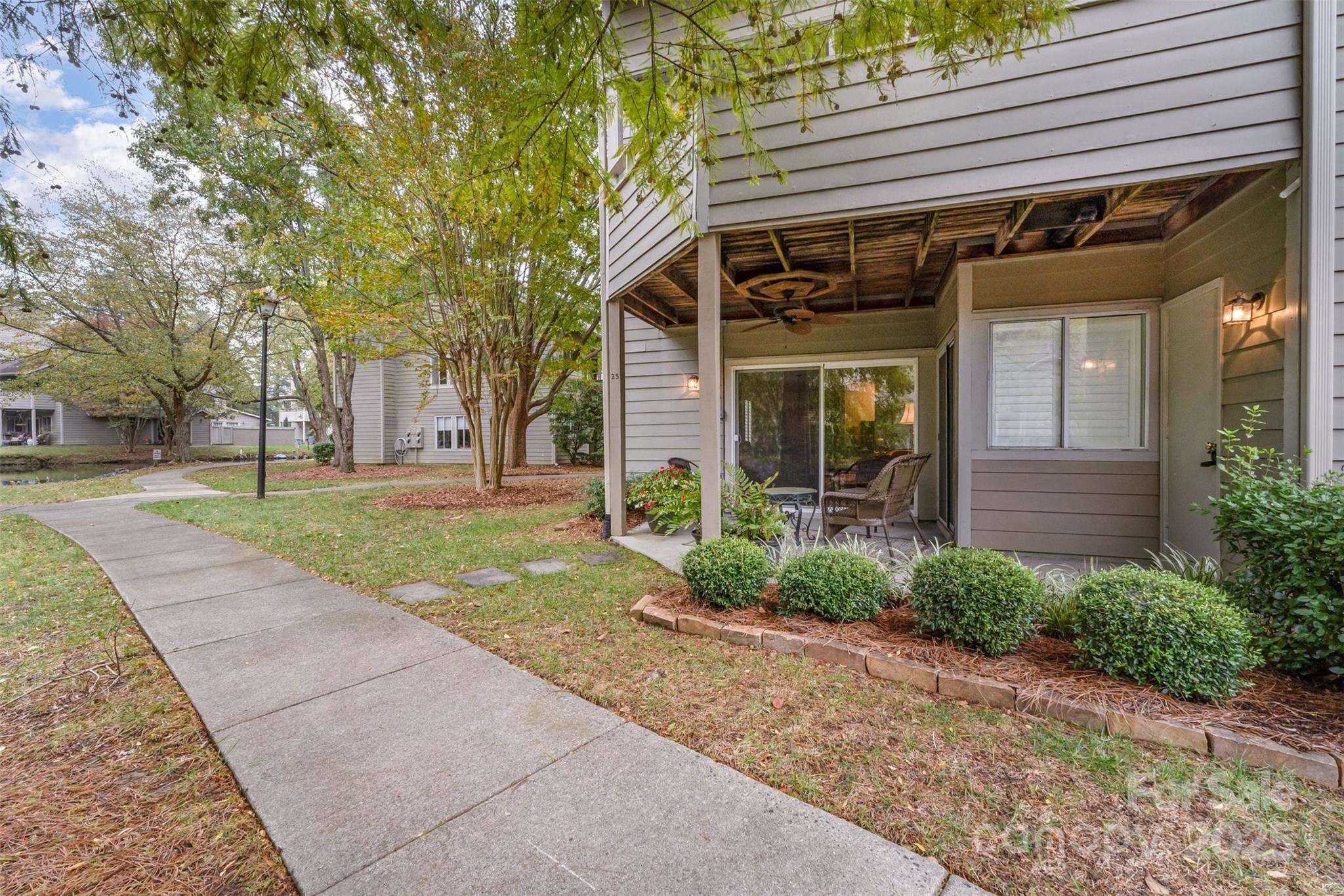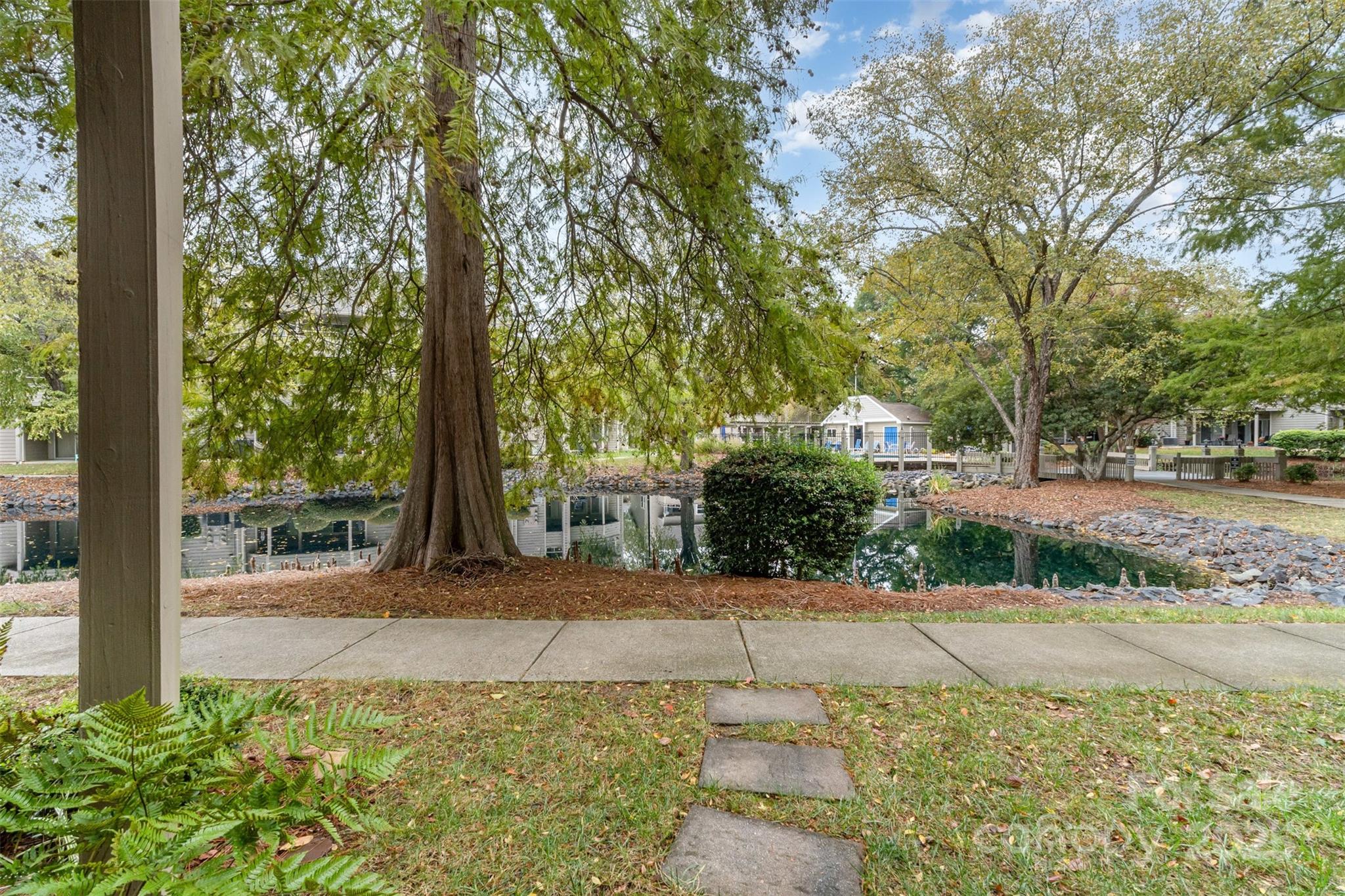 FABULOUS QUAIL CORNERS RENOVATED END UNIT CONDO WITH STUNNING POND VIEWS! Welcome to 2525 Stockbridge Drive — a beautifully updated 2-bedroom condo in the sought-after Creswick community. Enjoy one of the best views in the neighborhood, overlooking the lush landscaping and tranquil pond with its soothing fountain. Quality updates include new plantation shutters ,crown moldings , new baseboard , smooth ceilings with canned lighting .The gleaming hardwood floors shine with natural light from the extra end-unit windows. The renovated kitchen features stylish new cabinetry, stainless steel appliances, granite countertops, under-mount sink, and a crisp white tiled backsplash. The open living and dining area flows effortlessly thru new oversized sliding doors w/remote shade leading to a great patio with an an awesome view and outdoor storage . The primary bedroom offers patio access and a walk-in closet, while the connecting updated bath boasts a large walk-in shower with a seat, new vanity, and added cabinetry for extra storage. Enjoy the resort-style pool (open May 1–Sept 30) and year-round recreation deck. Creswick is one of Quail Corners best-kept secrets—adjacent to Quail Corners Shopping Center with Harris Teeter, Walgreens, and dining options,. Just minutes to the Greenway , LYNX light rail and SouthPark Come tour this exceptional home and experience resort living today in South Charlotte