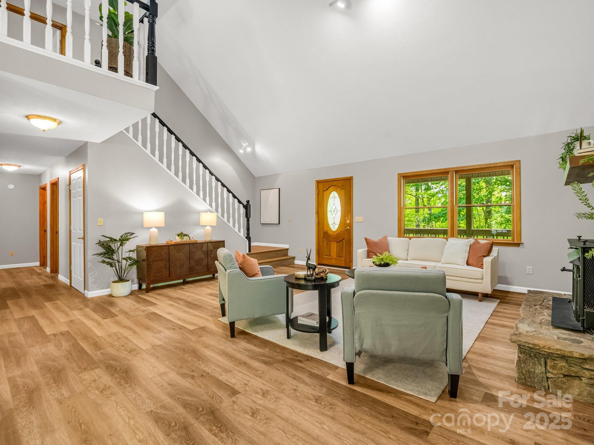 Tucked away on approximately 2.5 acres of wooded beauty, this mountain retreat offers peace and privacy. A winding driveway leads you home, where winter mountain views and birdsong set the scene for quiet mornings and cozy evenings. Just a short drive from the charm of downtown Saluda, NC, nearby Hendersonville as well as Greenville, SC. Seclusion without sacrificing convenience; here, you’ll enjoy the best of both worlds! The open floor plan features a generous living room with vaulted ceilings and a striking stone fireplace complete with a Buck Stove insert—perfect for gathering around on chilly nights. The open loft above offers flexible space for an office or reading nook, while the full, unfinished basement is brimming with potential. With three bedrooms and two bathrooms, there's room for everyone to feel right at home! Easy flow for entertaining or to enjoy as a private mountain getaway, yet convenient to area amenities and daily essentials. Whether sipping coffee on the covered front porch, planting a garden, or exploring your own private slice of nature, this property invites you to slow down and stay awhile.