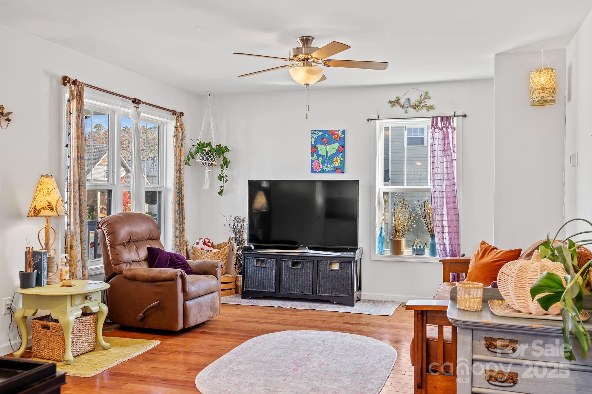 Discover a home that feels instantly welcoming, perfectly set on a corner lot surrounded by gentle mountain ridgelines and a peaceful, charming neighborhood just minutes from downtown Weaverville. Thoughtfully designed with comfort and connection in mind, this 3-bedroom, 2.5-bath home offers an effortless flow with an open floor plan, a main-level primary suite, and inviting spaces that make everyday living feel special. The main level features spacious, light-filled living areas that transition seamlessly between the living, dining, and kitchen spaces. The kitchen offers modern convenience with stainless steel appliances, generous cabinetry, and a functional layout ideal for both daily life and entertaining. The primary suite on the main level provides privacy and ease, while two upstairs bedrooms offer versatility for guests, work, or hobbies. Outside, a covered front porch invites you to slow down and enjoy the calm of your surroundings, the perfect spot for morning coffee or unwinding at the end of the day. Set just minutes from downtown Weaverville and a short drive to Asheville, this home captures the best of small-town living with the convenience of nearby shops, restaurants, and outdoor recreation.