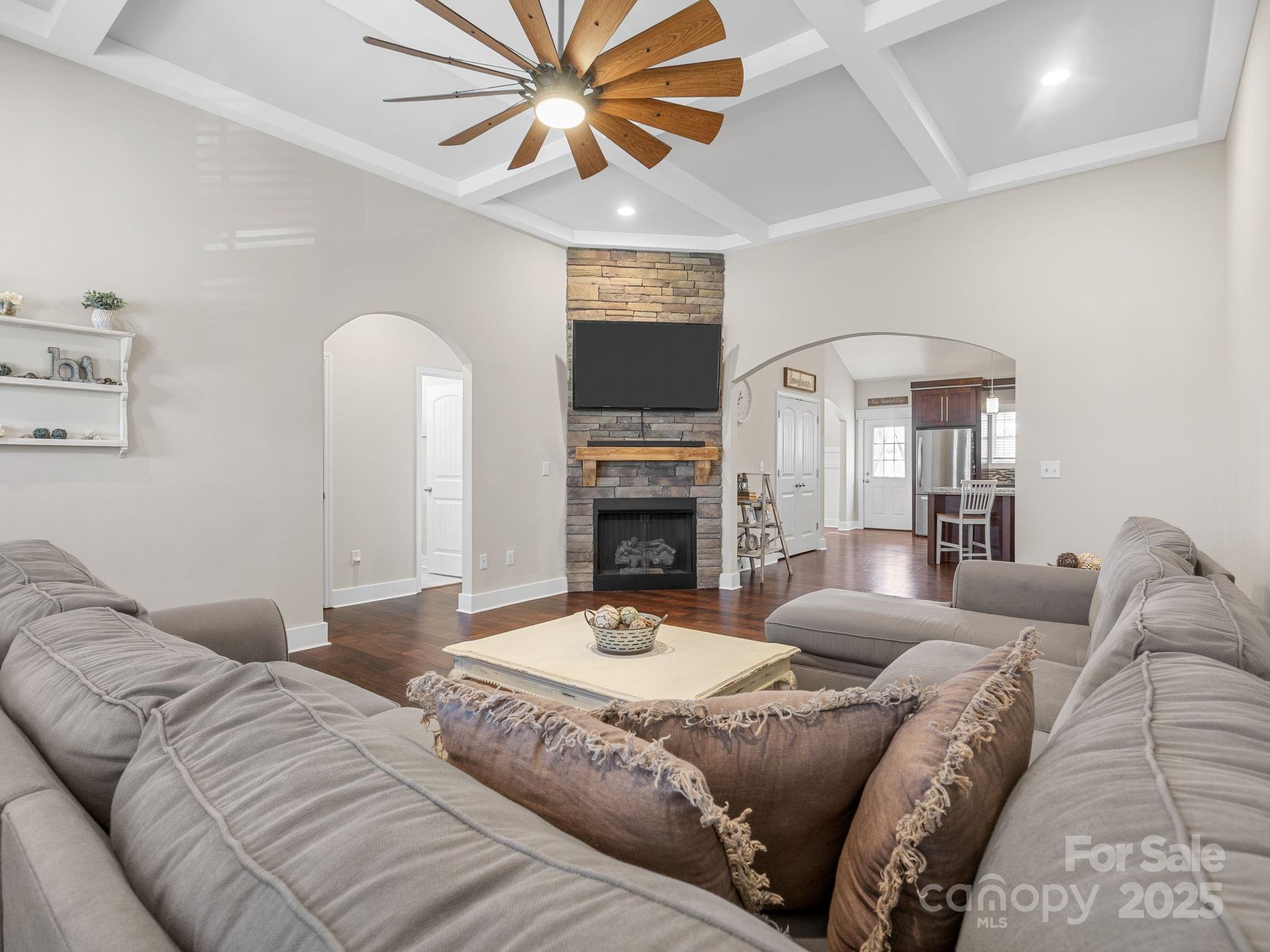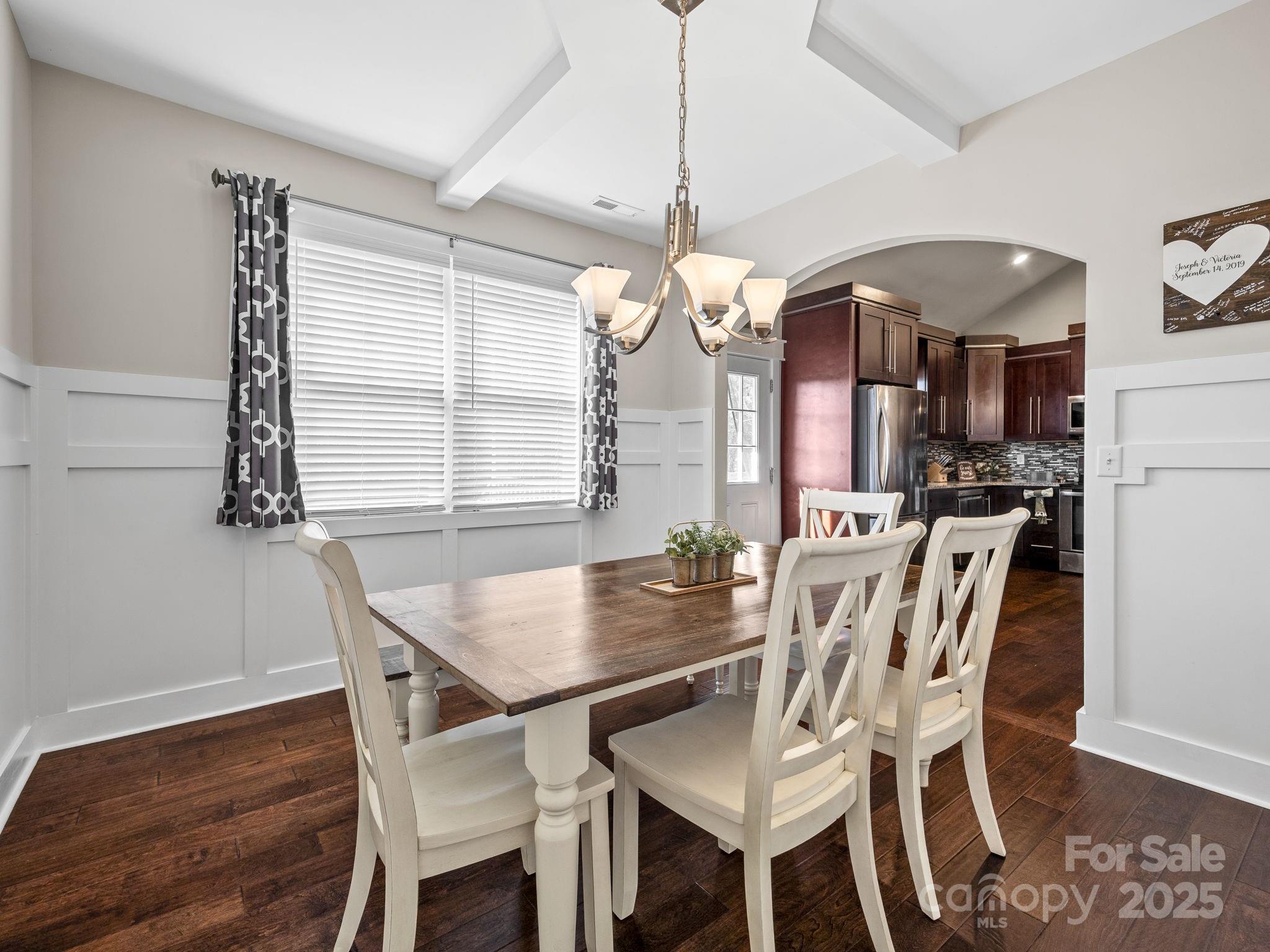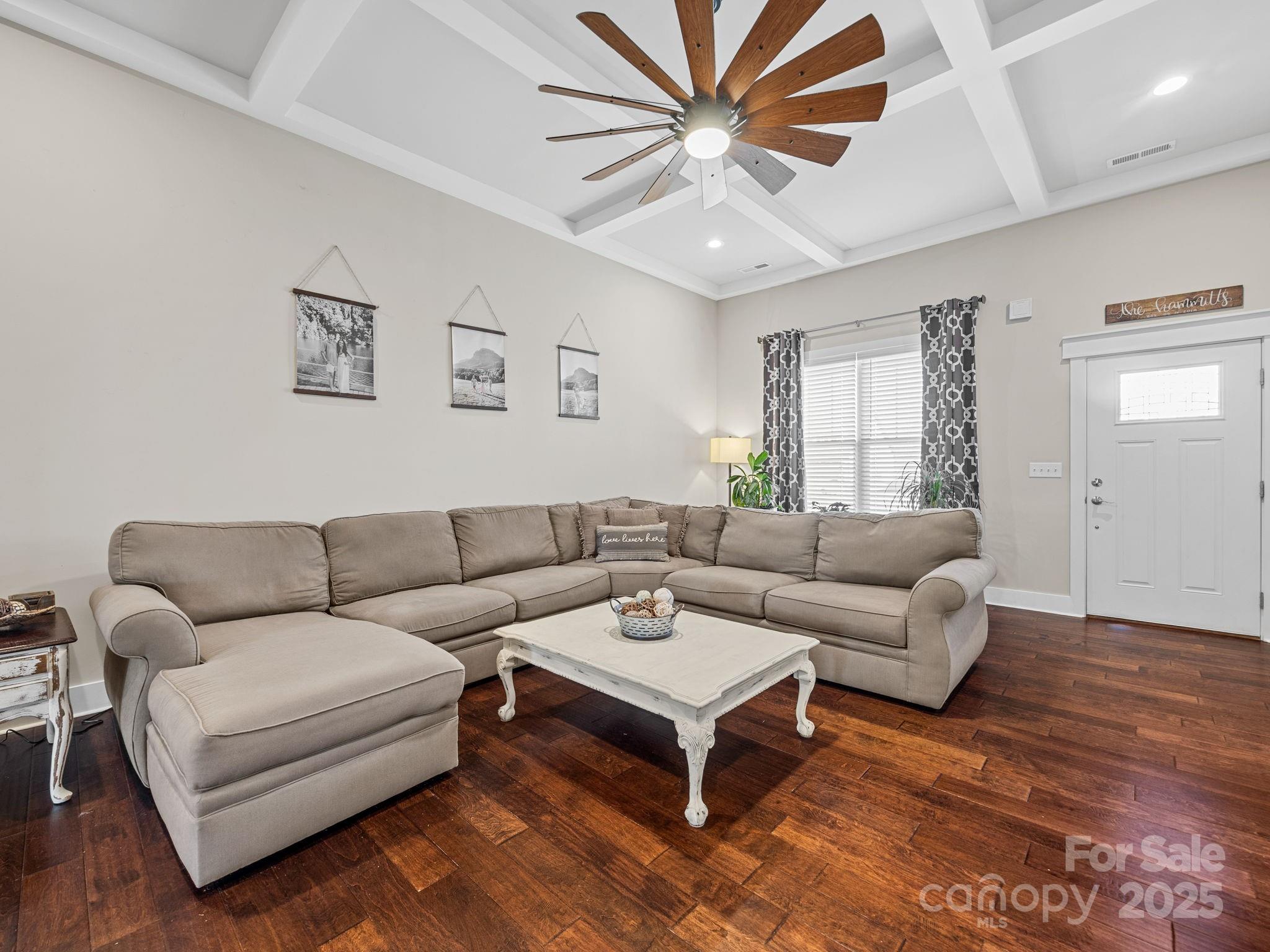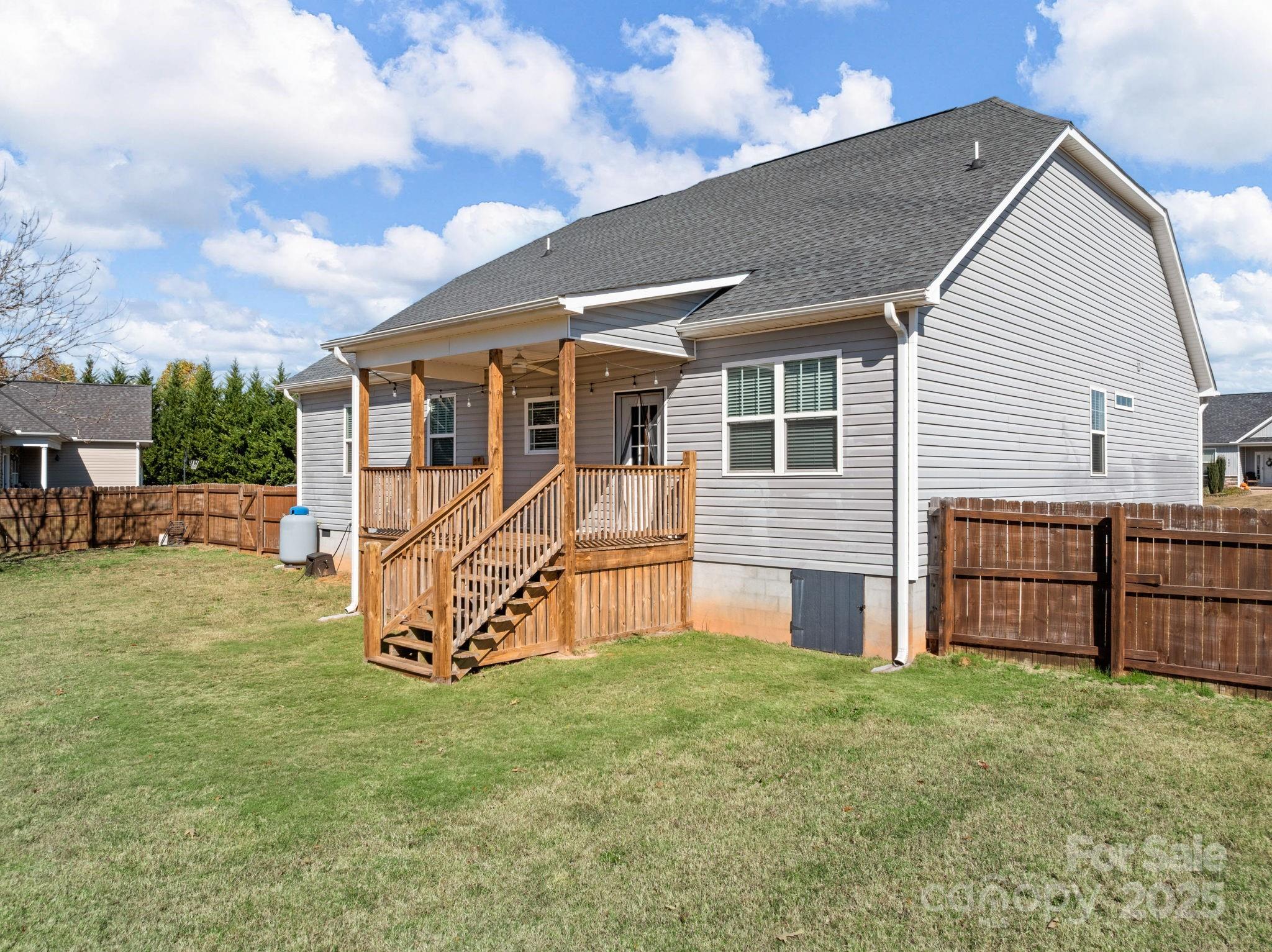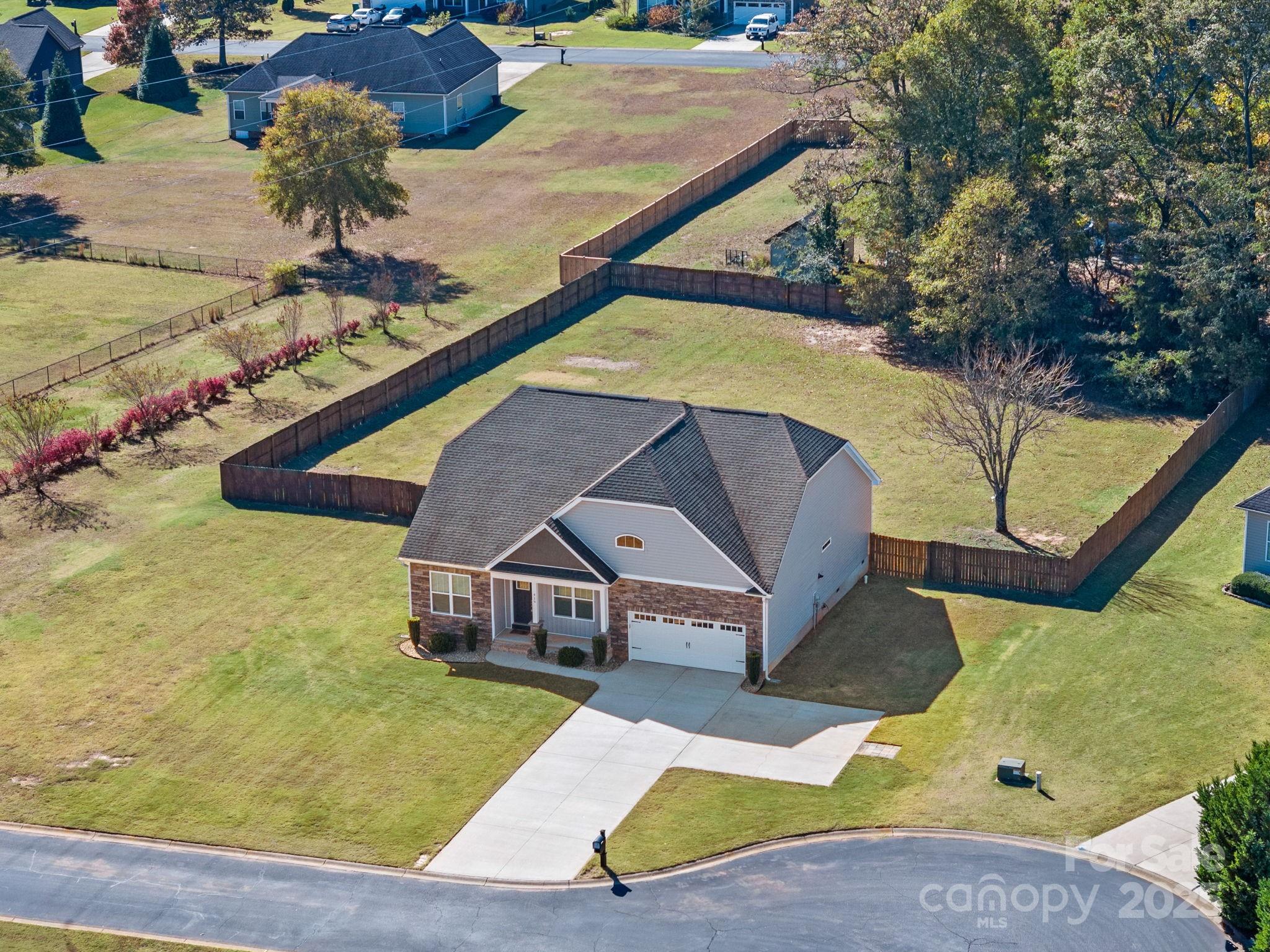 419 Ocala Court · Inman 3 Bedrooms, 2 Bathrooms, 1,876 Sq Ft, Built 2018, Westchester Subdivision Located on a quiet cul-de-sac in Westchester, this well-maintained home offers a smart layout, timeless finishes, and a spacious fenced yard. Hardwoods run throughout, connecting each space with an easy sense of flow. The living room features a coffered ceiling and stone fireplace that add warmth and character. The kitchen includes granite countertops, stainless appliances, and a large island with seating, open to the living area but balanced by a separate formal dining room with wainscoting and natural light. The primary suite feels calm and spacious with a tray ceiling, double vanity bath, tiled shower, and soaking tub. Two additional bedrooms and a full guest bath provide comfortable space for family or guests. Out back, a covered porch overlooks the level fenced yard, ideal for pets, play, or relaxed evenings outdoors. Thoughtful details, neutral tones, and a practical floor plan make this home feel both stylish and easy to live in. Convenient to Inman, Boiling Springs, and major commuter routes.