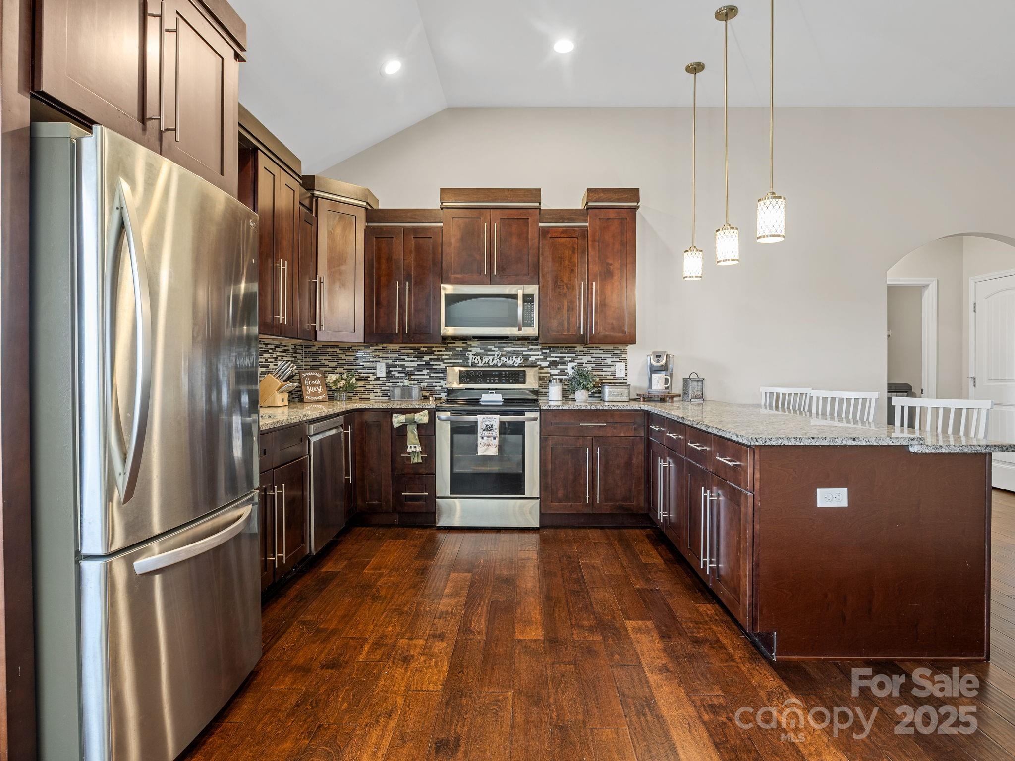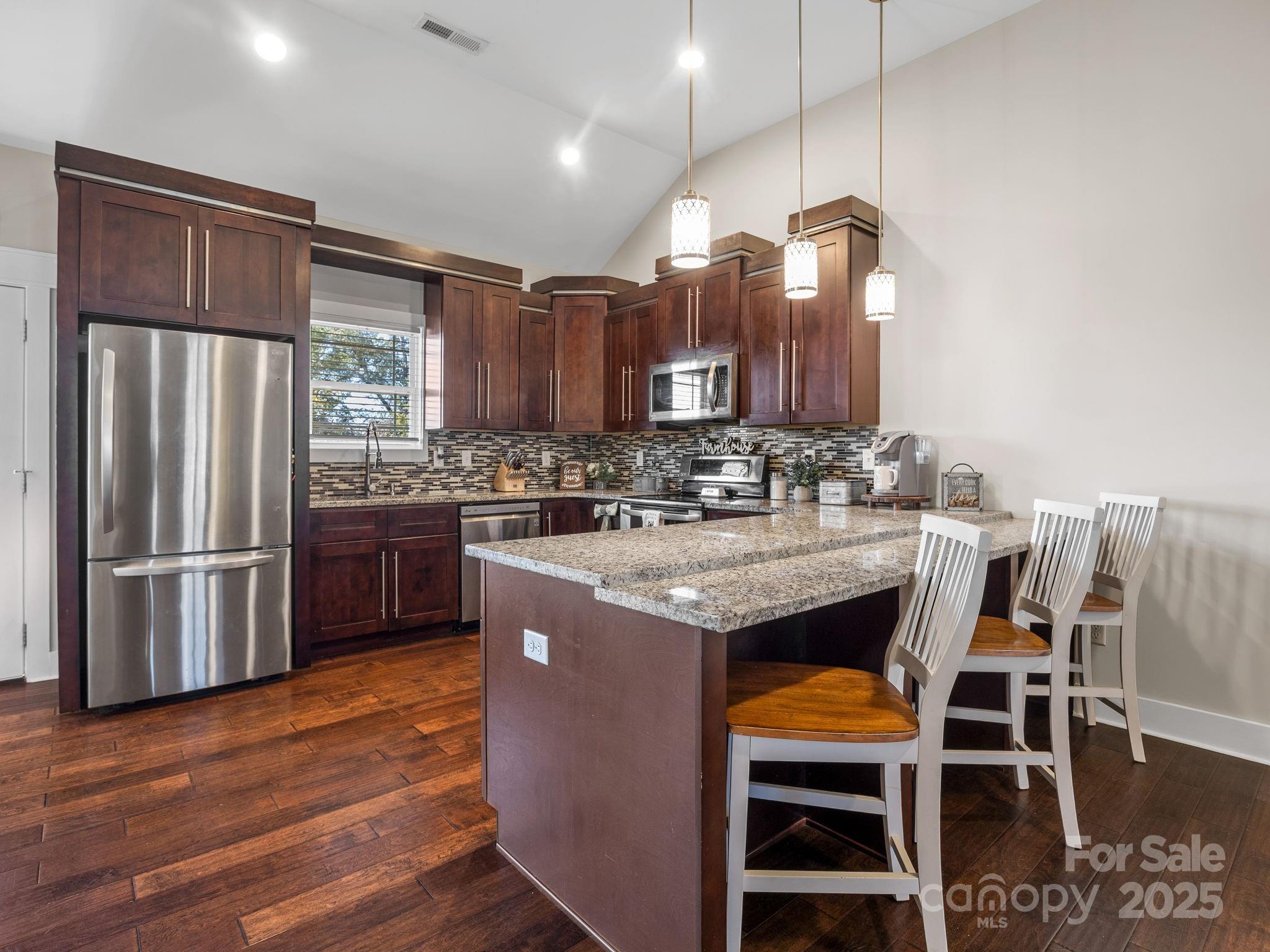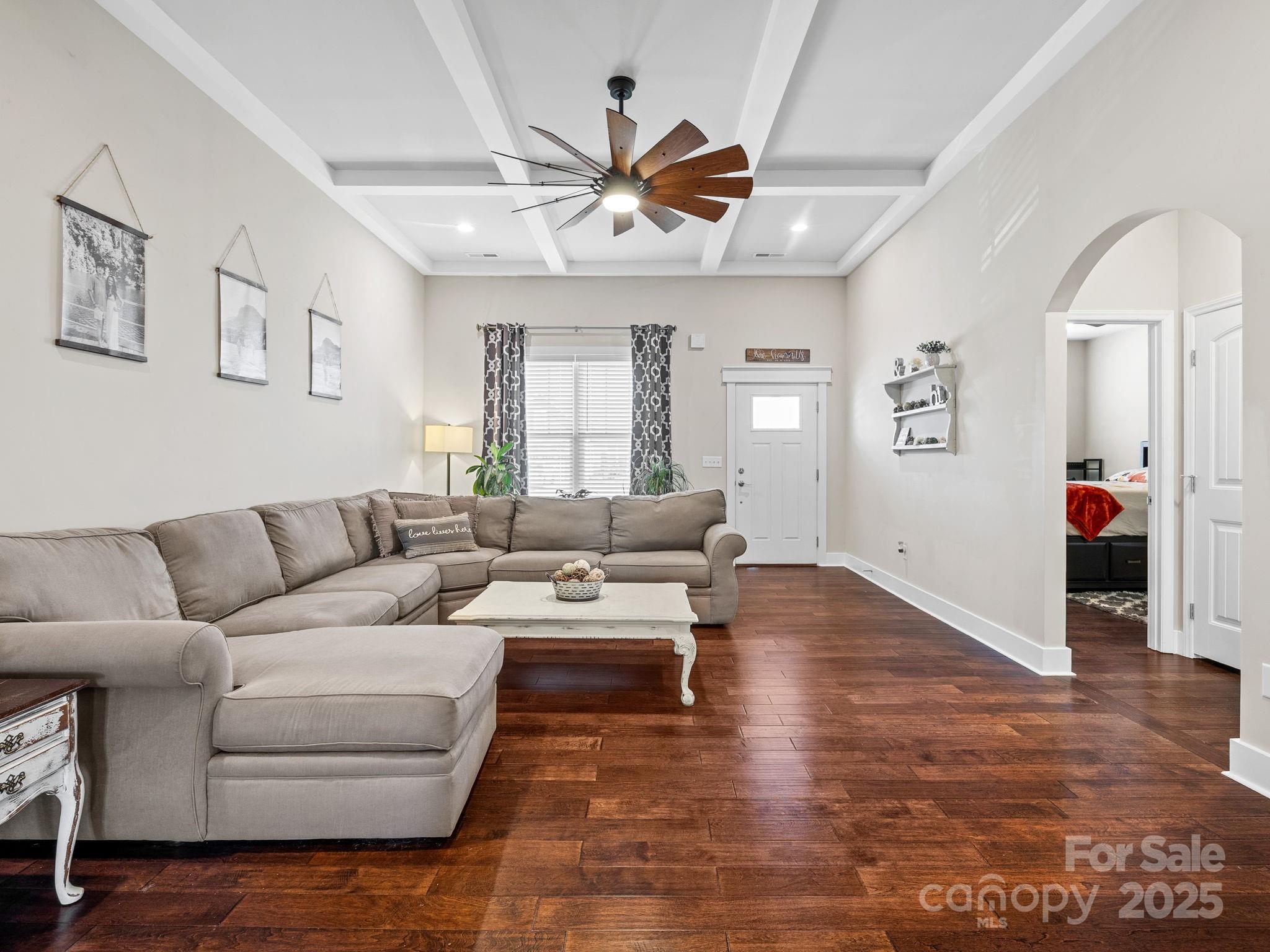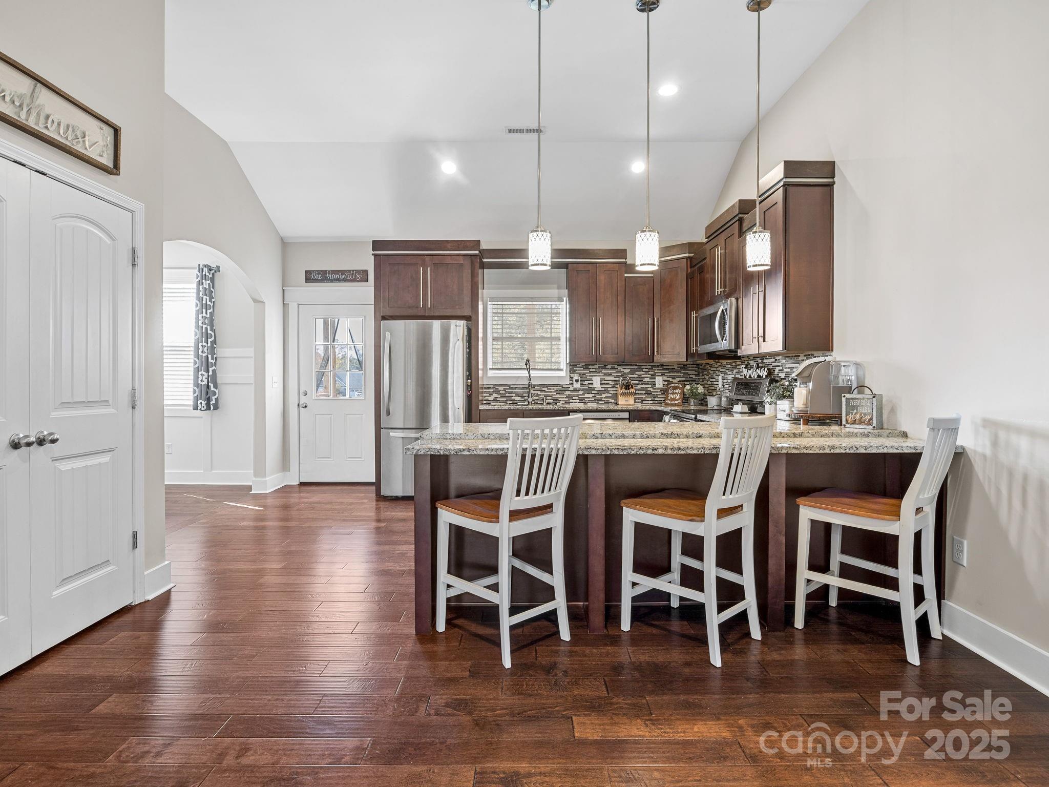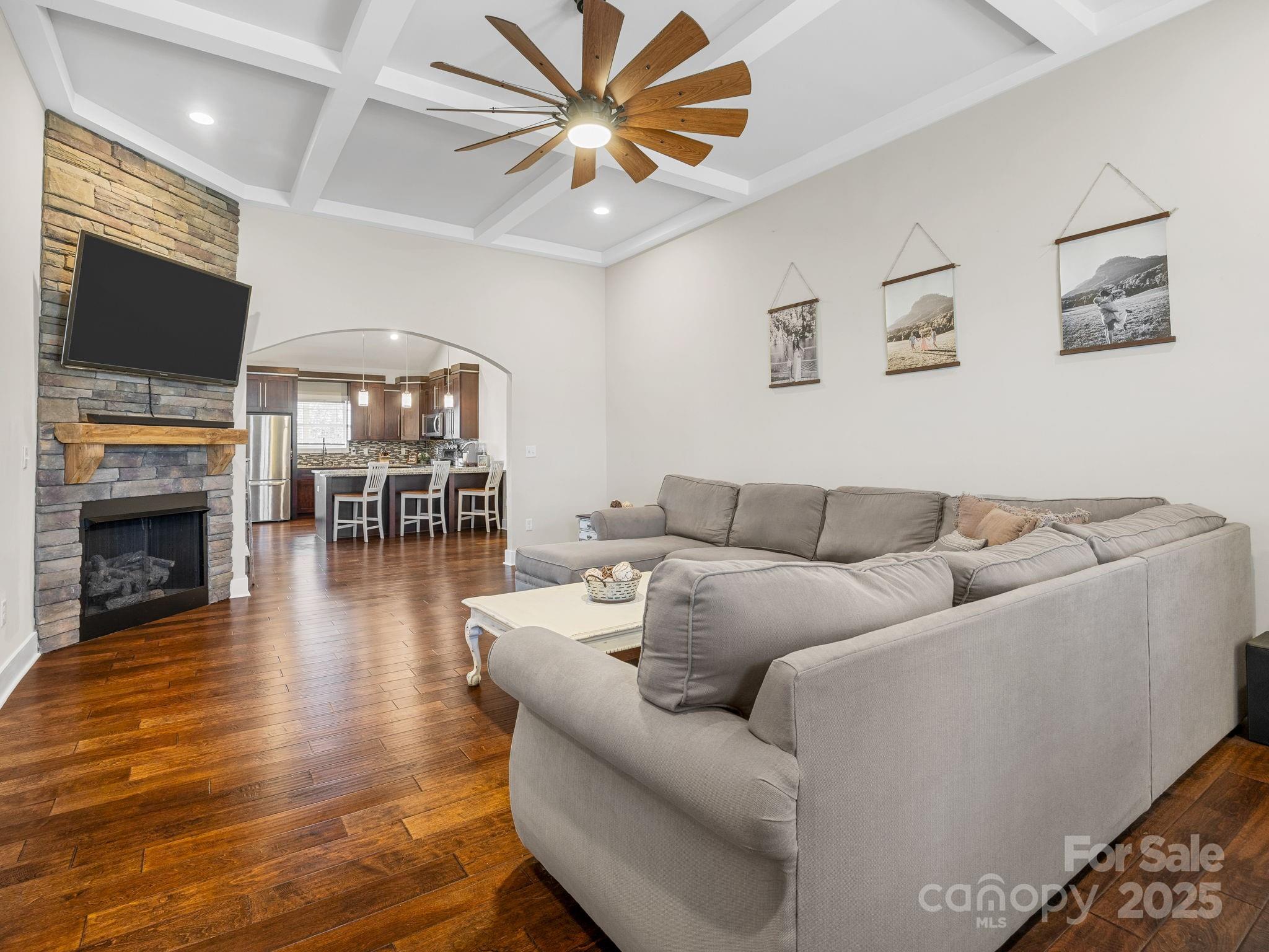 419 Ocala Court · Inman 3 Bedrooms, 2 Bathrooms, 1,876 Sq Ft, Built 2018, Westchester Subdivision Located on a quiet cul-de-sac in Westchester, this well-maintained home offers a smart layout, timeless finishes, and a spacious fenced yard. Hardwoods run throughout, connecting each space with an easy sense of flow. The living room features a coffered ceiling and stone fireplace that add warmth and character. The kitchen includes granite countertops, stainless appliances, and a large island with seating, open to the living area but balanced by a separate formal dining room with wainscoting and natural light. The primary suite feels calm and spacious with a tray ceiling, double vanity bath, tiled shower, and soaking tub. Two additional bedrooms and a full guest bath provide comfortable space for family or guests. Out back, a covered porch overlooks the level fenced yard, ideal for pets, play, or relaxed evenings outdoors. Thoughtful details, neutral tones, and a practical floor plan make this home feel both stylish and easy to live in. Convenient to Inman, Boiling Springs, and major commuter routes.