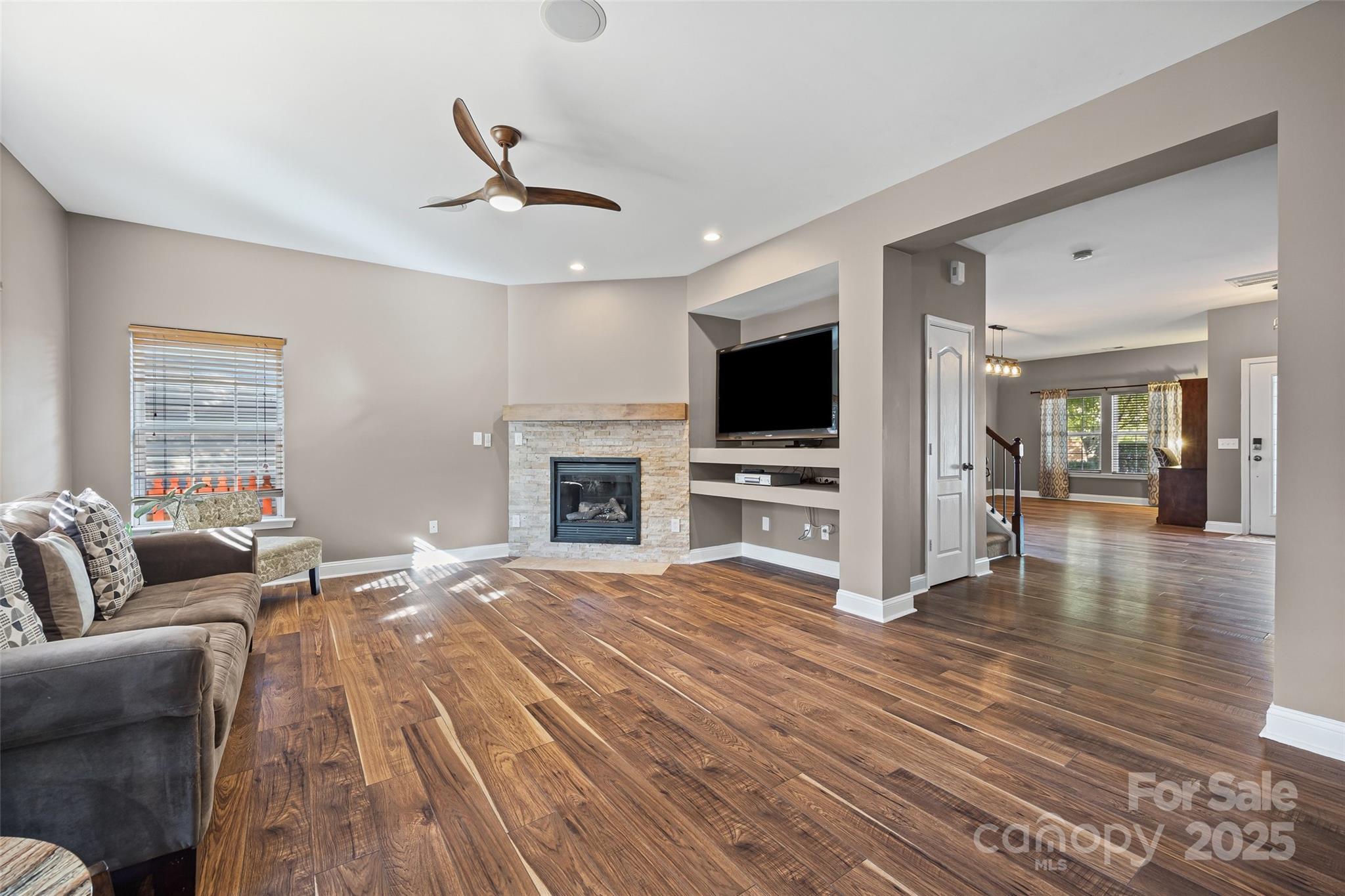 Seeking a turnkey home with modern updates throughout? Welcome to 240 Loch Stone, a charming two-story residence nestled on a quiet, tree-lined street that perfectly blends classic comfort with contemporary design. The inviting exterior features a welcoming front porch — an ideal spot for morning coffee or evening relaxation. Inside, you’ll find an open-concept living area filled with natural light, rich hardwood floors, and a beautiful stone fireplace that serves as the heart of the home. The gourmet kitchen showcases quartz countertops, stainless steel appliances, and a spacious island perfect for entertaining family and friends. Upstairs, the primary suite offers a serene retreat with a walk-in closet and a spa-inspired bathroom featuring a soaking tub and glass-enclosed shower. Four additional bedrooms and an open loft provide ample space for family, guests, or a home office. Step outside to a landscaped backyard with a patio designed for summer barbecues and outdoor gatherings. A two-car garage and convenient access to parks, schools, and shops make everyday living easy and enjoyable. Families will also appreciate the community amenities, including a sparkling swimming pool for summer fun, tennis courts for active weekends, and parks and playgrounds where neighbors come together and kids create lasting memories. Exterior coverings include vinyl, block and stucco. Items to convey include treehouse, refrigerator, washer and dryer.