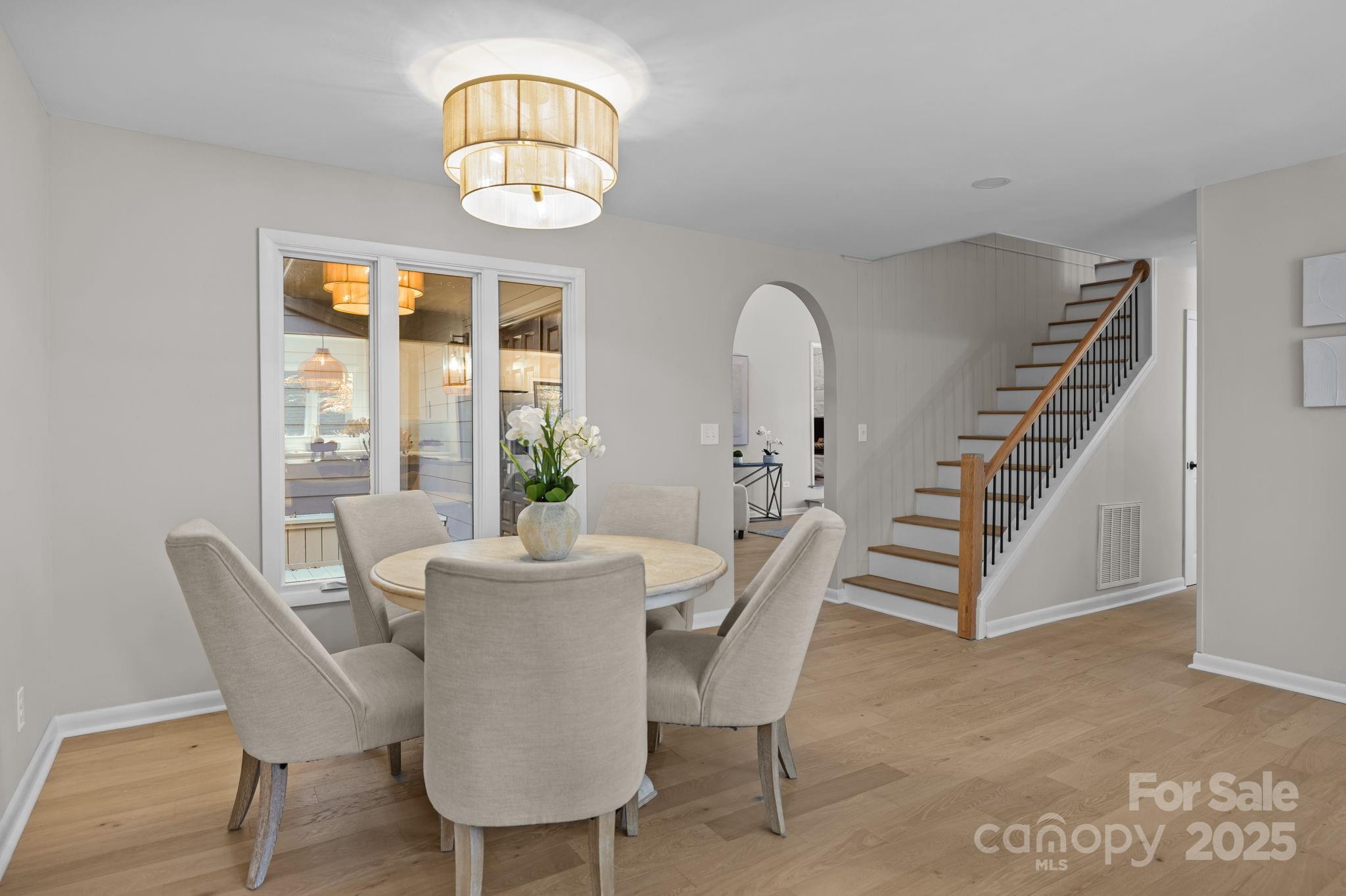 Welcome to your fully renovated dream home on Hole 16 of the highly sought-after Raintree Country Club community — where the $30,000 club initiation fee is waived for the new homeowners! From the moment you step through the solid wood double doors, you’re greeted by a light-filled den featuring brand-new engineered hardwood floors and a stunning view of the expansive back deck that spans the length of the home — perfect for entertaining or relaxing with a morning coffee. To the left, elegant French doors open to a cozy fireplace room that can serve as an extension of the den or as a private retreat connected to the primary suite. The spacious primary bedroom includes two walk-in closets and a beautiful en-suite bathroom. The dining and kitchen areas are truly the heart of the home, highlighted by a newly crafted wood beam above the kitchen island, a sleek downdraft oven, and striking pendant lighting. Adjacent to the kitchen, a secondary gathering room with a custom coffee/wine bar offers the perfect space for pre-dinner mingling or quiet evenings. A wall of glass provides a serene view of the wooded backyard. Up the newly remodeled staircase, you’ll find three additional bedrooms and two full bathrooms, offering plenty of space for family and guests. A two-car garage completes this thoughtfully renovated home, where every detail has been refreshed with style, comfort, and care. Enjoy resort-style living with access to Raintree Country Club — and the rare advantage of a waived $30,000 initiation fee. Come see this stunning Raintree retreat that feels brand new inside and out!