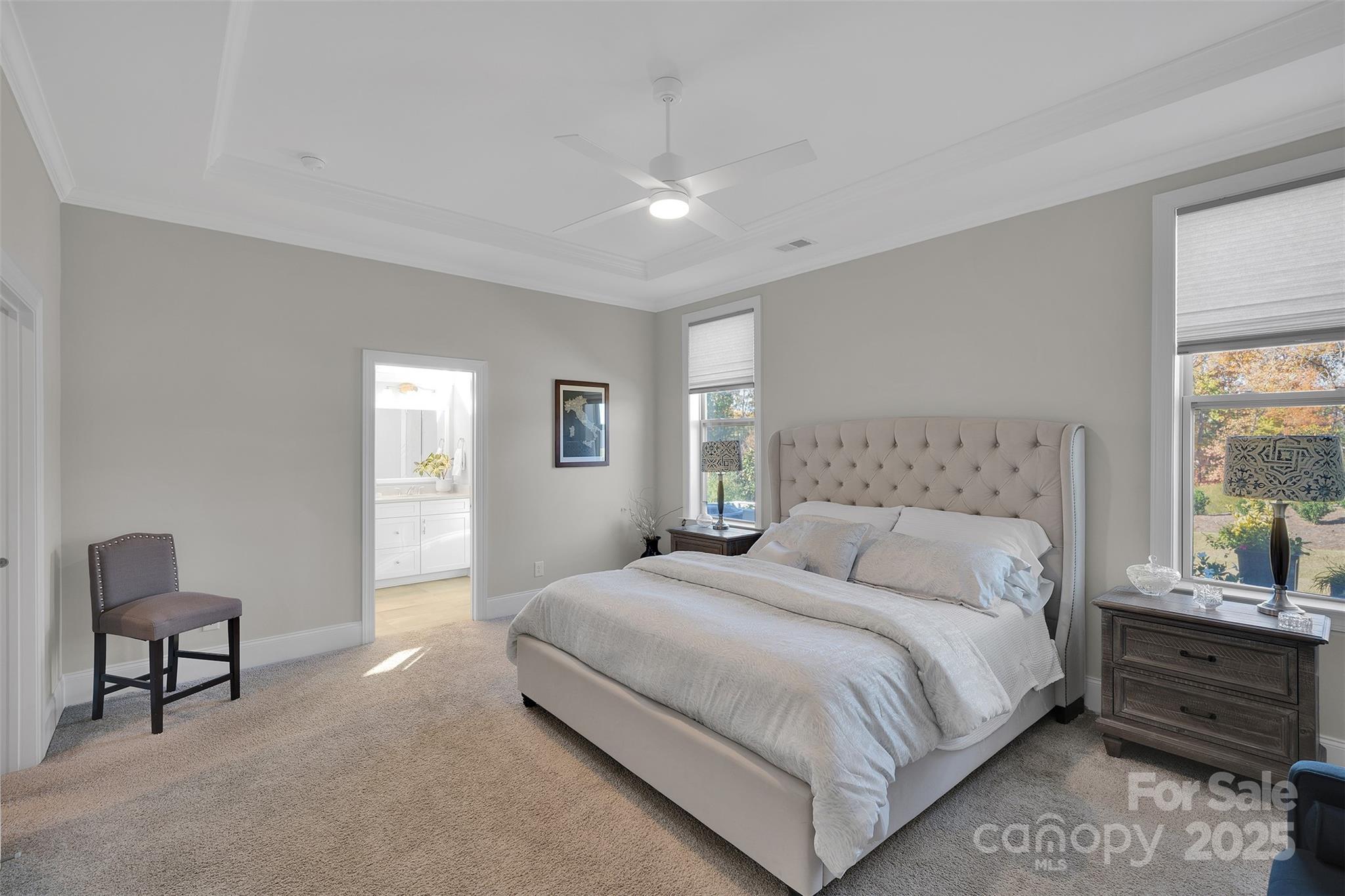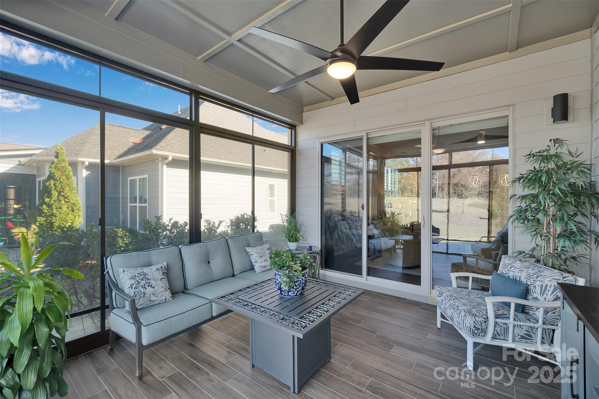 Welcome to luxury living in the prestigious Regency at Palisades! This stunning 3-bedroom, 2-bathroom, 2,274 sq ft home in Charlotte's premier age-targeted community offers the perfect blend of elegance and resort-style amenities near Lake Wylie. Step inside to discover a thoughtfully designed floor plan featuring an elegant study with crown molding and chair rail, perfect for working from home or quiet reading. The gourmet kitchen is a chef's dream with a large quartz island, butler's pantry, and walk-in pantry – ideal for entertaining and everyday living. The spacious primary suite is your private retreat, boasting a tray ceiling and a spa-inspired ensuite with an oversized shower. Two additional bedrooms provide flexibility for guests, hobbies, or home office space. Throughout the home, you'll appreciate premium touches including built-in speakers, crown molding, and an electric fireplace in the living room creating the perfect ambiance. The true showstopper? The EZE Breeze/screened porch with breathtaking treed views – enjoy this peaceful outdoor oasis nearly year-round! Step out to the stamped concrete patio, perfect for al fresco dining and relaxation. Enjoy worry-free living as the HOA includes lawn maintenance and irrigation – spend your time enjoying life, not maintaining it! Excellent community, The Regency at Palisades features a spectacular 12,000 sq ft clubhouse with indoor and outdoor pools, state-of-the-art fitness center, exercise room, and a full-time activities director organizing clubs, trips, and events. Enjoy convenient access to Lake Wylie recreation and CLT Airport. This is more than a home – it's a lifestyle! Schedule your showing today.