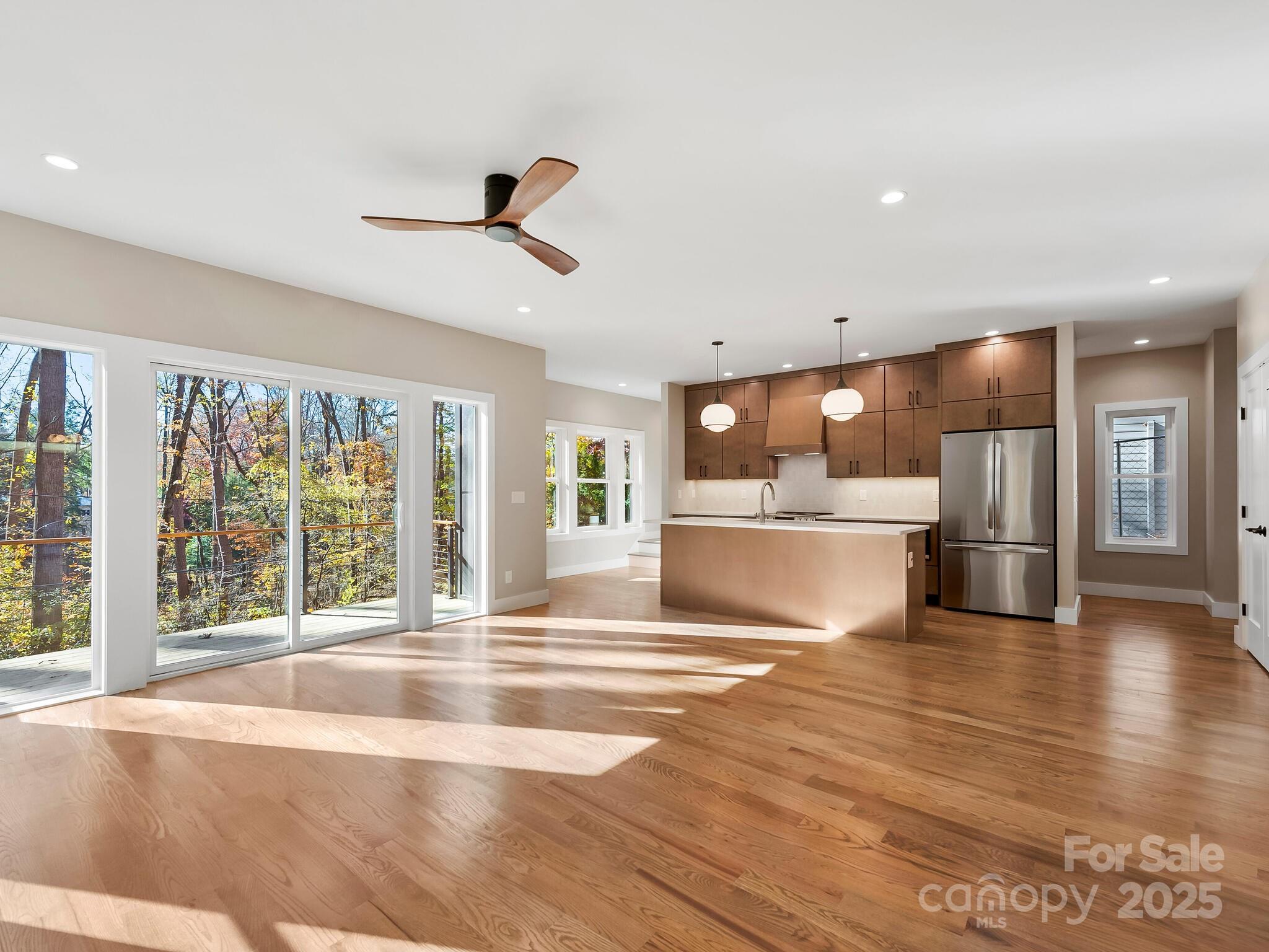 Brand new modern masterpiece tucked into a wooded pocket of Morningside Park in West Asheville. Catoe Construction designed this place specifically for this site and to make the most of this sought-after location. Life here provides clean lines, a spacious floor plan, great outdoor living, and a huge garage with room for a workshop or home gym. An inviting mudroom entry walks up to a generous open main level. The stunning kitchen boasts a massive island, premium appliances, gorgeous soft-close cabinetry, quality quartz countertops, and a tasteful tile backsplash illuminated with under-cabinet lighting. The living room opens onto a front balcony overlooking an urban forest and the dining area opens to a terraced deck and a stone fire pit patio in the private back yard. A main level bedroom offers flexibility for guests, playroom, media room, or an amazing home office. Upstairs has three bedrooms including a treehouse-like primary suite that spoils with a well-appointed walk-in closet and a luxurious en-suite bath featuring an oversized glass & tile shower. Live well with hardwood oak & tile flooring, quality finishes, fixtures & hardware, and generous spaces that flow together for a perfect floor plan. Live smart with high performance green construction including a hybrid foam & fiber insulation package and high-efficiency, dual-zoned Bosch HVAC. All of this is just around the bend from West Asheville Park. Just across the park, Vermont Avenue leads straight to Haywood Road and the heart of Westside amenities. The unofficial Rhododendron Creek Trail borders the park and leads toward Hominy Creek and French Broad River Greenways. Access to all three interstates is just a few blocks away. This place is the pinnacle of peak Asheville living! Taxes TBD.