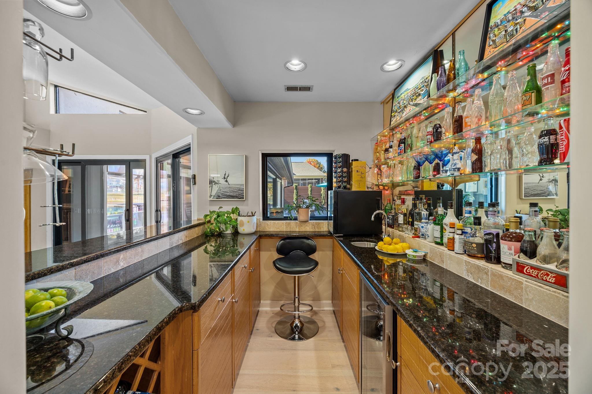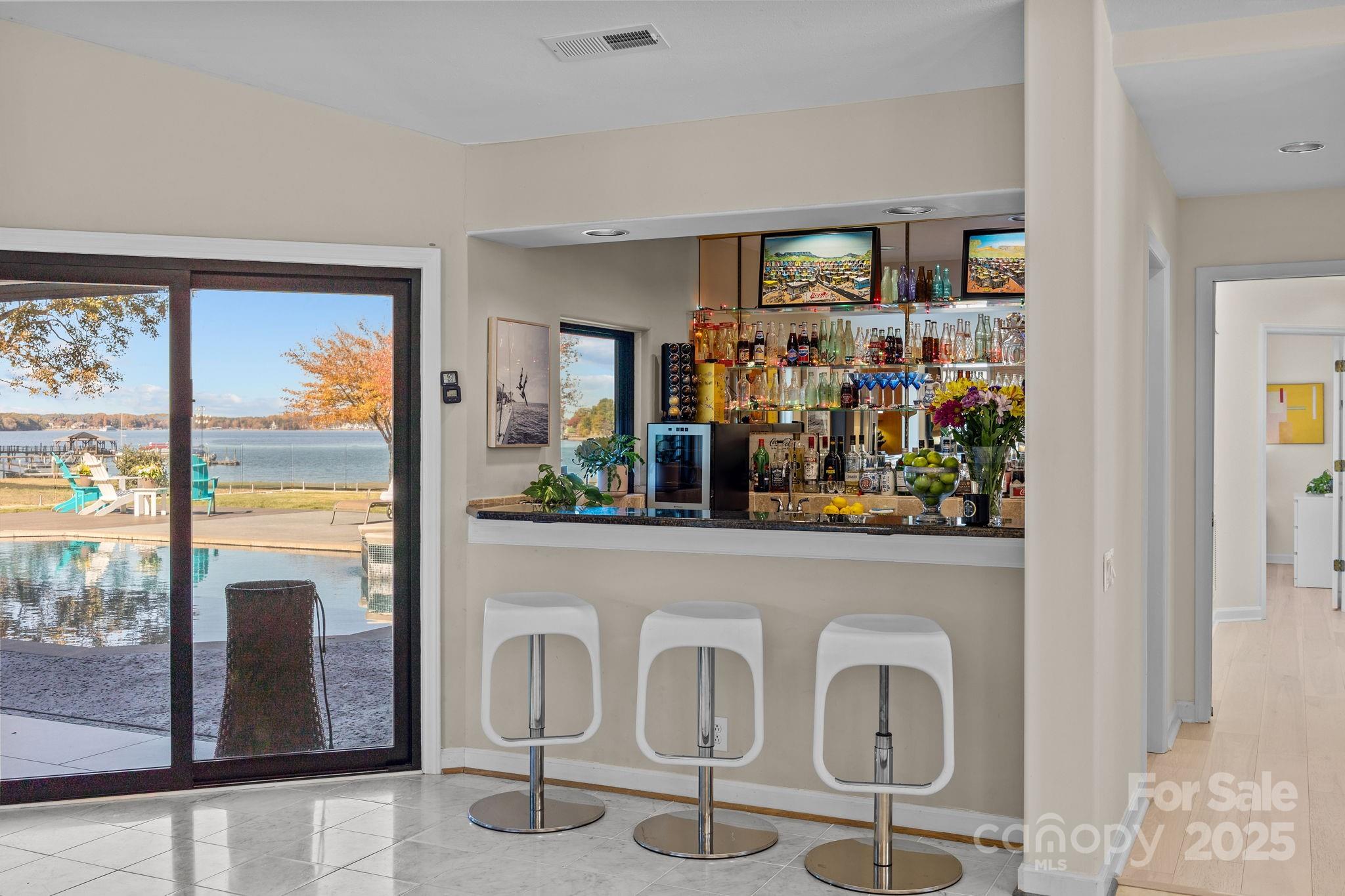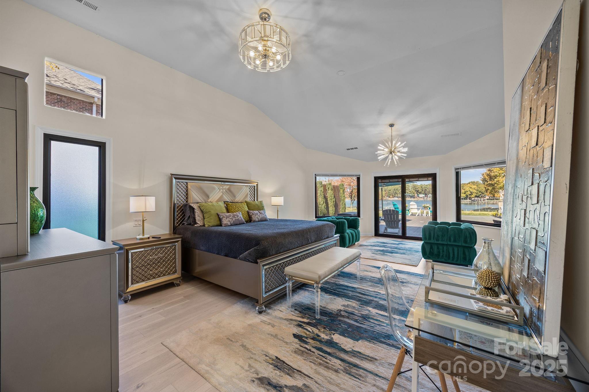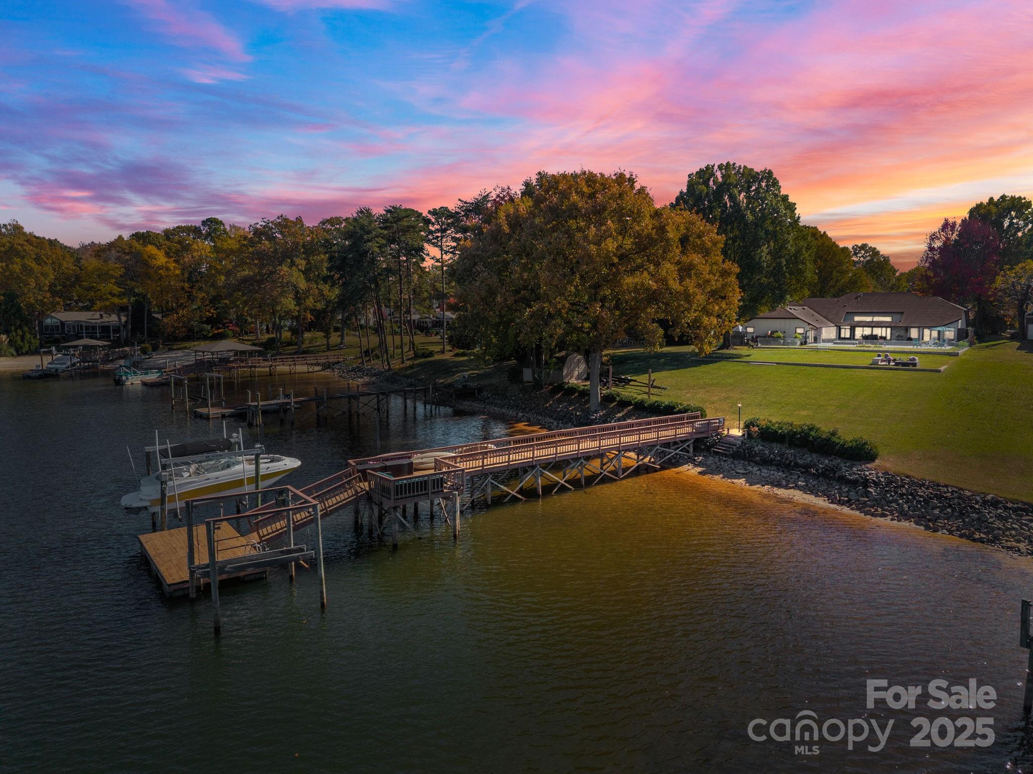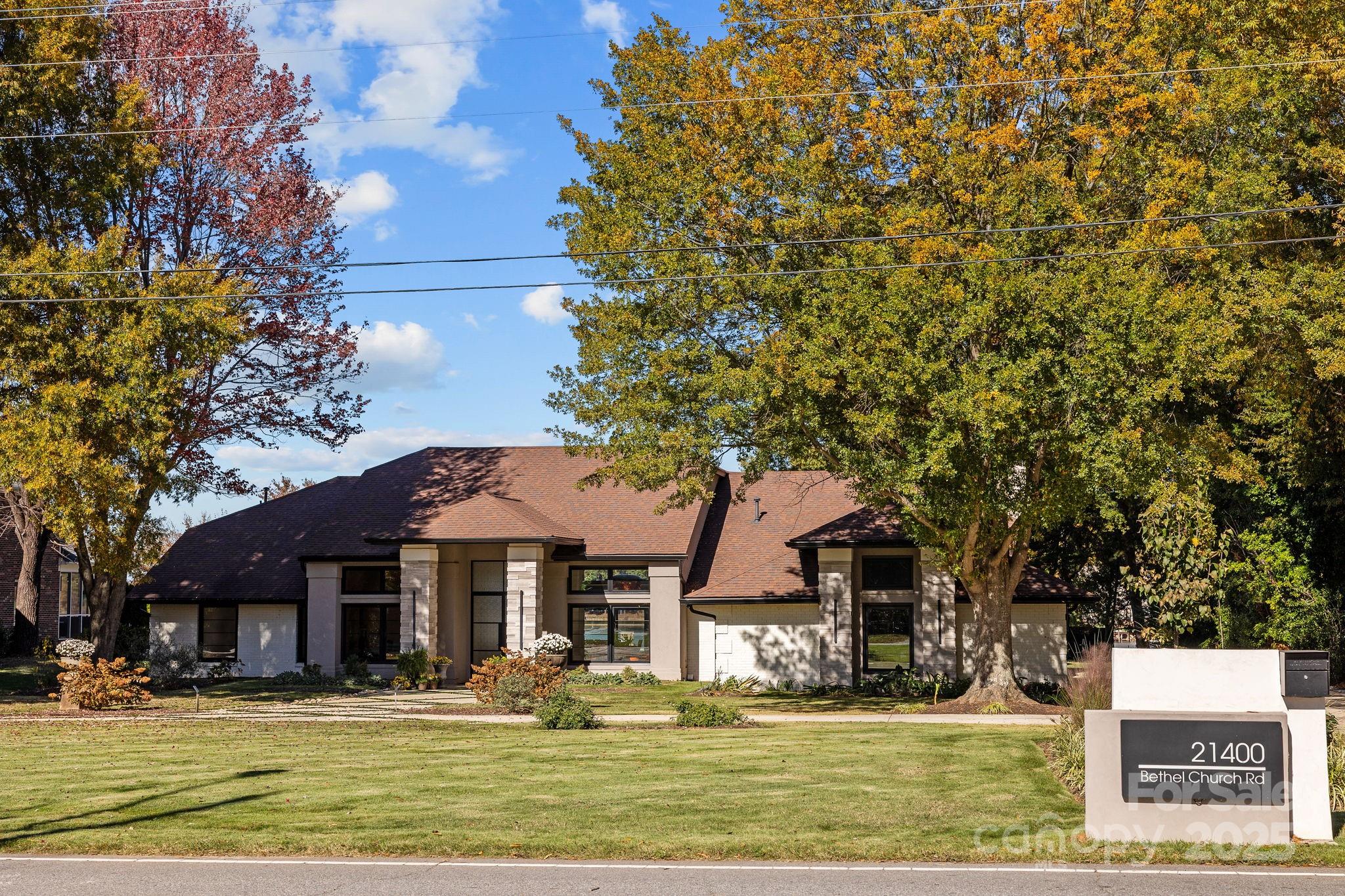Welcome to 21400 Bethel Church where architectural elegance meets lakeside luxury. This one-of-a-kind four-bedroom custom-built ranch home, inspired by the timeless principles of Frank Lloyd Wright, showcases clean lines, soaring ceilings, and abundant natural light throughout. Designed for both comfort and entertaining, the open-concept layout centers around a private outdoor oasis featuring a sparkling pool and hot tub, wet bar, and panoramic lake views from nearly every room. Situated on a flat, meticulously landscaped one-acre lot—one of the most coveted parcels on Lake Norman—this property offers uninterrupted main channel vistas from its private cove location at the end of the Bethel Church Road peninsula. Enjoy deep water access from your private dock with boat and jet ski lifts, ideal for weekend adventures or peaceful sunset cruises. The spacious, accessible floor plan includes extra-wide hallways and doorways, with a primary suite that opens directly to the outdoor entertainment area for seamless indoor-outdoor living. Additional highlights include an expansive circular driveway, three-car garage, established lakeside garden with a built-in firepit, and a quiet, well-established neighborhood offering privacy and tranquility. A rare blend of architectural sophistication, functional design, and premier lakefront living—experience the lifestyle that awaits at 21400 Bethel Church.
