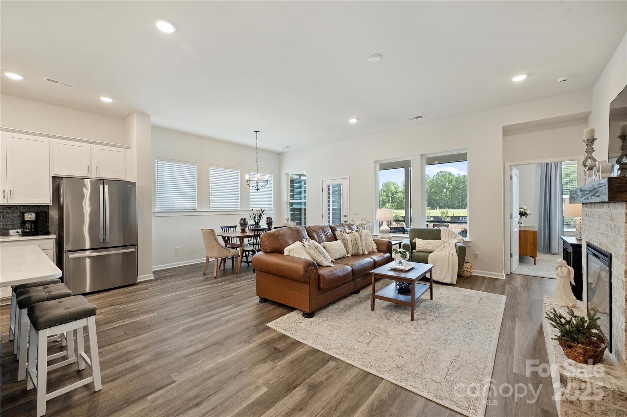 Absolutely charming 3 BR + Office home with a screened porch and professionally-landscaped yard in Encore at Streamsid, David Weekley’s premier 55+ neighborhood in Waxhaw. Only one year young, this upgraded single-level beauty blends timeless design with modern ease. Inside, the light-filled gourmet kitchen shines with a large quartz island, stainless gas cooktop, and custom lighting. The Great Room offers a warm brick fireplace—perfect for cozy nights or entertaining friends. The main-level primary suite features a spa-style shower and Closet by Design built-ins for everyday luxury. Enjoy your morning coffee or evening wine on the screened porch overlooking the level, low-maintenance yard—lawn care included! Additional highlights include a dedicated office/flex space, abundant storage, and meticulous attention to detail throughout. Encore at Streamside offers resort-style living with a clubhouse, pool, pickleball, fitness center, dog park, walking trails, and vibrant social calendar. Priced at $632,400, this home is an exceptional value—strategically positioned below neighborhood median sales ($647K) while offering premium upgrades and move-in readiness.