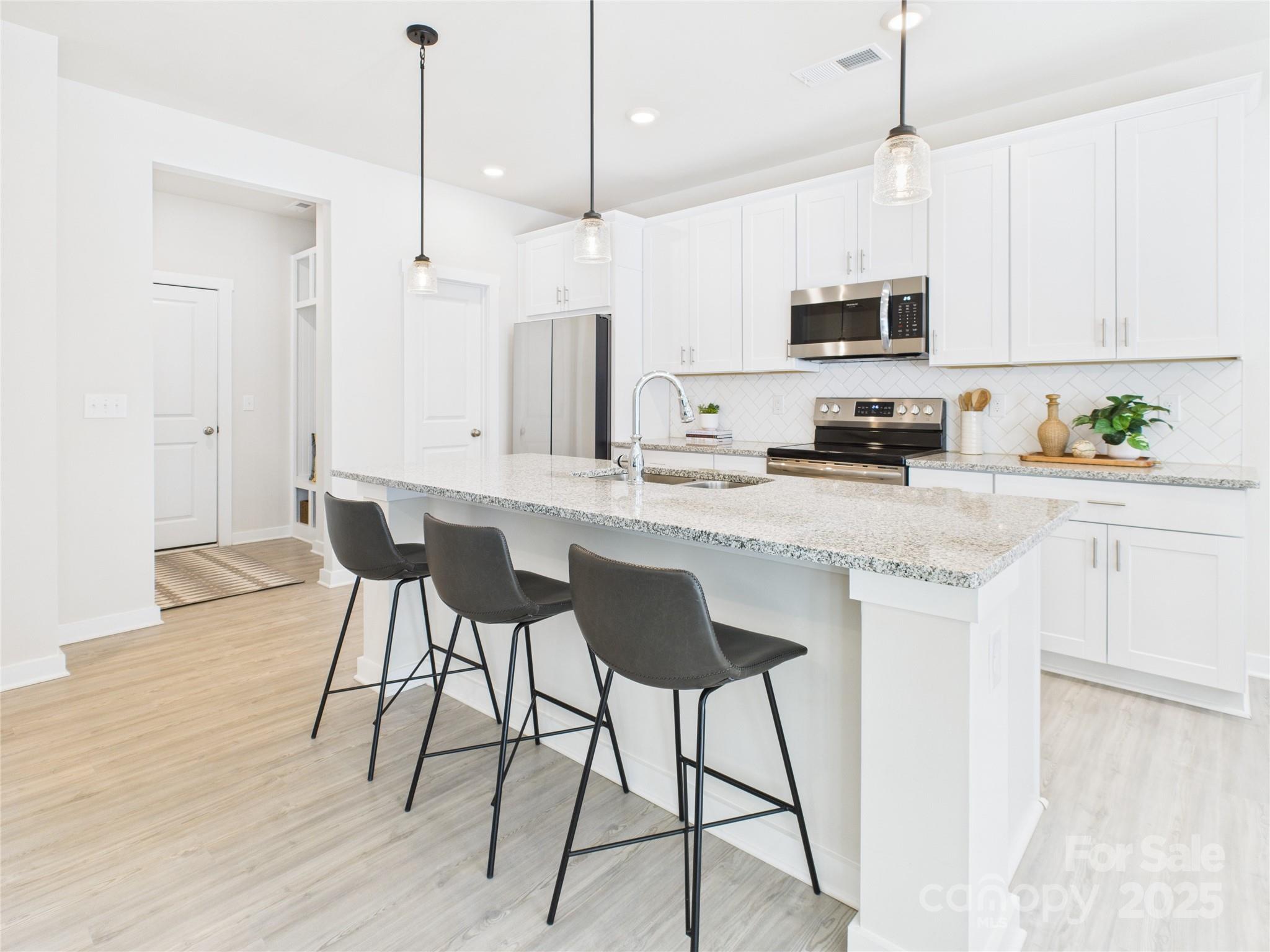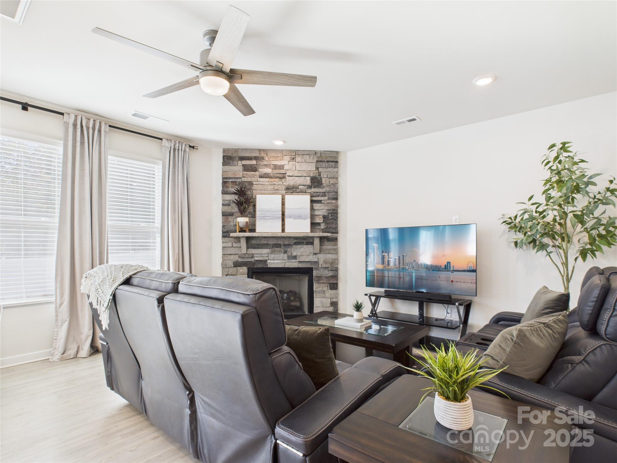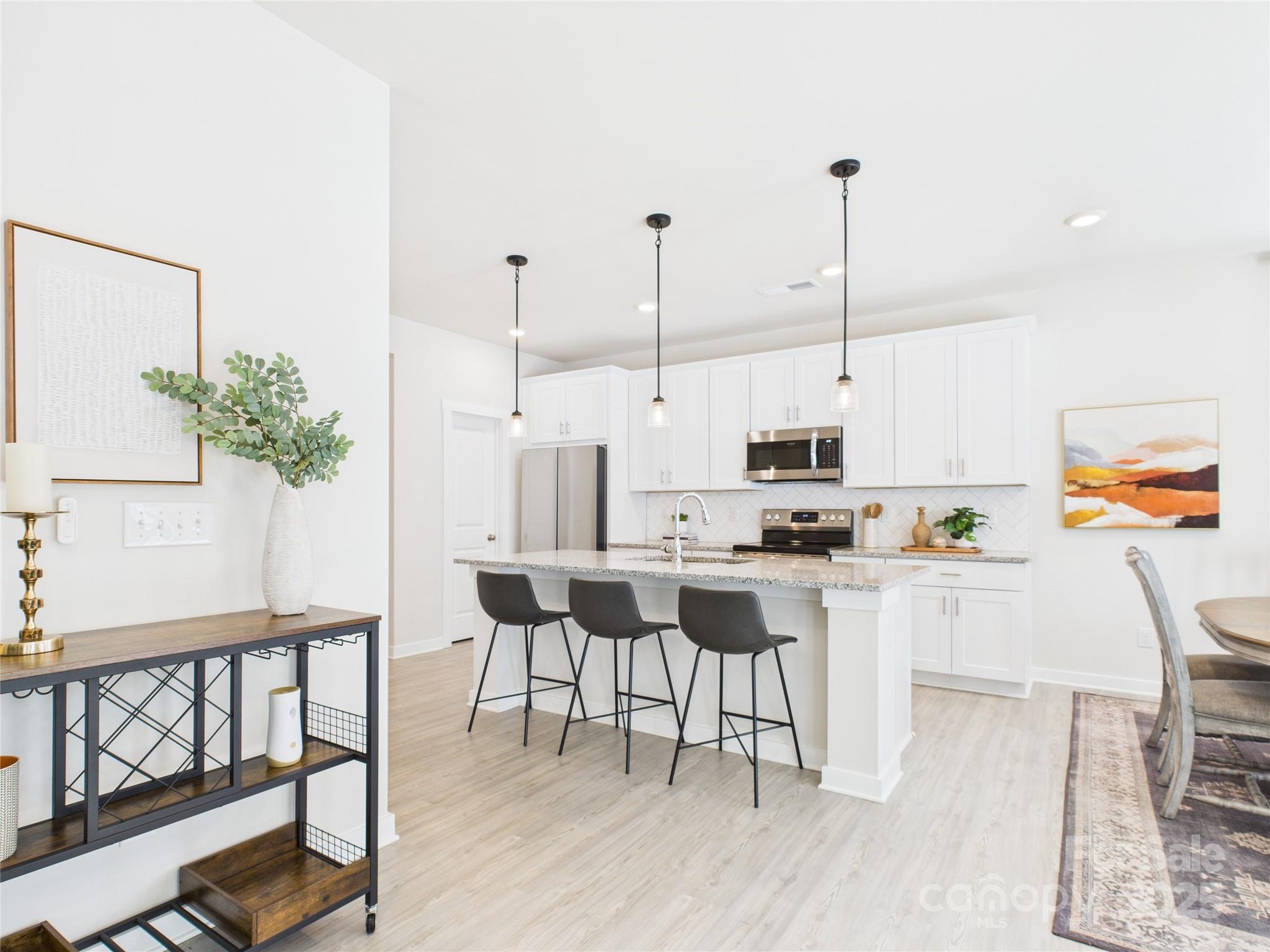 Almost like NEW! This home has a great floor plan with 4 Bedrooms, 2.5 Baths and a 2-car side load garage. Large fenced backyard. 9' ceilings and engineered vinyl plank flooring on main level, home office, loft, large kitchen island. Granite countertops and black lighting throughout. Modern 12x24 ceramic tile in primary bath. Samsung refrigerator and washer & dryer included. Blinds on all windows. Garage has epoxy finished floor with a granite look. Third car parking in driveway. Builder 10-year Structural Warranty is transferrable. Layton Forest community is conveniently located 1.7 miles from downtown Rock Hill and 10 minutes from I-77.