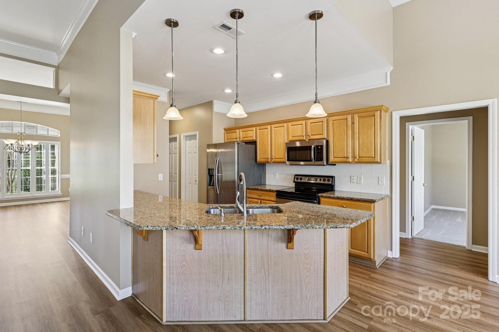 Move-in ready split ranch with fresh paint, new flooring, main-level office, and an upper-level bonus room! This beautifully updated home offers a highly desirable split-bedroom layout with plenty of functional space for today’s lifestyle. Step inside to an inviting living area filled with natural light and brand-new flooring that flows through the main living spaces. Fresh interior paint gives the home a clean, modern feel, making it completely turnkey. The spacious kitchen opens to the dining area and great room—perfect for both everyday living and entertaining. A main-level office provides the ideal workspace for remote work, studying or flex use. The private primary suite features a generous bedroom and ensuite bath. Two additional bedrooms are located on the opposite side of the home, offering comfort and privacy for guests or family. Upstairs, a bonus room adds wonderful versatility—perfect for a media room, playroom, home gym, or additional guest space. Enjoy outdoor living on the back patio overlooking the level yard, ideal for relaxing, grilling, or gatherings. With its thoughtful layout, extra flex spaces, and fresh updates, this split ranch is truly move-in ready and full of possibilities!