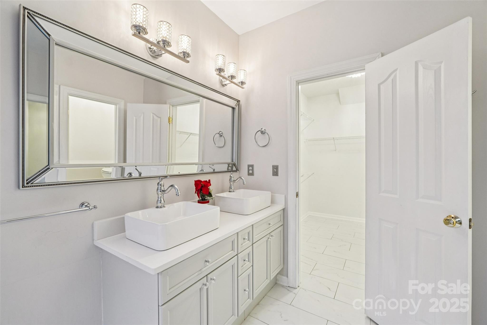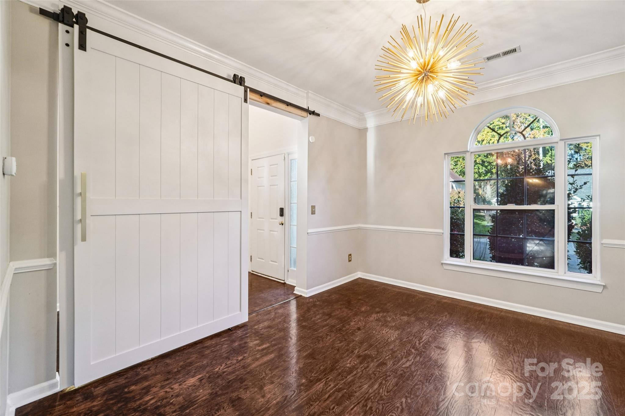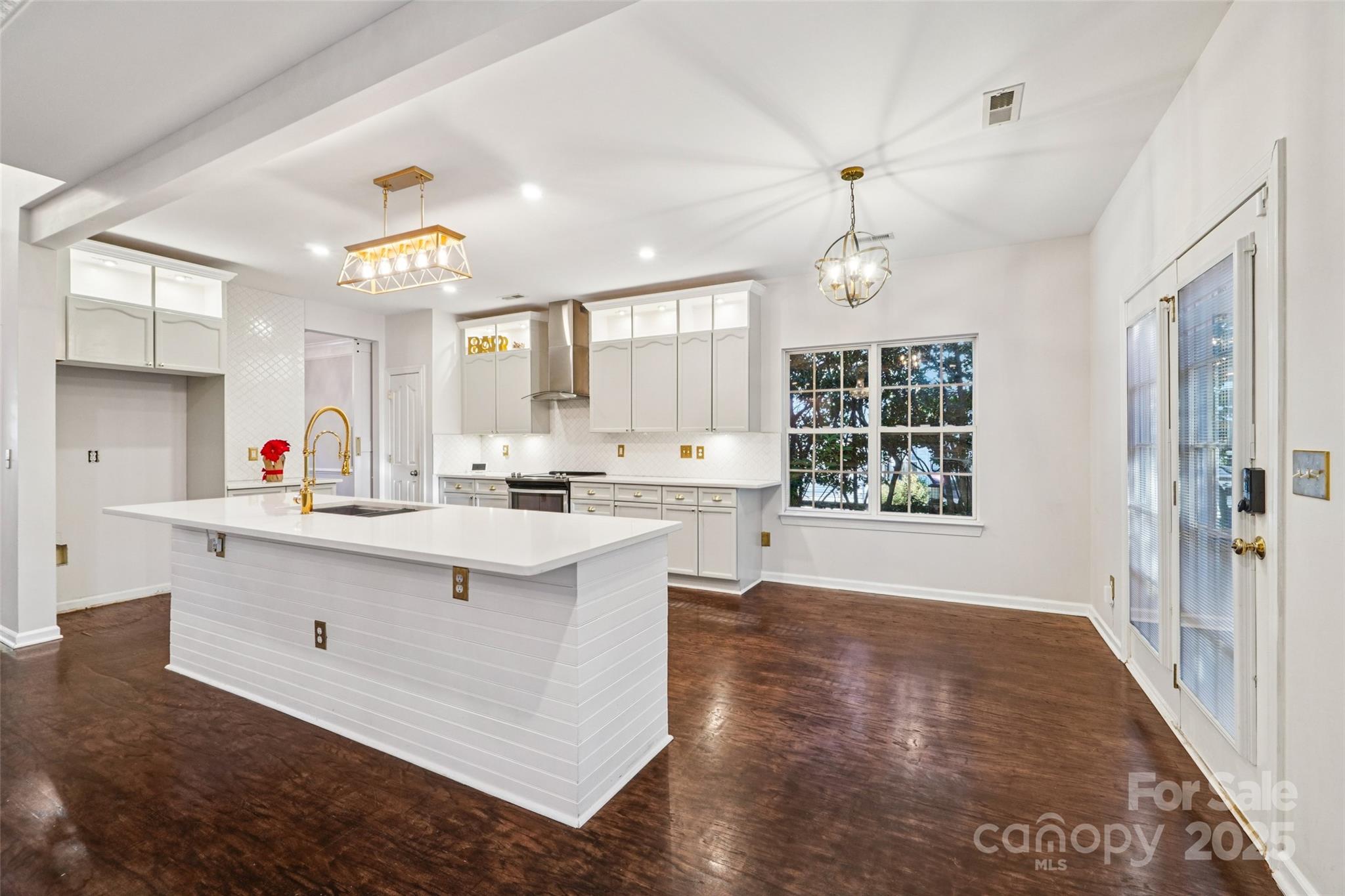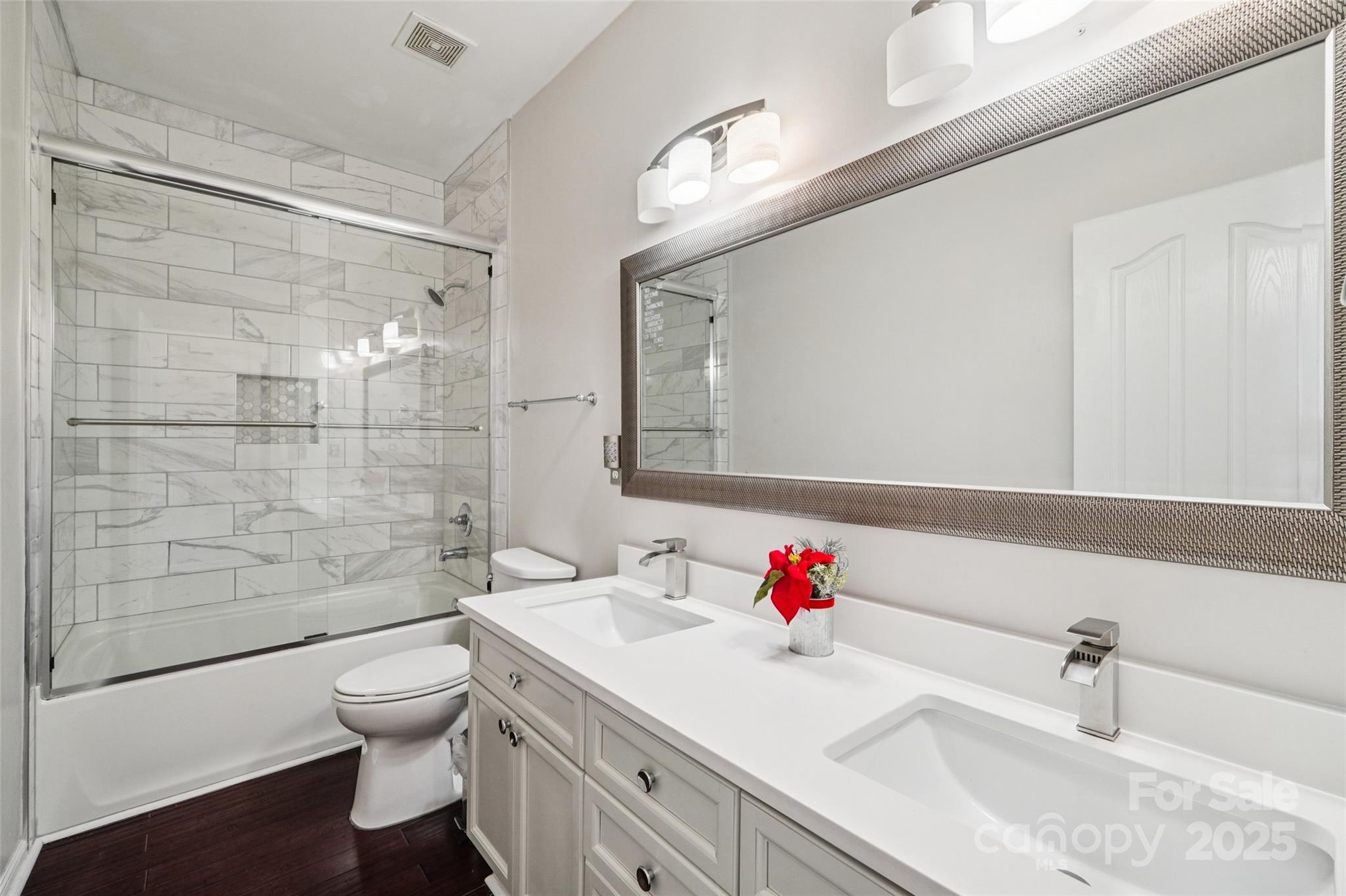 Looking for a 4-bed home in Poplar Woods with a fully renovated kitchen and bathrooms--AND NO CARPET? This stylish and spacious Concord home offers 4 bedrooms, 2.5 baths, and a large bonus room across 2,660 square feet. Step into a light-filled two-story foyer and enjoy an open layout with updated wood floors, modern fixtures, and tons of natural light. The completely redone kitchen features quartz counters, shaker cabinets, brass accents, and stainless appliances. The main-floor primary suite includes a sitting area and a spa-like bath with dual vanities, new tile, glass shower, and soaking tub. All bathrooms have been tastefully upgraded. Upstairs are three more bedrooms, a full updated bath, and a flexible bonus room perfect for a home office or guest space. The backyard offers a peaceful, landscaped setting with a private patio. Low HOA dues and no city taxes add to the appeal. Zoned for top-rated Cox Mill schools, near I-85, shopping, and airport.