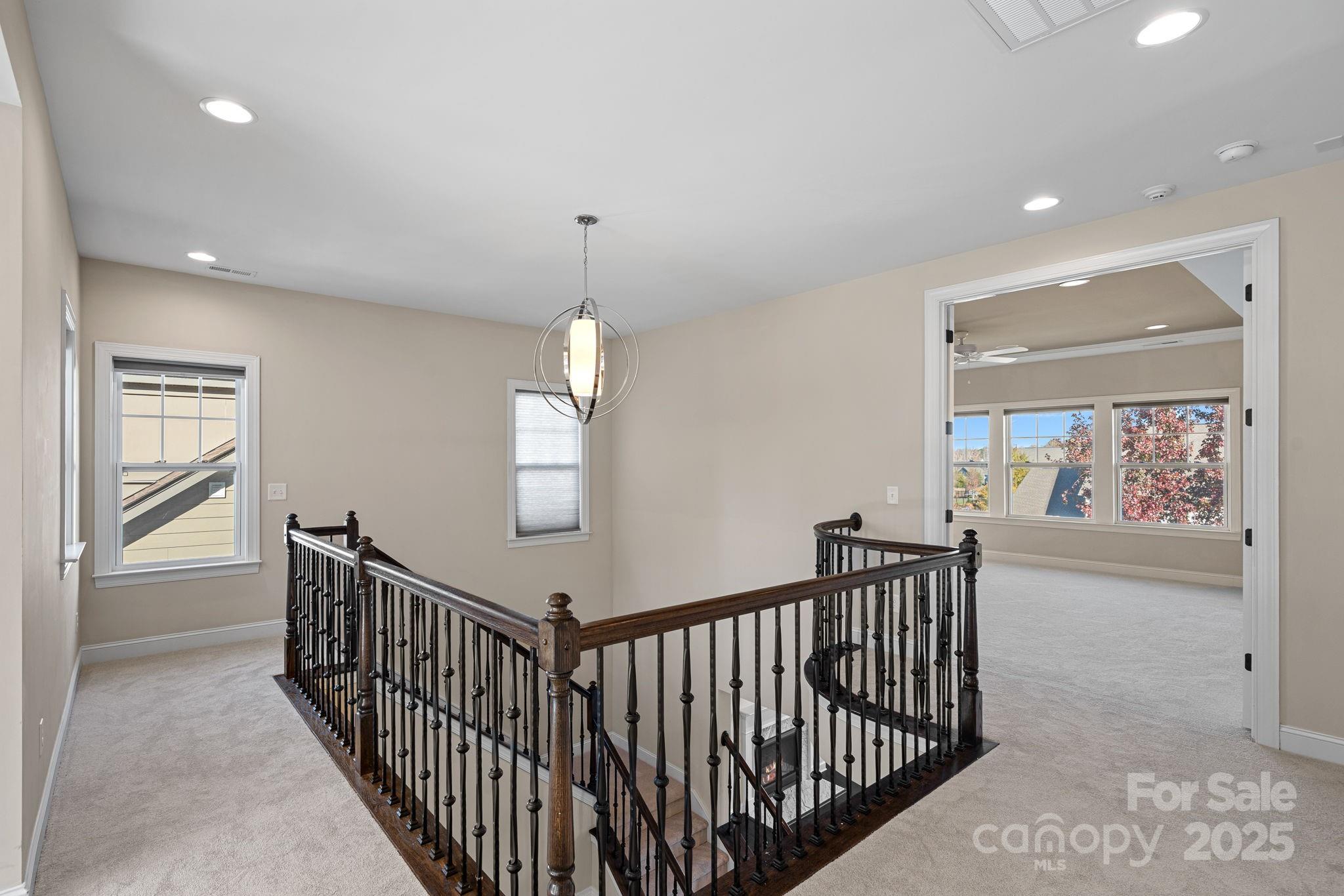 Welcome Home to Davidson East! Former model home by CalAtlantic—loaded with upgrades and designer details throughout. Step into a stunning two-story foyer with a dramatic iron staircase. The open interior features extended moldings, 8-foot doors, recessed lighting, and a gourmet kitchen with double ovens, upgraded cabinetry, and a custom hood vent. The main level includes a light and airy large family room with tons of windows and natural light and a gas log fireplace as well as a drop zone off the garage and guest suite with a full bath, perfect for visitors. Upstairs, the spacious primary suite offers abundant natural light, a fully tiled shower, a standalone soaking tub, and a custom walk-in closet with built-ins. Two additional bedrooms, a full bath, a laundry room with extra cabinetry, and a Juliet balcony overlooking the loft complete the upper level. Enjoy indoor-outdoor living with large sliding doors leading to a partially fenced backyard with a covered paver patio and firepit. Davidson East offers resort-style amenities including a clubhouse, pool, playground, and future greenway access. Conveniently located near Hwy 73, Birkdale Village, Downtown Davidson, and Concord. New carpet installed on 11/5. Professional pictures to be added 11/7.