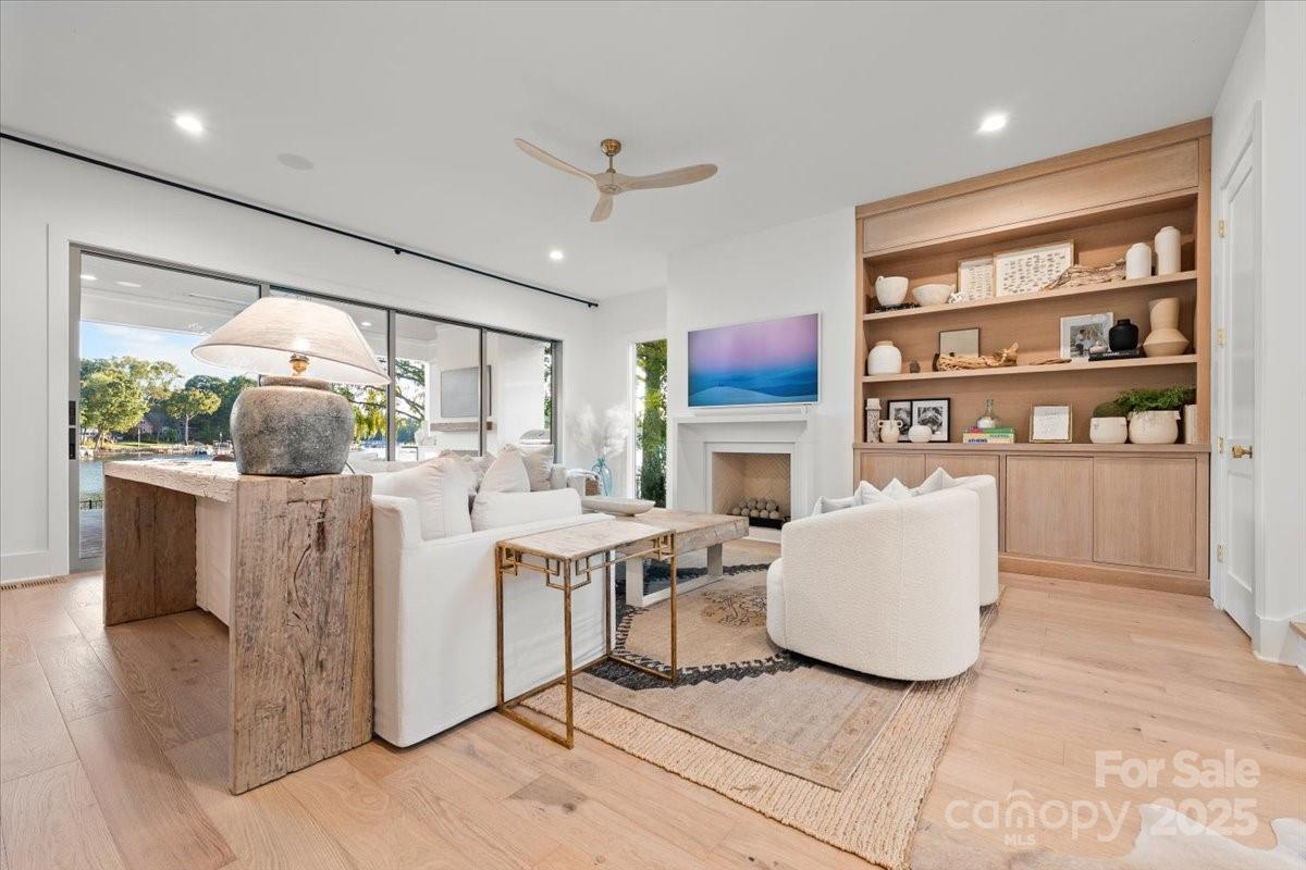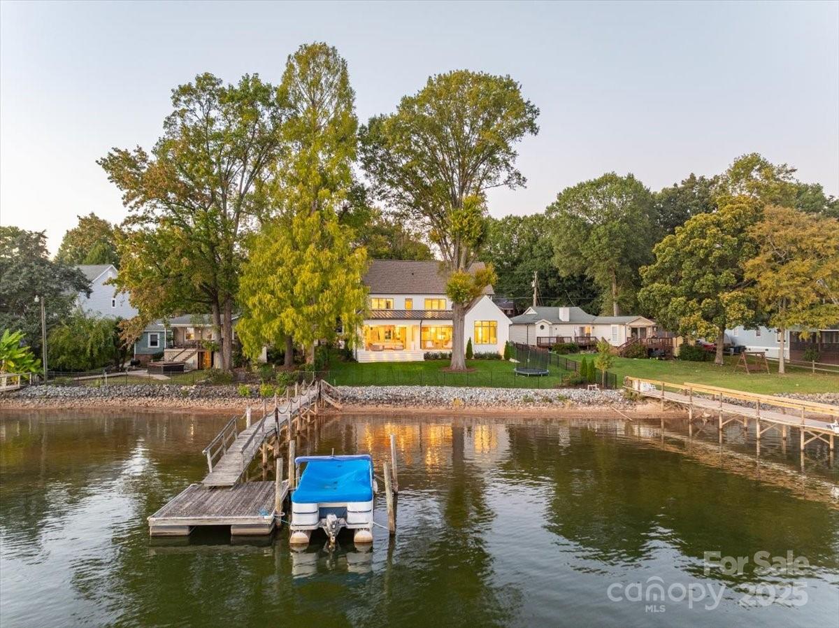 Experience lakeside luxury at its finest in this architecturally crafted Custom Home, featuring pristine shoreline and panoramic open-water views. Thoughtfully designed for both comfort and style, this residence offers a seamless blend of modern sophistication and natural beauty. An open floor plan with 10-foot ceilings and engineered white oak floors throughout creates a bright, airy flow, perfectly complemented by oversized windows and stacked sliding doors that blur the line between indoor and outdoor living. The Gourmet Kitchen is a chef’s dream, showcasing Hi-end Monogram appliances, Walk-In Scullery/Pantry w/ additional dishwasher & sink, an oversized island with panel-ready finishes, undermount lighting, and custom cabinetry that continues throughout the home for a cohesive, elegant aesthetic. The Primary suite, located on the main level, impresses with a vaulted ceiling, dual-zone climate control, and open water views. The Primary ensuite bath features separate oversized vanities with quartz countertops and premium fixtures, oversized walk in shower w/ dual shower heads and frameless glass, with a connection straight to the walk in closet and laundry. Waterfront views from the Great Room create a seamless transition to the outdoor living area. The open-concept Great Room is centered around a custom built fireplace w/ designer cast stone surround, Built-in media wall with integrated sound system, and expansive stacked sliding glass doors opening to the covered patio. Each Bedroom is a private retreat, featuring a walk-in closet and ensuite custom bathrooms, and an oversized loft/bonus for ultimate comfort and convenience upstairs. Interior living space offers Custom Lighting, Sonos whole-home audio and Eero Network system for seamless connectivity, oversized stacked sliders and windows framing a stunning water view, and custom Cabinetry and detailed Millwork throughout. Covered outdoor living space includes Isokern ventless fireplace, In-ceiling heaters, Integrated AV system, Outdoor Kitchen featuring Bull appliances and Quartzite countertops Additional home highlights include a whole-home AV package, offering seamless smart home integration and immersive entertainment throughout, High-Efficiency HVAC and Insulation package, Premium window and door systems for energy performance & sound reduction, Designer hardware and finishes throughout every space, and a large dropzone adjacent to the garage entrance. From its thoughtful craftsmanship to its breathtaking views, this home redefines waterfront living — blending timeless design, modern innovation, and effortless luxury in every detail. Lot is impervious exempt and a pool can be put in by buyers (Potential Pool Plan is in mls attachments) and the pool plan is in place with gas and electrical utilities pre-installed in the home already.